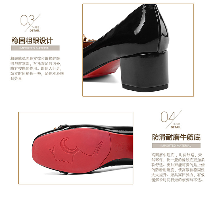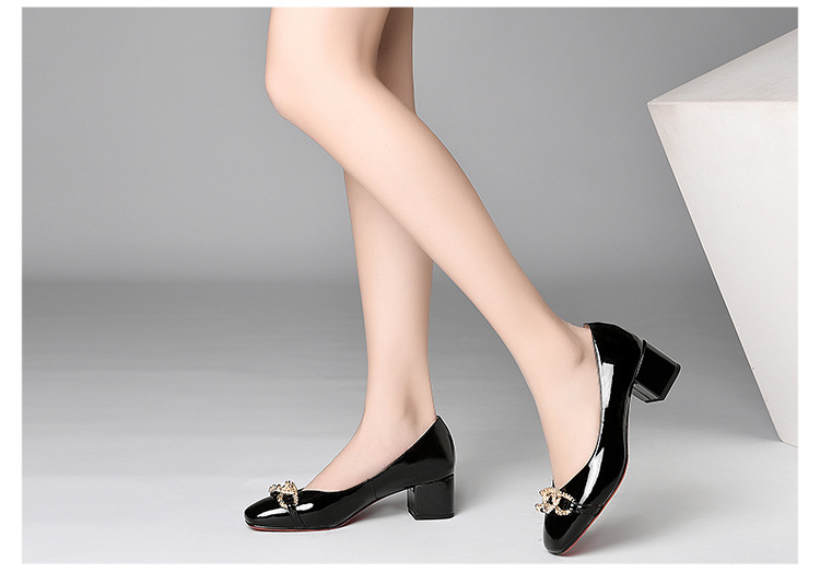KBY-6169新品粗跟浅口四季单鞋方头时尚中跟皮鞋