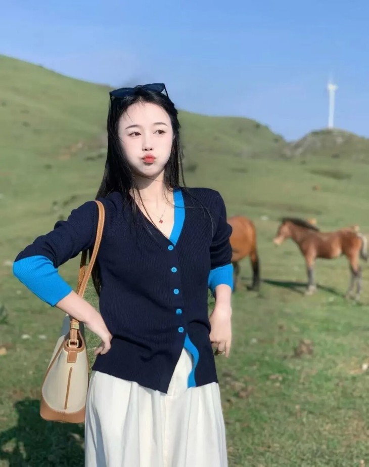 “蓝色针织衫”是一种非常经典的服装搭配,它给人一种干净、高级的感觉。