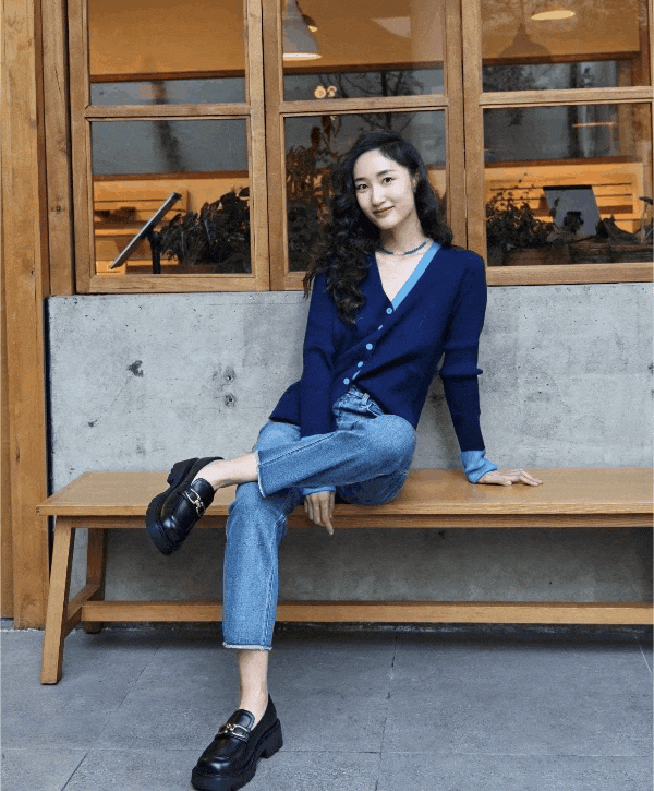 同色系纽扣,撞色的小心机,克莱因蓝真的巨显白,黄黑皮直接冲!