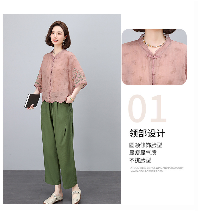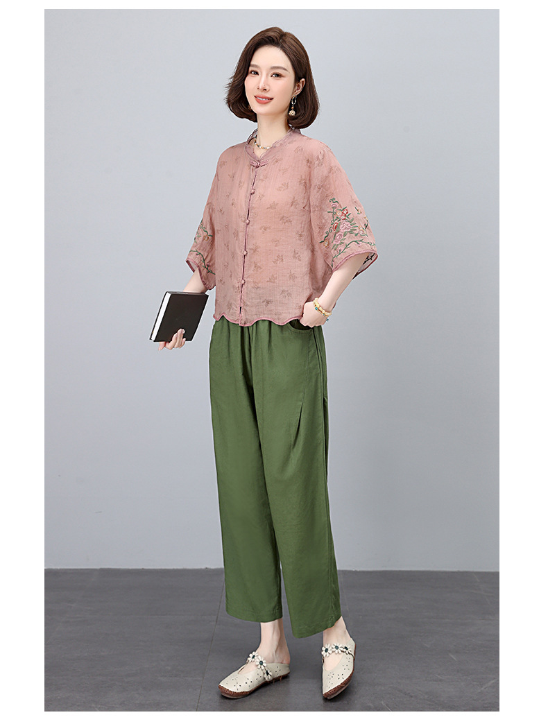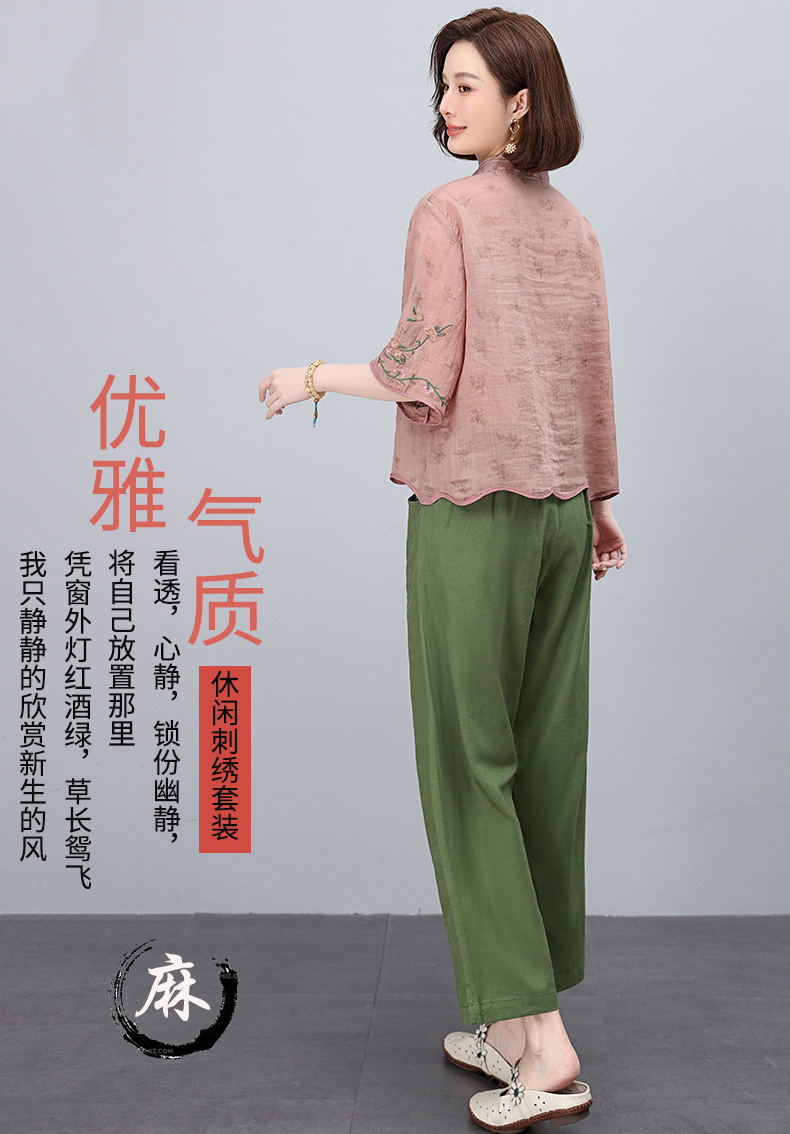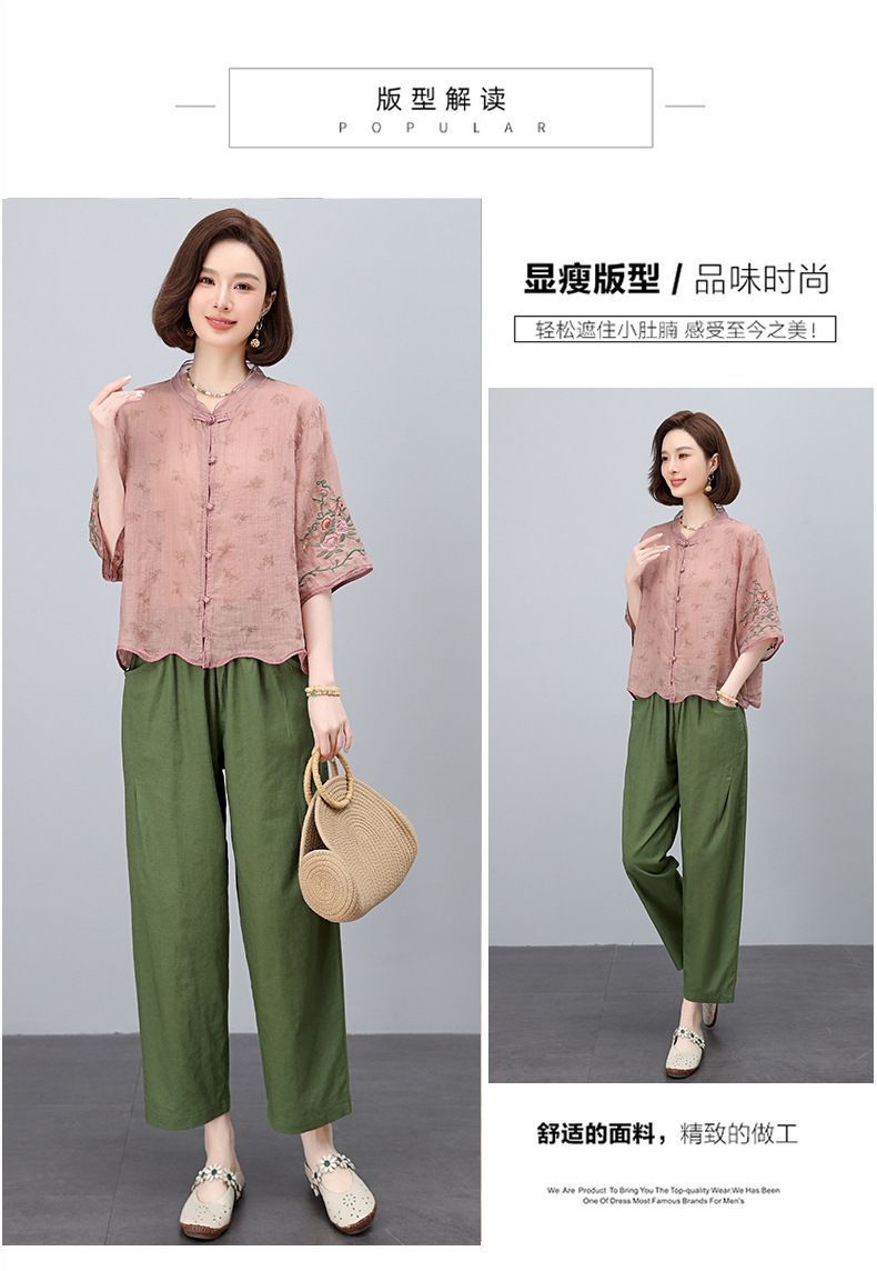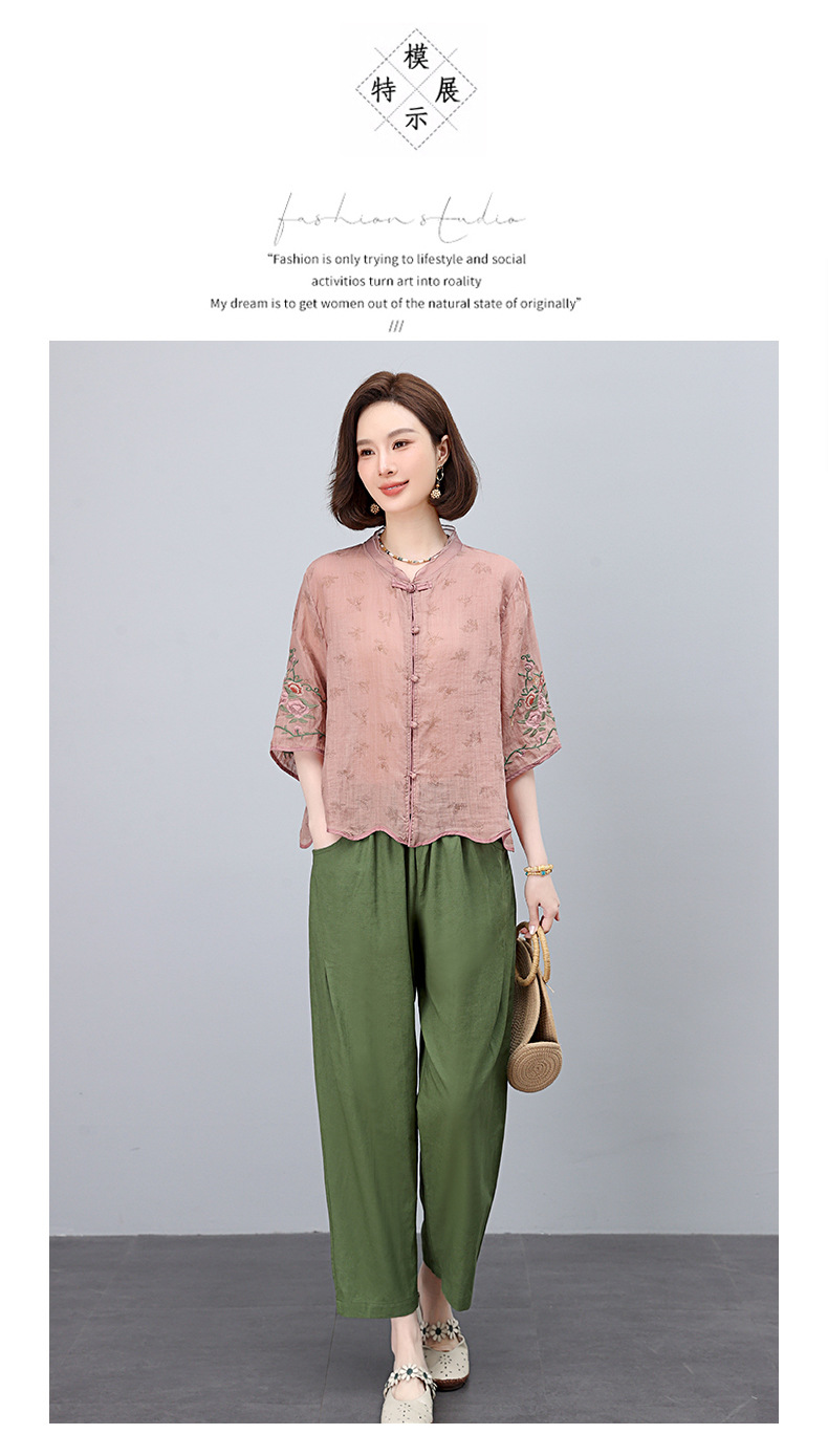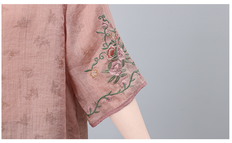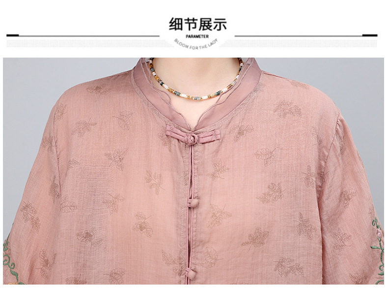 HRNJL2607美衣重工刺绣双支苎麻衬衫女气质绣花衬衣春款长袖单排扣上衣蕾丝