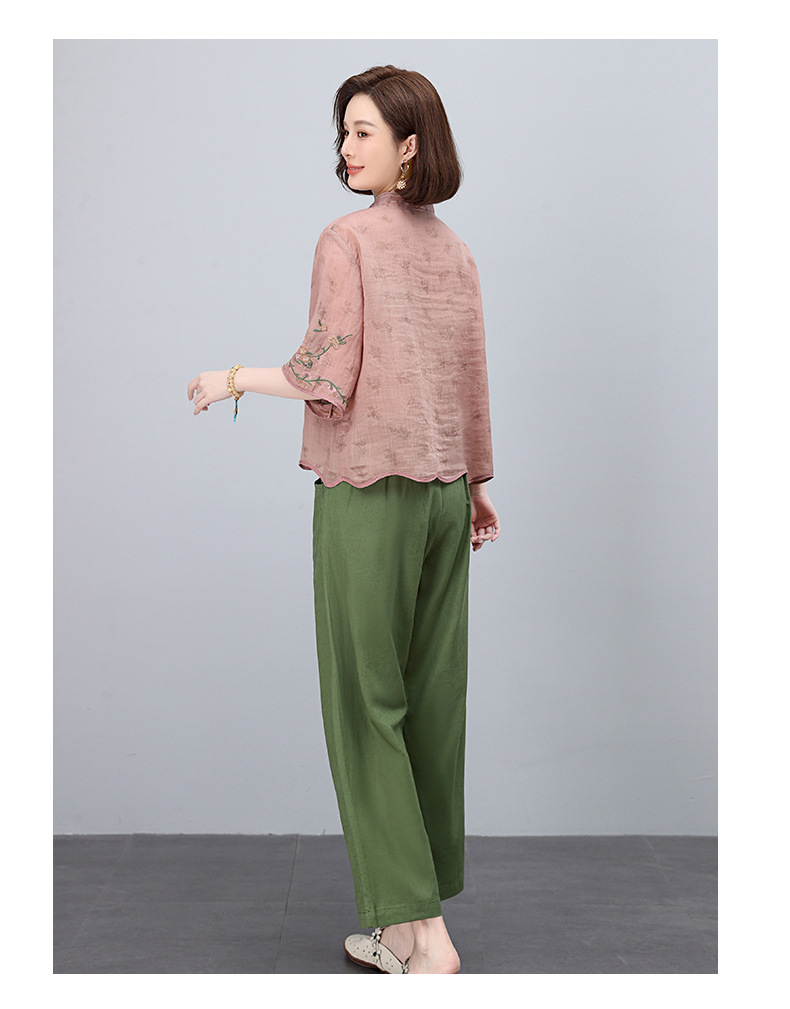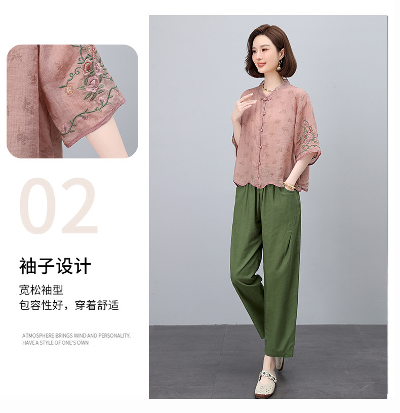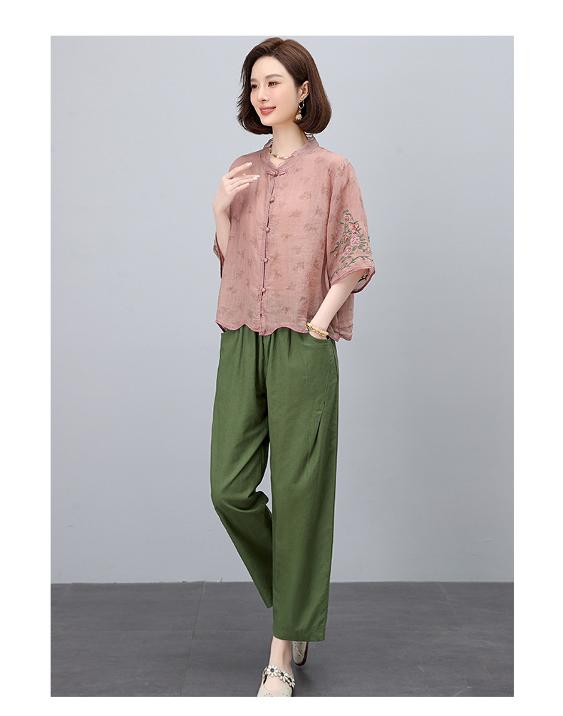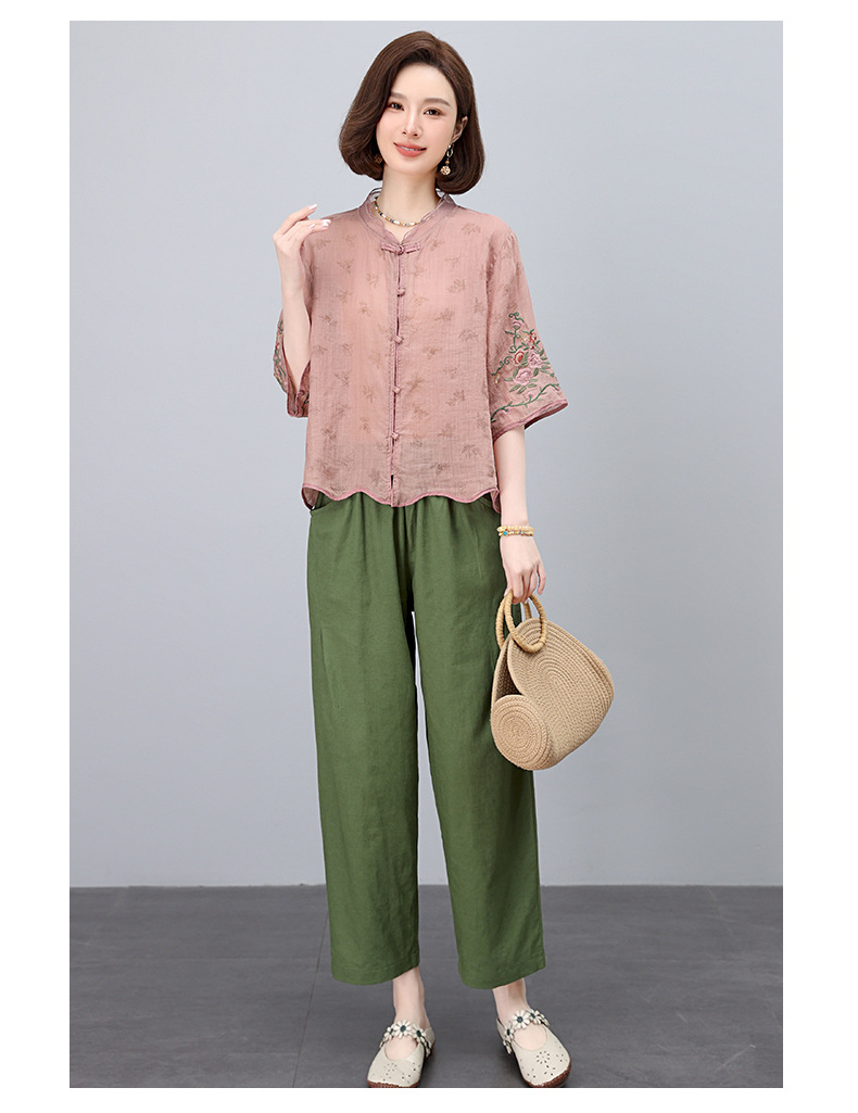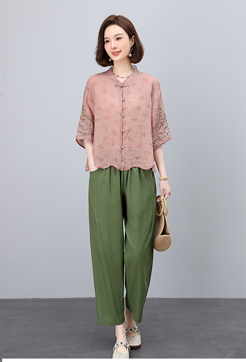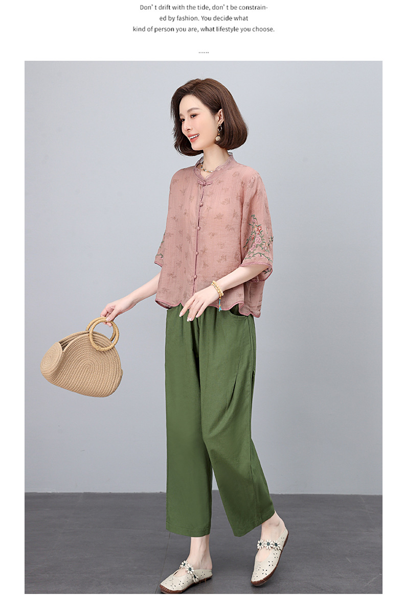 HRNJL2607美衣重工刺绣双支苎麻衬衫女气质绣花衬衣春款长袖单排扣上衣蕾丝