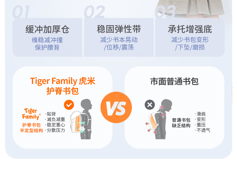 tigerfamily虎米 1-5年级小学生儿童男女书包护脊减负双肩包飞跃