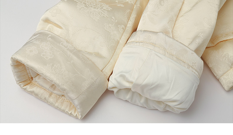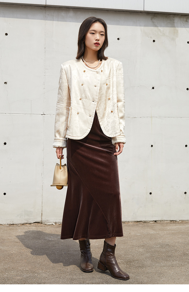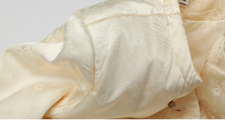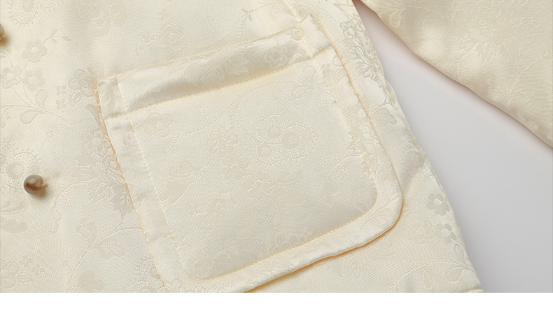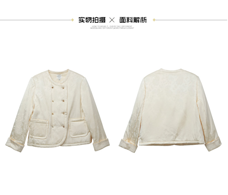 米白色提花缎面双排扣短外套 圆领卷边袖复古优雅小香风夹克