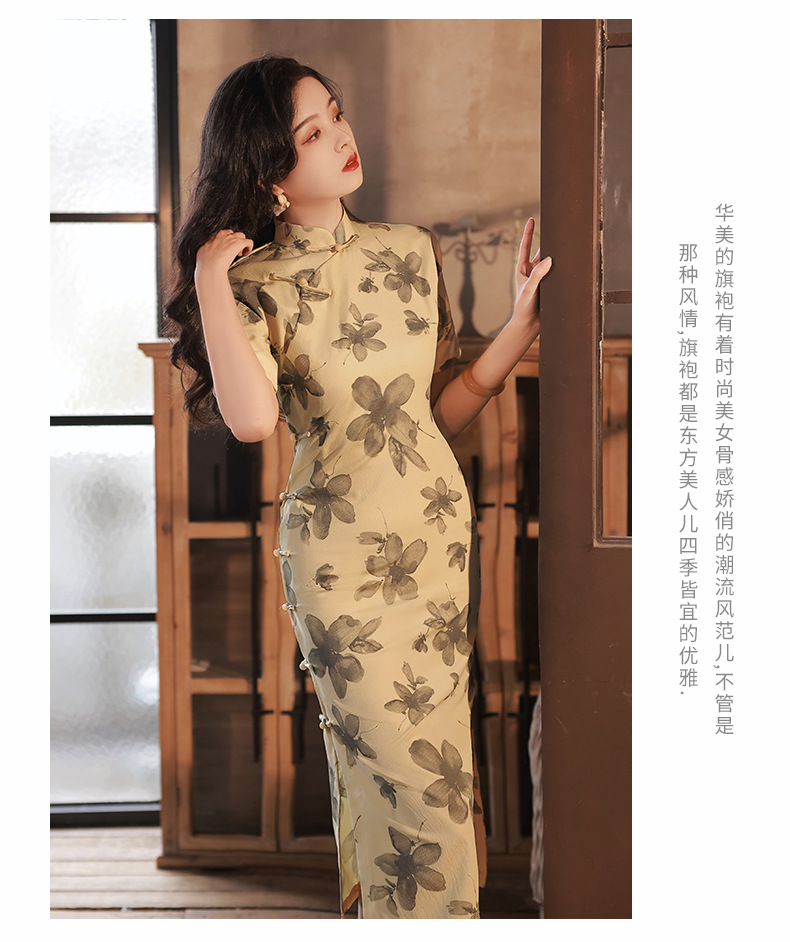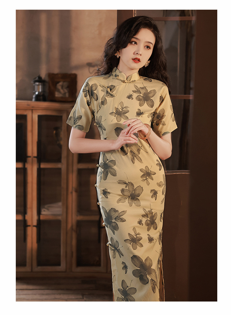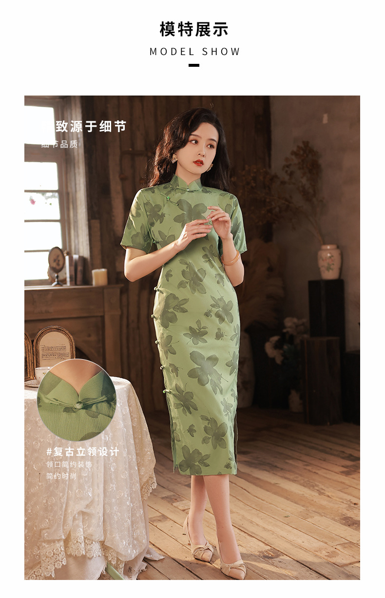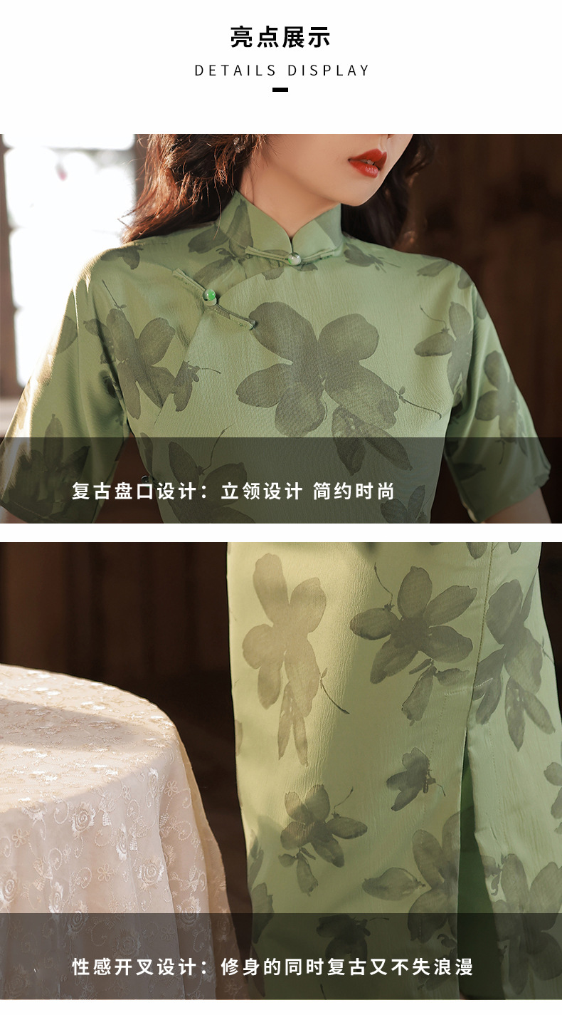 BJS-2158春新款气质优雅复古民国风真开襟旗袍日常可穿年轻款