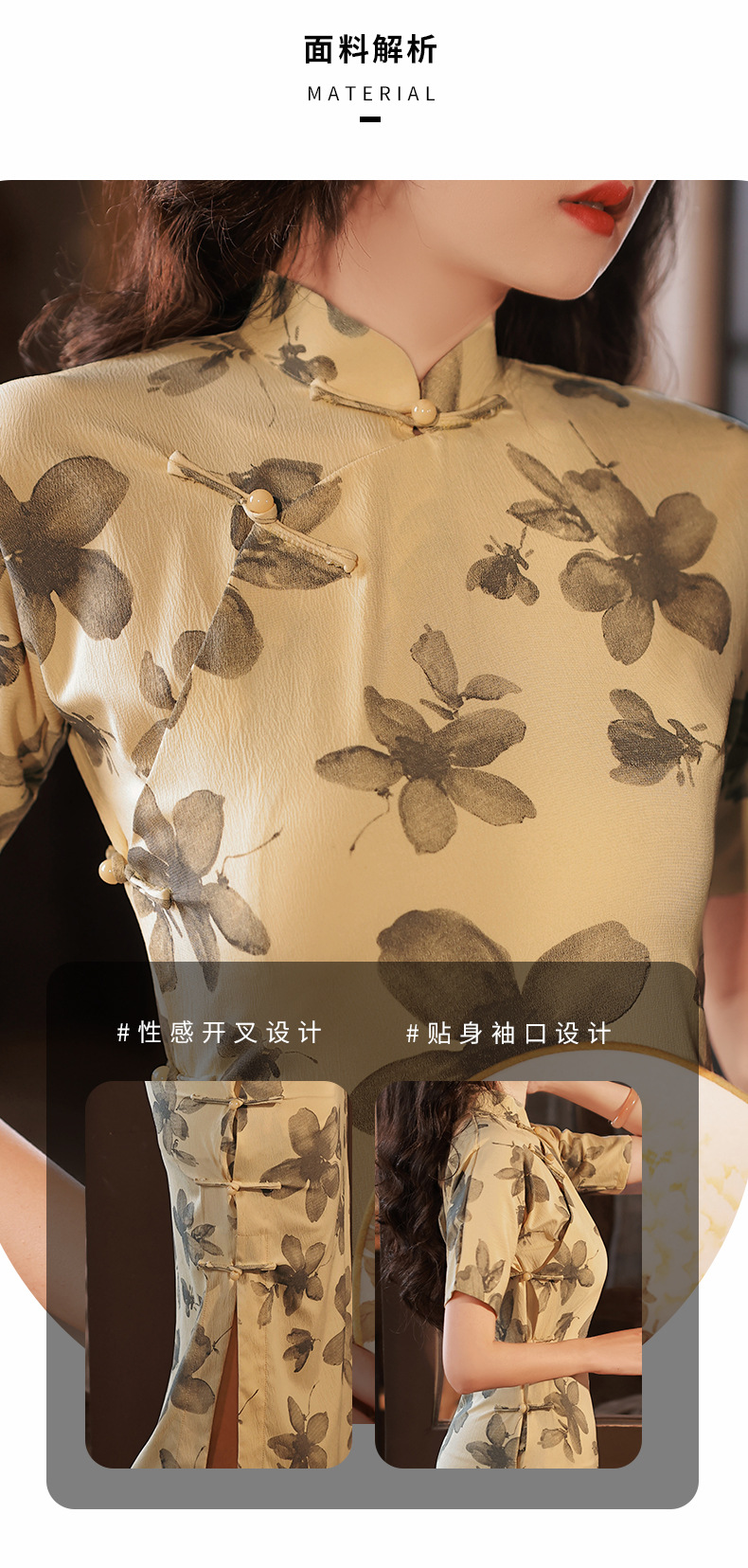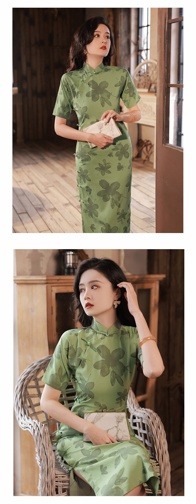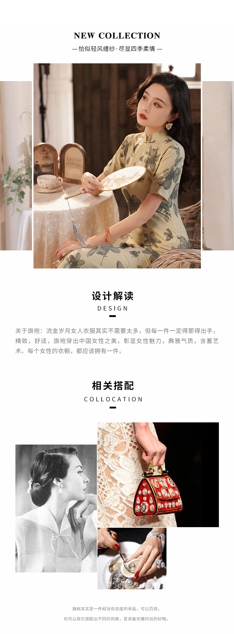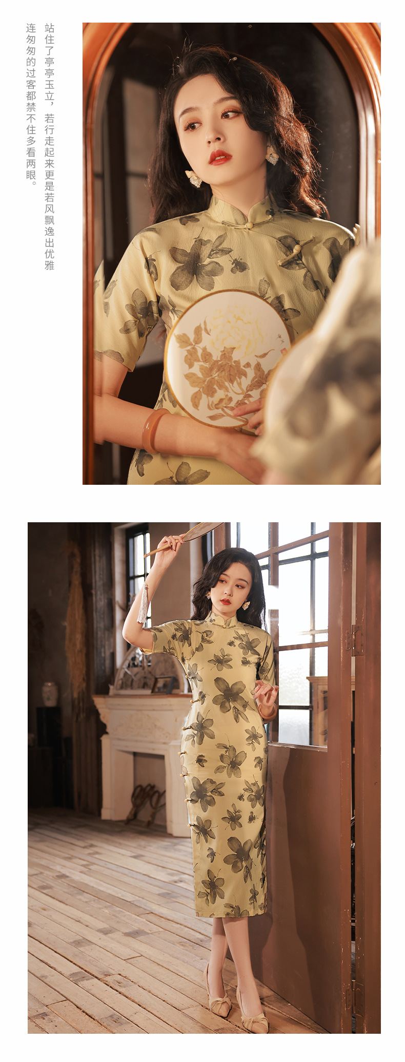 BJS-2158春新款气质优雅复古民国风真开襟旗袍日常可穿年轻款