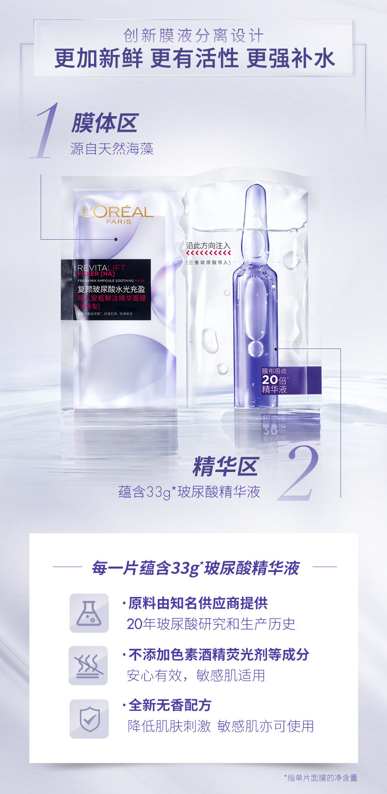 欧莱雅安瓶面膜玻尿酸精华补水面膜5片