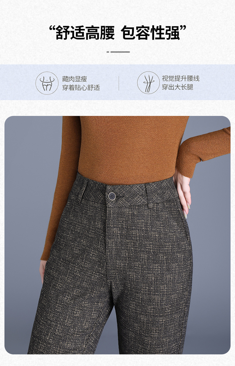 QYM 9851-Y微喇格子西装裤休闲裤气质优雅高腰喇叭裤 商品图3