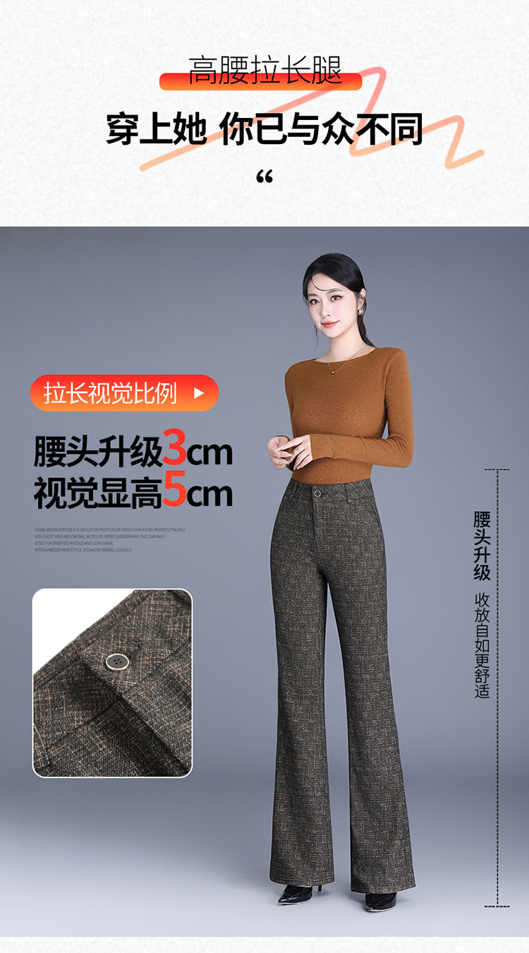 QYM 9851-Y微喇格子西装裤休闲裤气质优雅高腰喇叭裤 商品图1