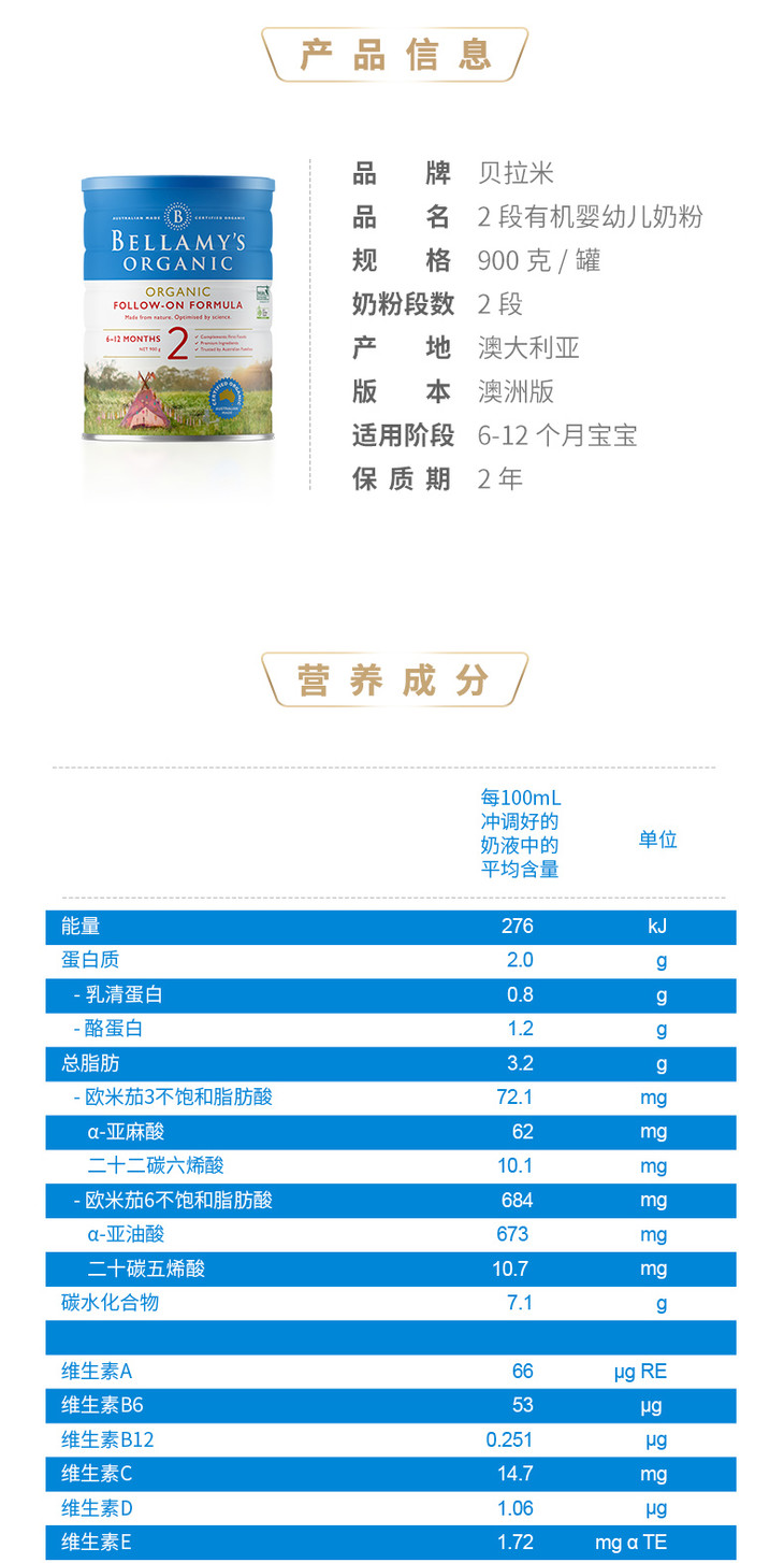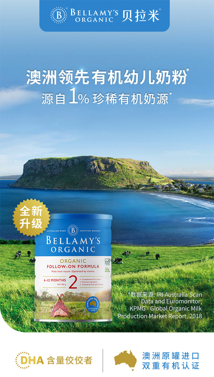 现货 贝拉米2段婴幼儿奶粉900G