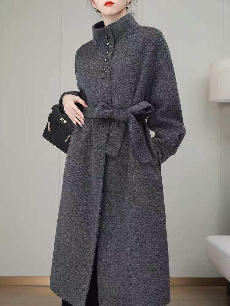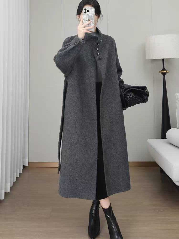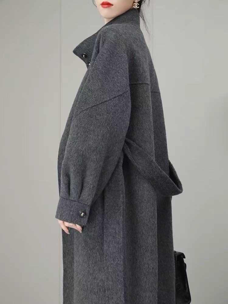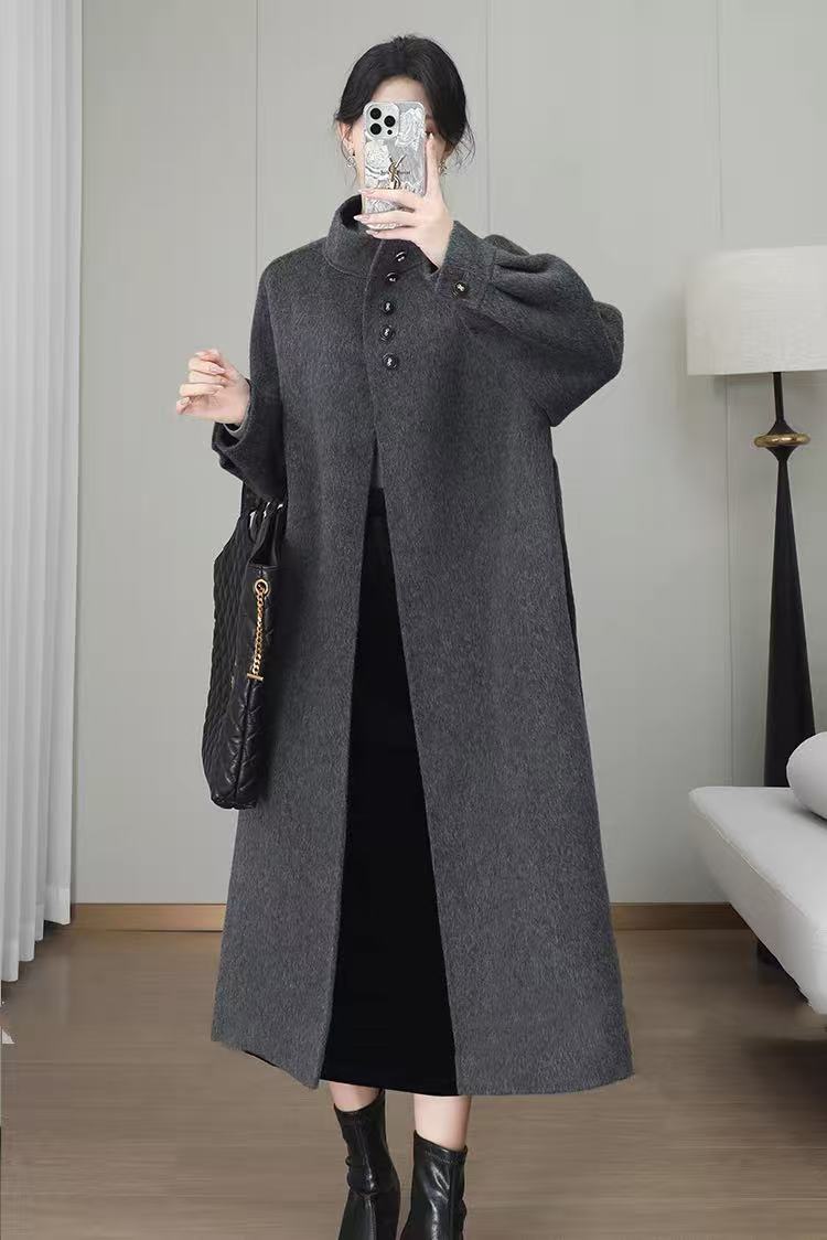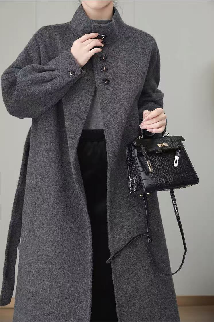 【轻奢双面尼】2506 (绵羊毛➕山羊绒)高级感灰色立领双面尼大衣-喜出