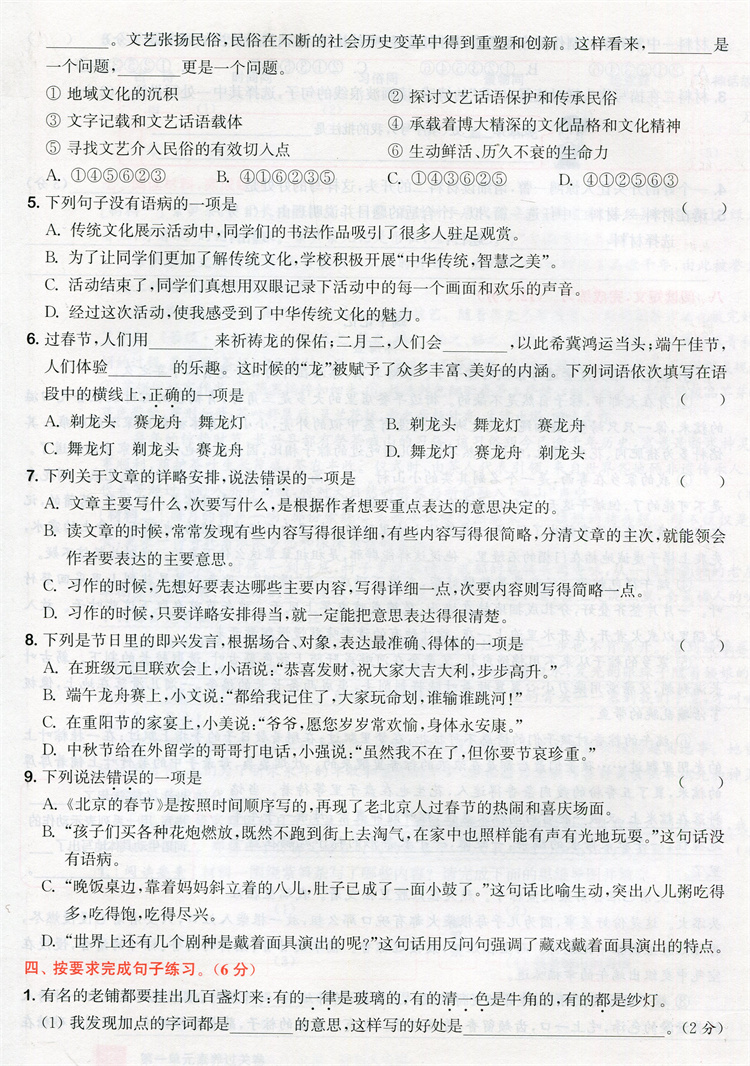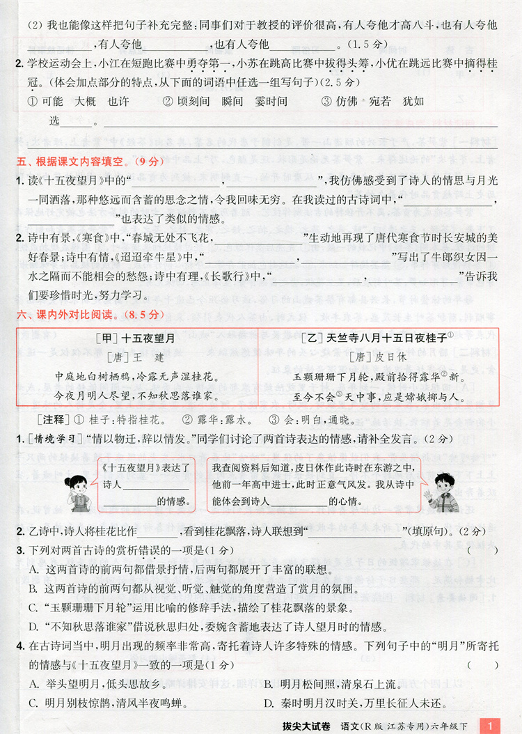2025春 拔尖大试卷 语文六年级下册 配人教版 小学教辅 6下小学试卷 答案讲解视频 学生用书江苏专版 浙江少年儿童出版社