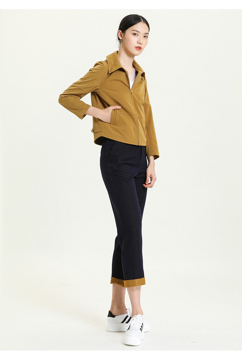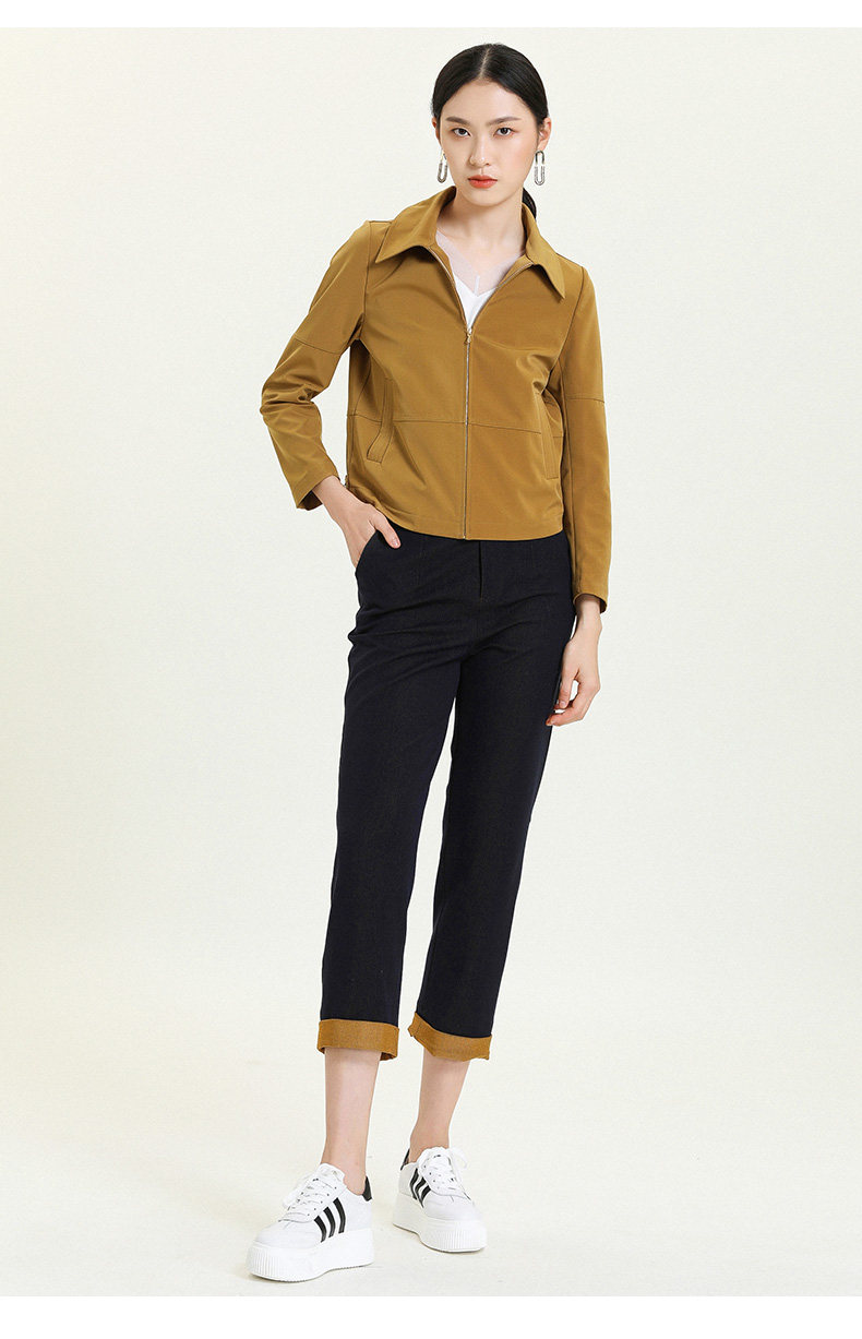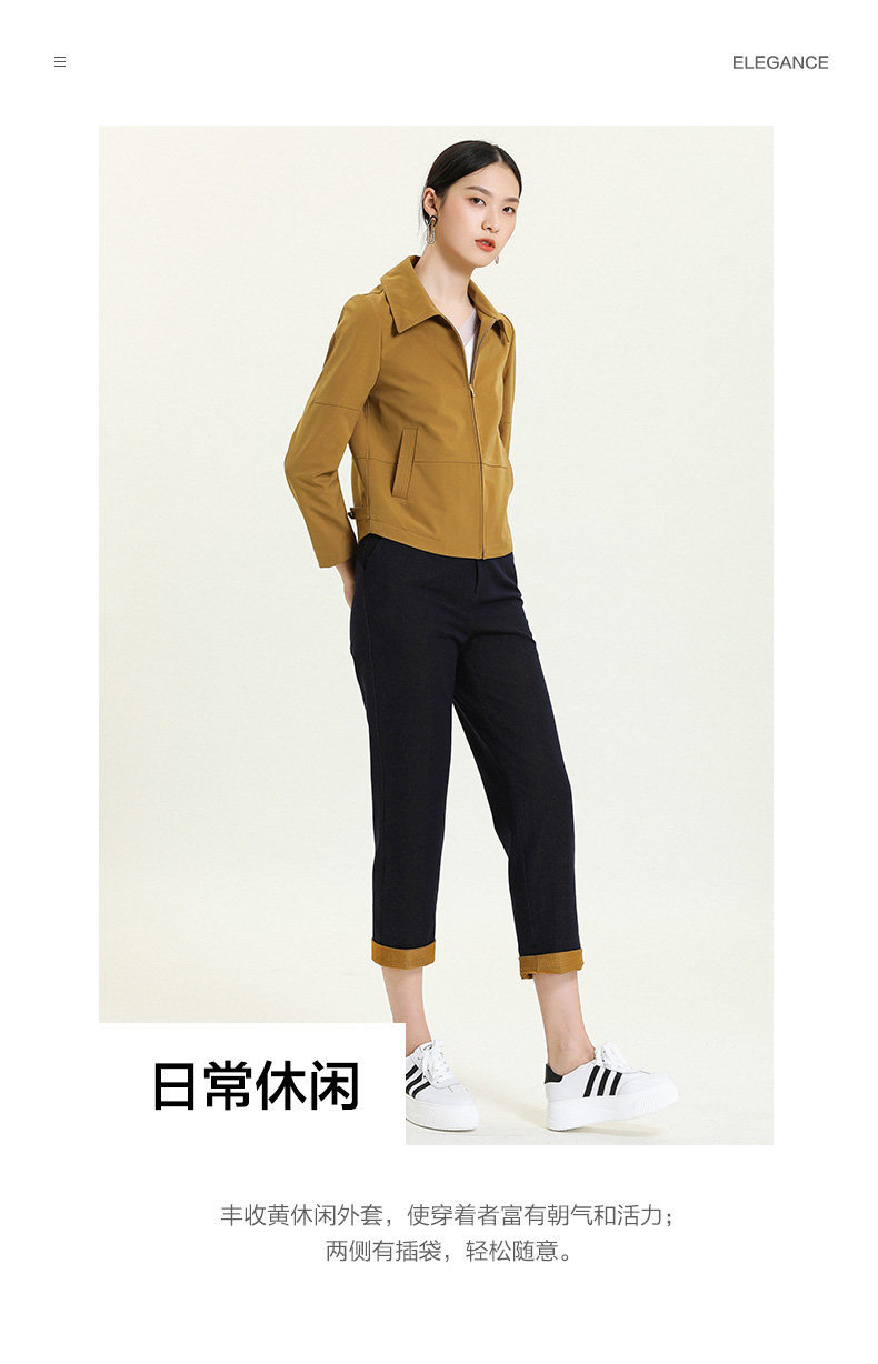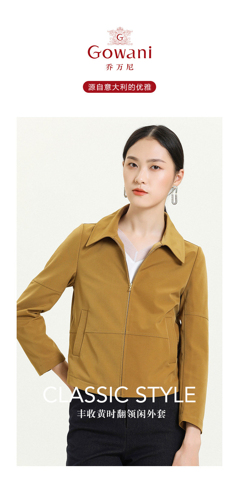 乔万尼新款短外套小个子休闲黄色复古风H版型显腿长开衫夹克ES3B579
