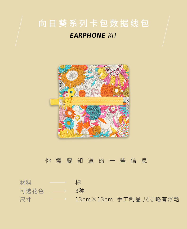 向日葵系列卡包数据线包蓝牙耳机包小包布艺拉链迷你U盘U盾保护便携