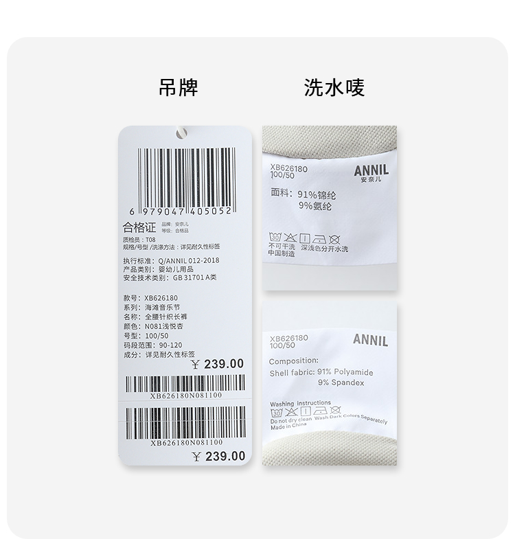 【实体店同款】男童全腰针织长裤夏季新款安奈儿童装XB626180