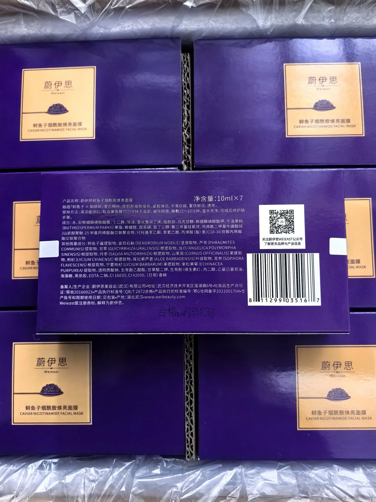 今晚出蔚yi思鲟鱼子发光面膜,价格最狠了这批!日期到26.7!史上最低一批蔚伊思!史无前例的最低价!一盒7瓶,还是增量装每瓶10ml!以前是8ml每瓶的!最早天猫原价599,券后最低也得309,!原价3盒过千‼️