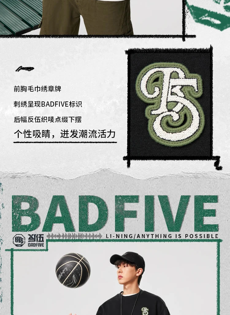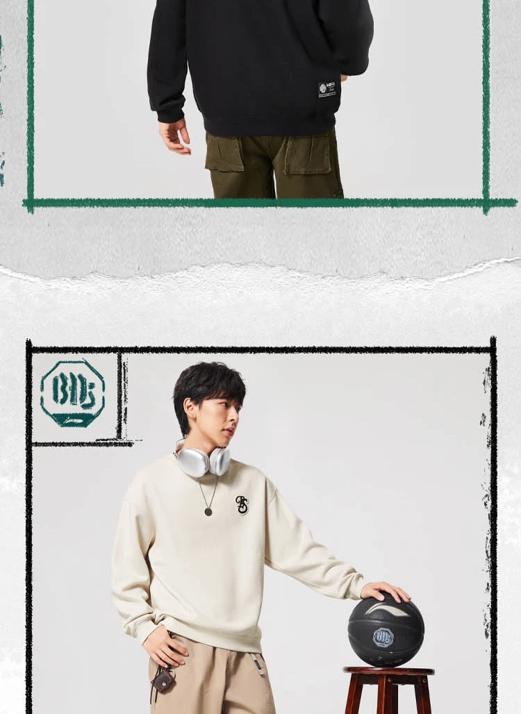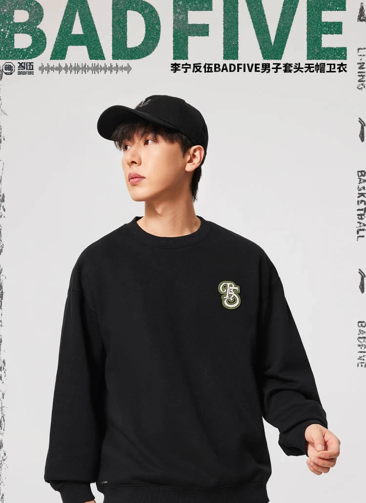 李宁反伍BADFIVE男子加绒保暖宽松套头卫衣AWDV879