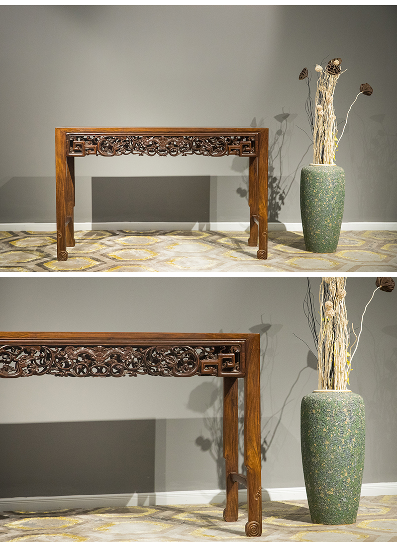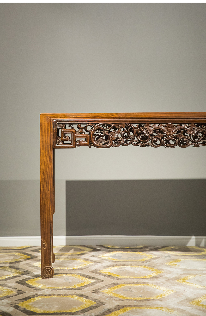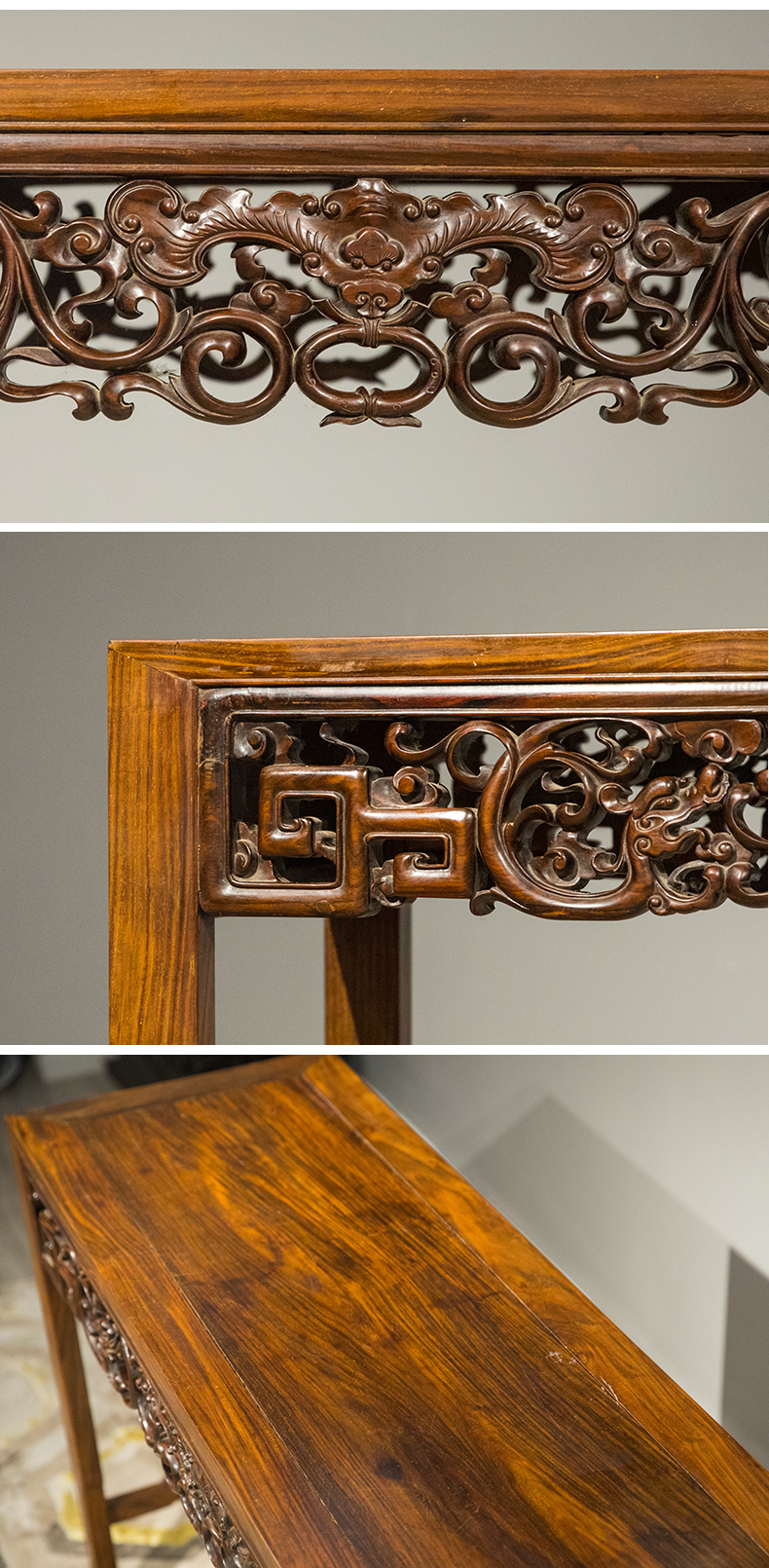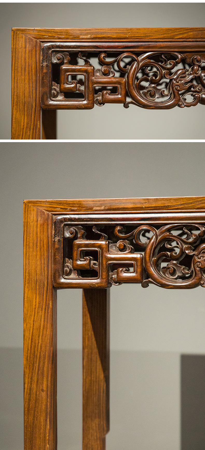 二十世纪 红木束腰马蹄腿拐子纹方桌