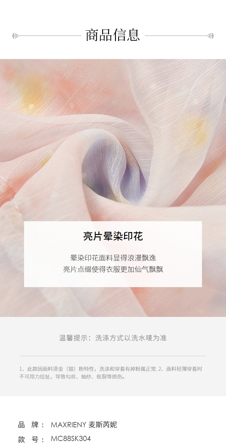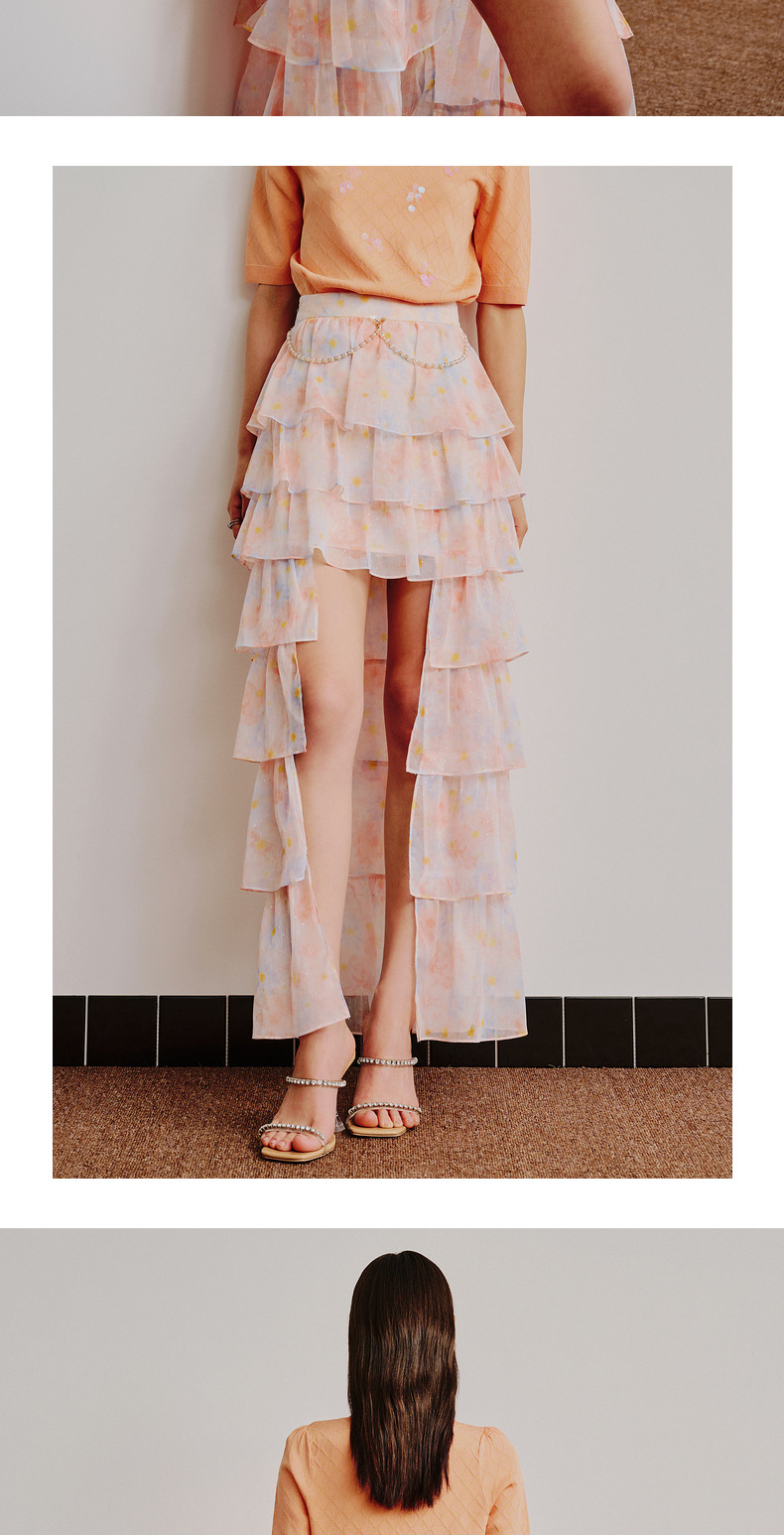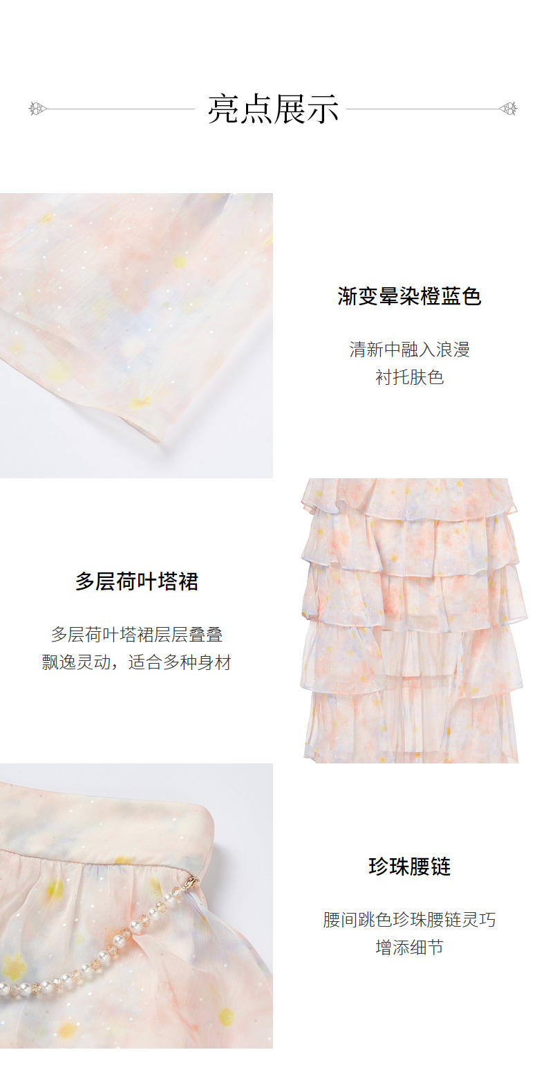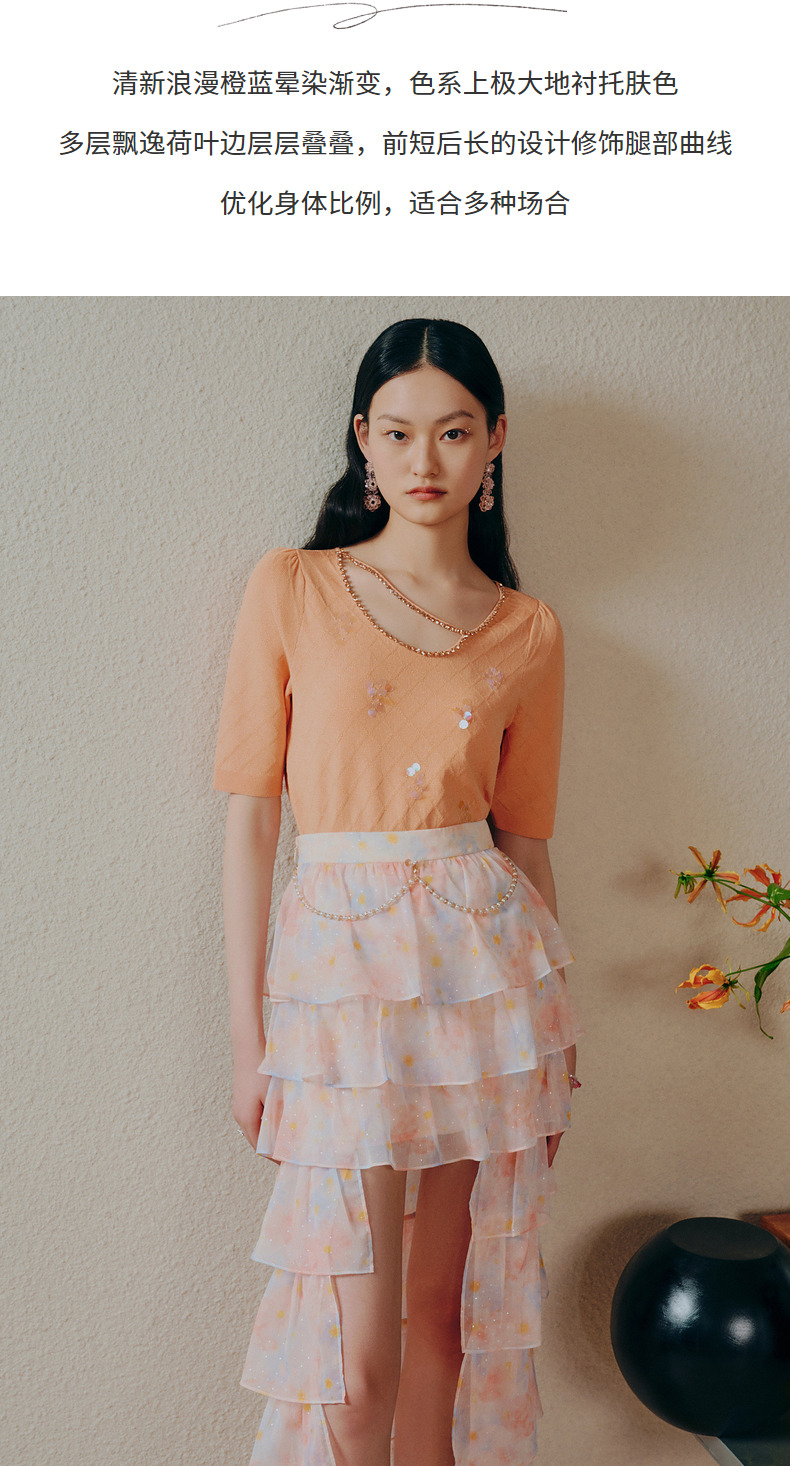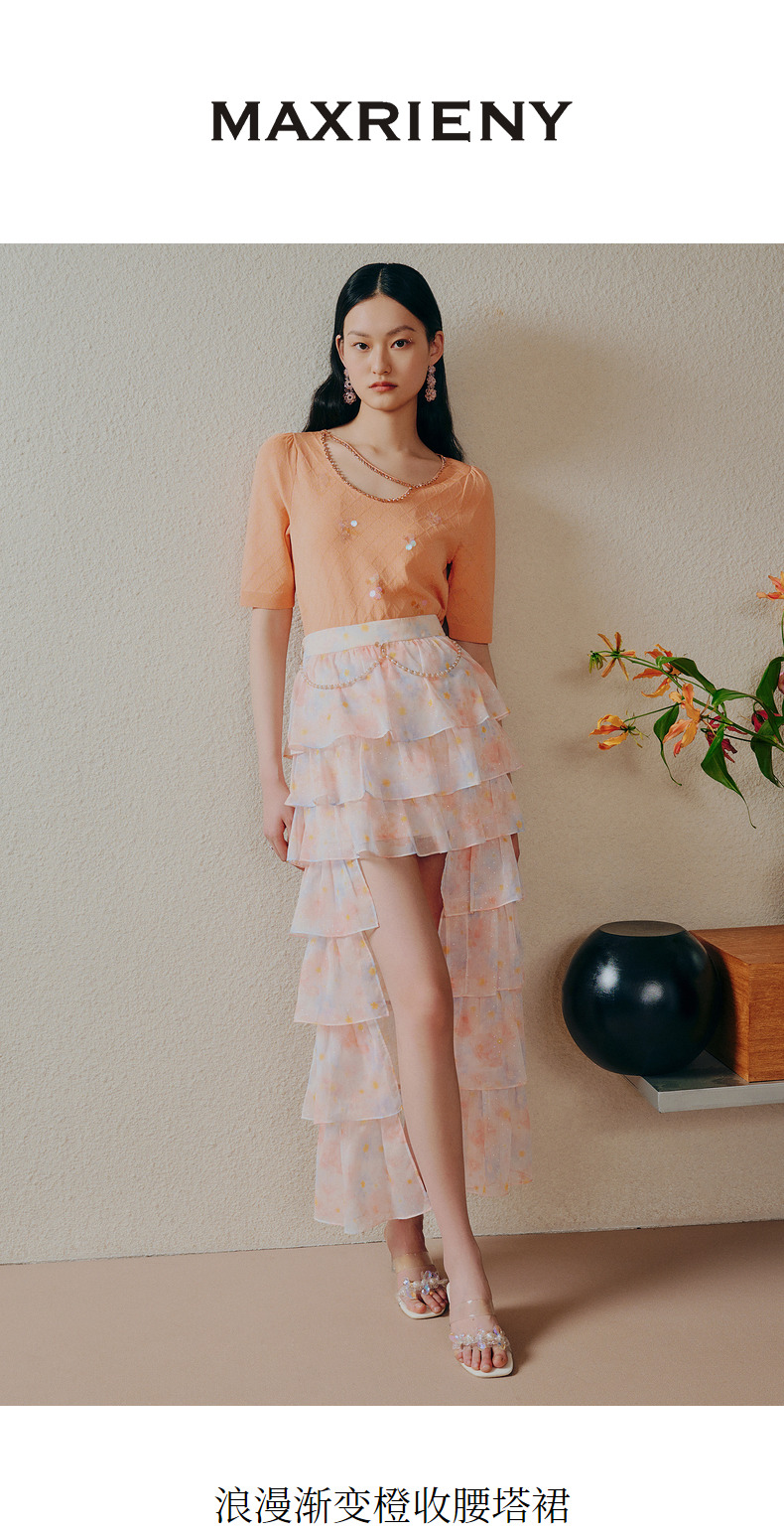 MAXRIENY仙美小众设计感半身裙浪漫渐变橙收腰塔裙(货号:MC88SK304)