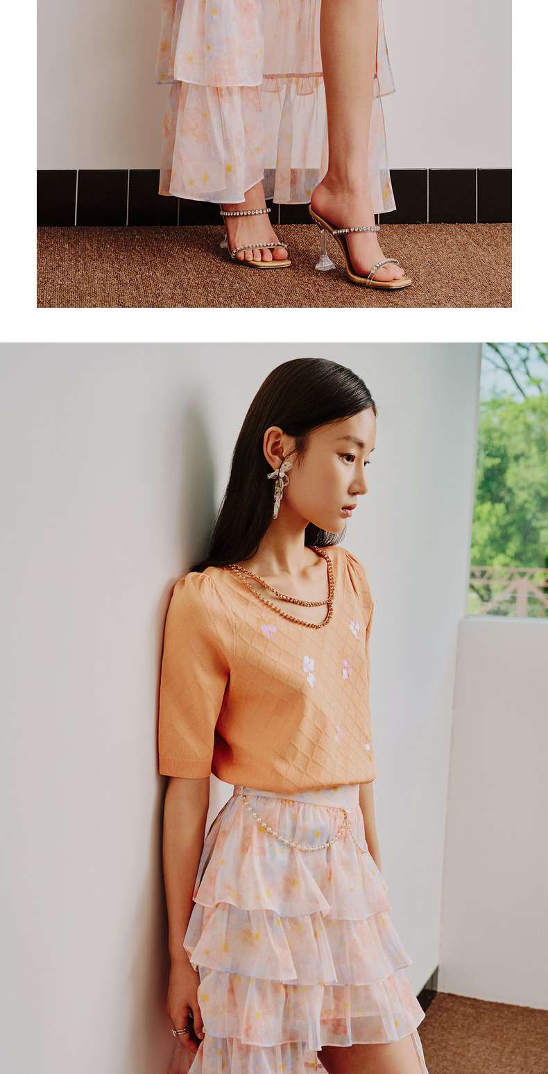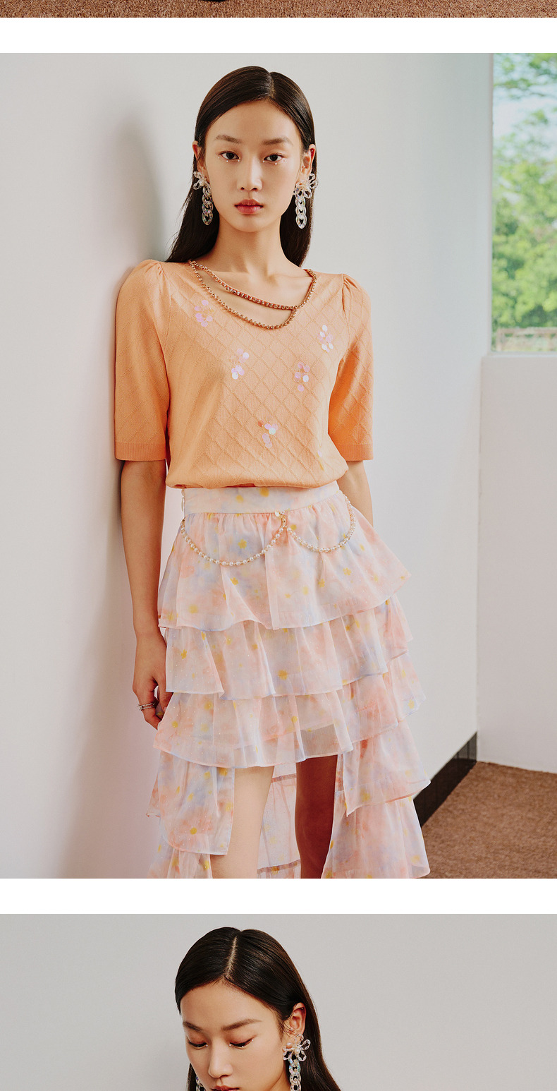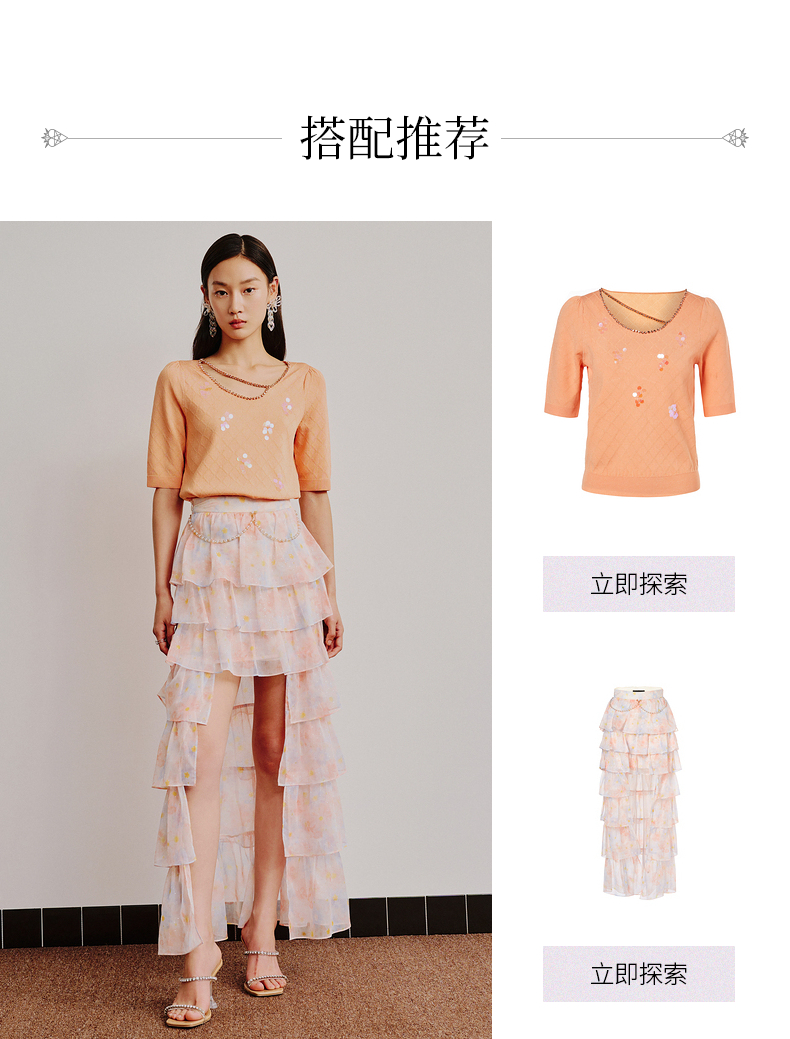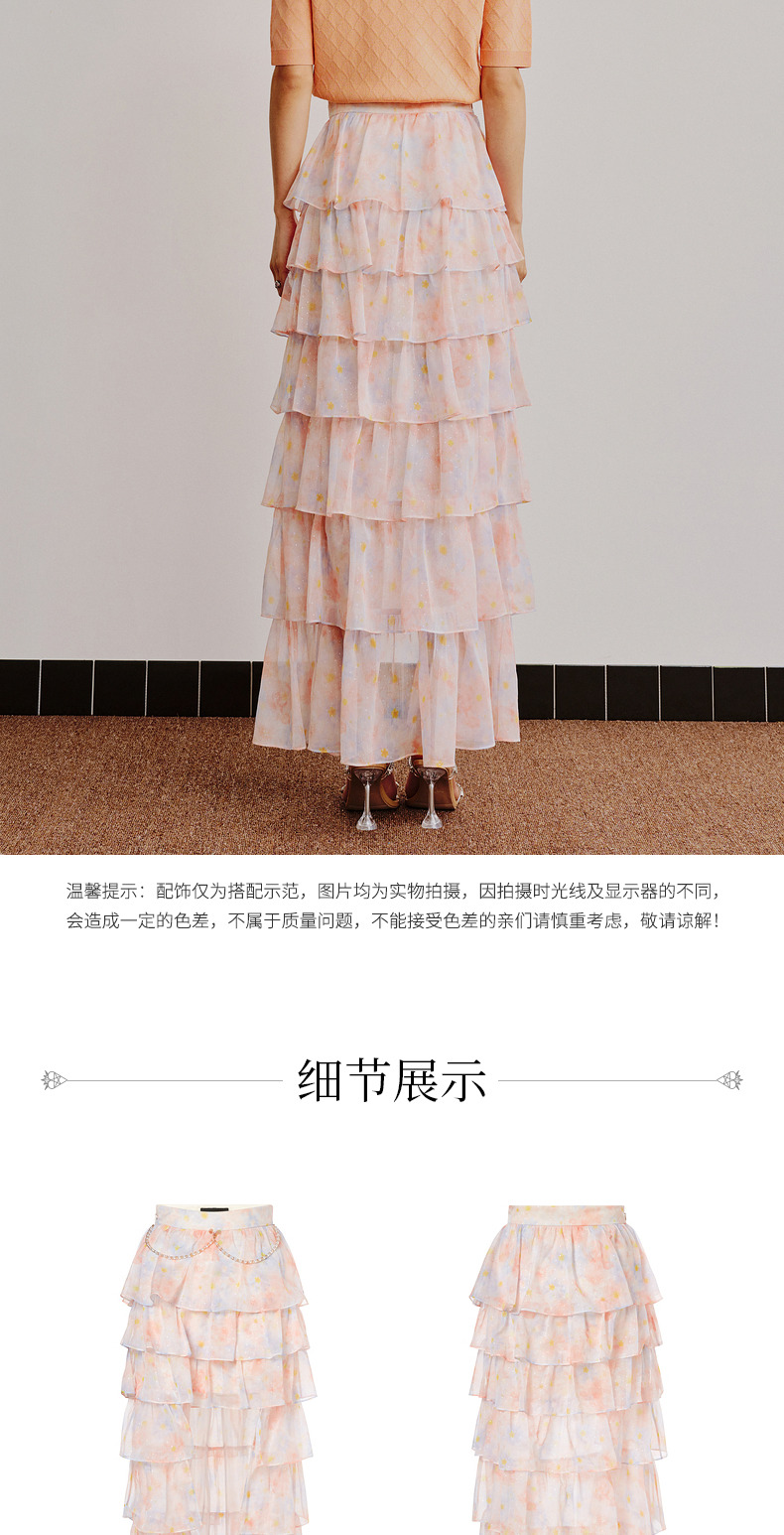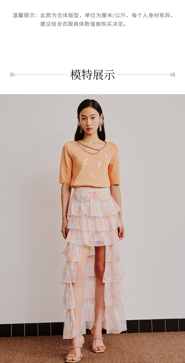 MAXRIENY仙美小众设计感半身裙浪漫渐变橙收腰塔裙(货号:MC88SK304)