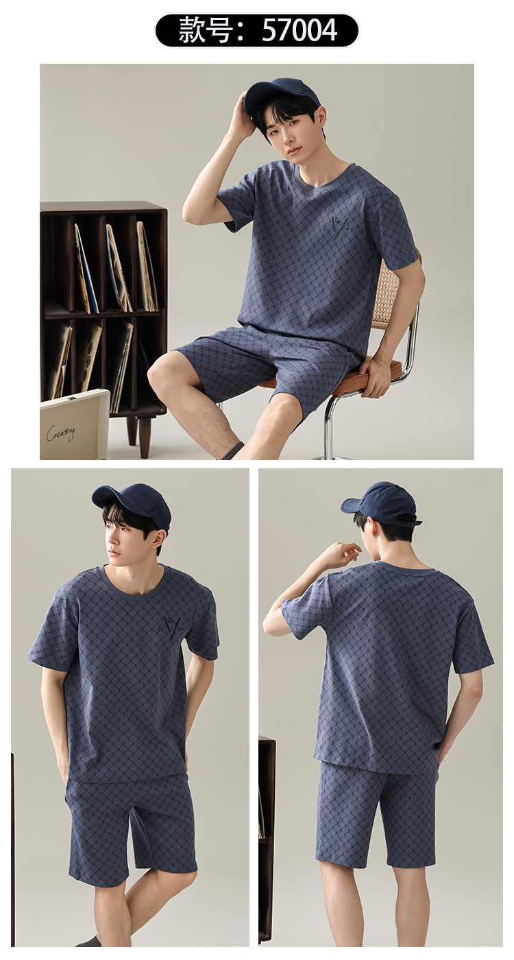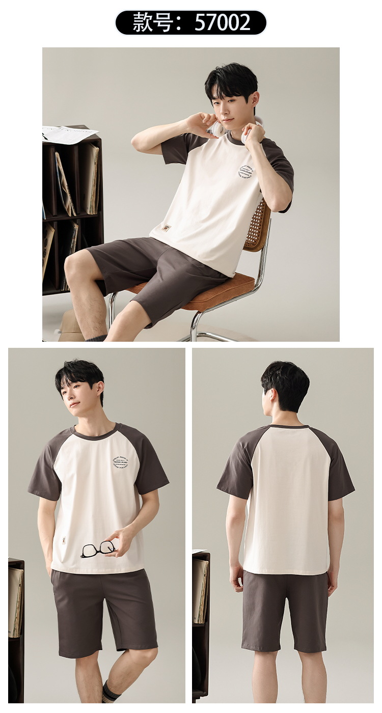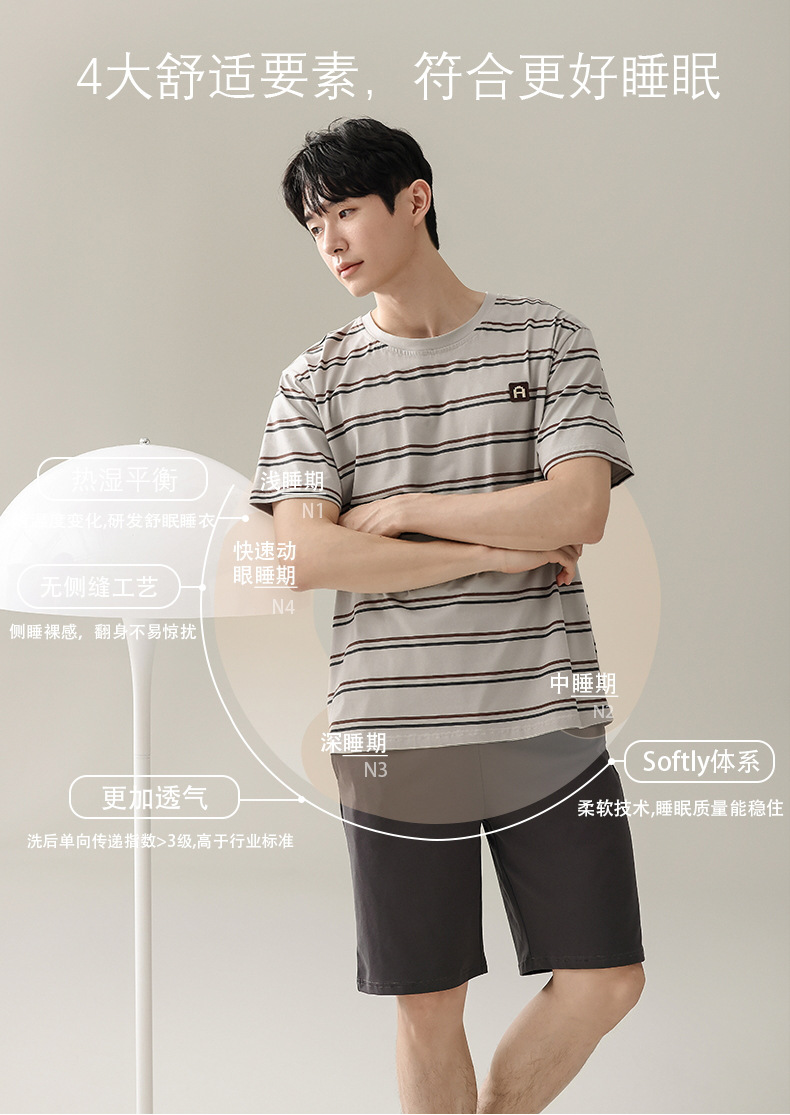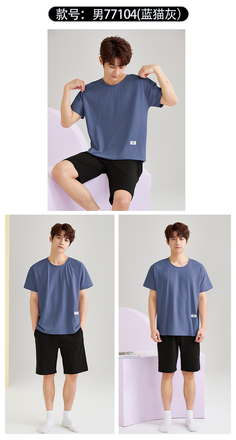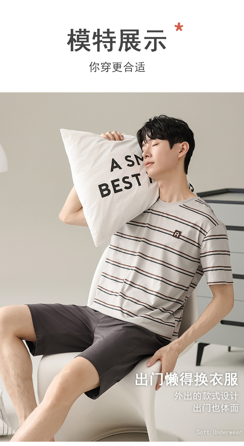 【简约,惬意的舒适】2024新款夏季短袖短裤纯棉睡衣男 运动宽松薄款 大码男士家居服套装-QQ