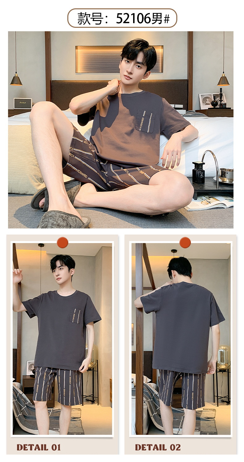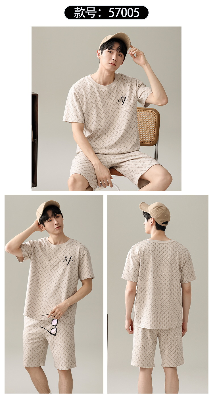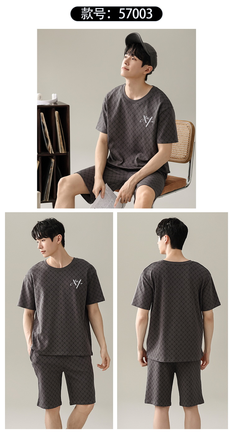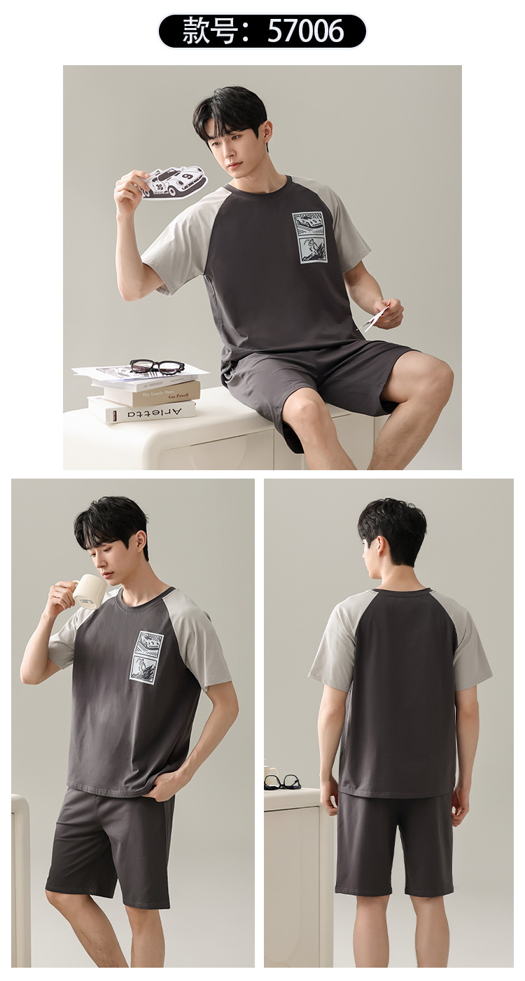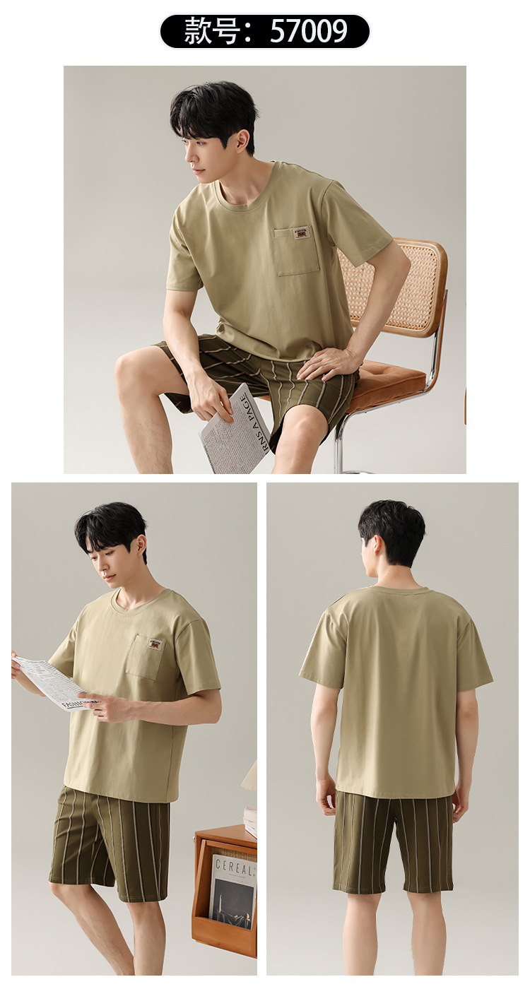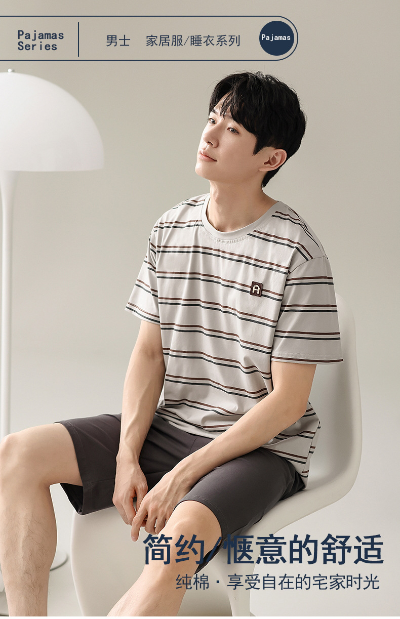 【简约,惬意的舒适】2024新款夏季短袖短裤纯棉睡衣男 运动宽松薄款 大码男士家居服套装-QQ