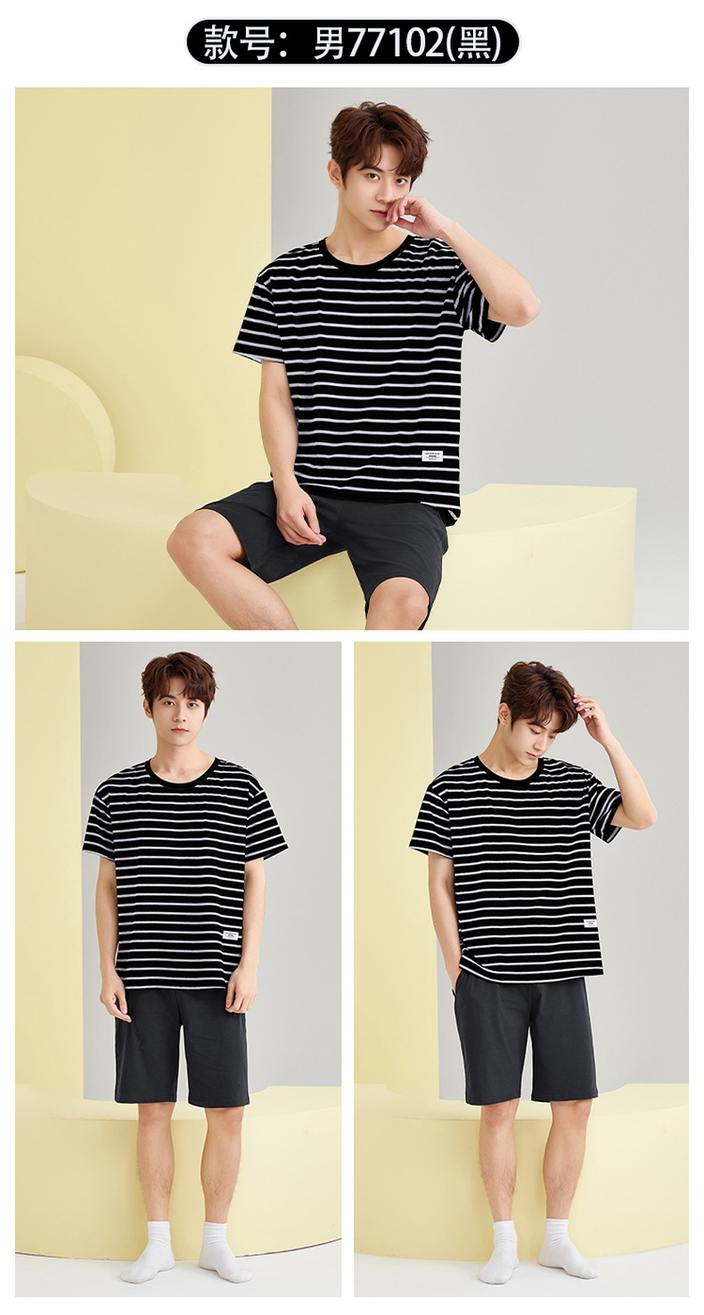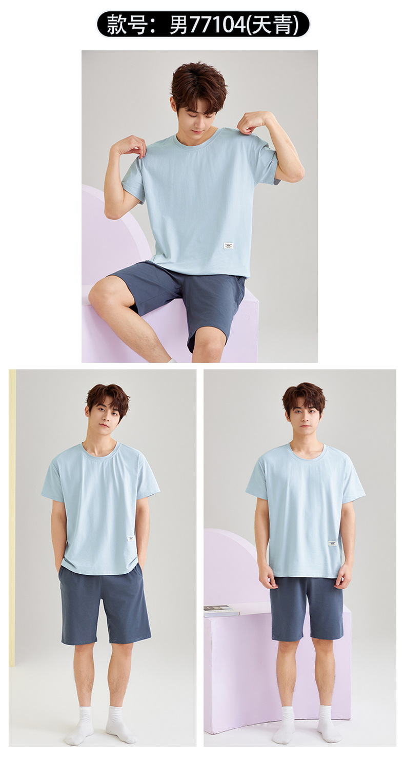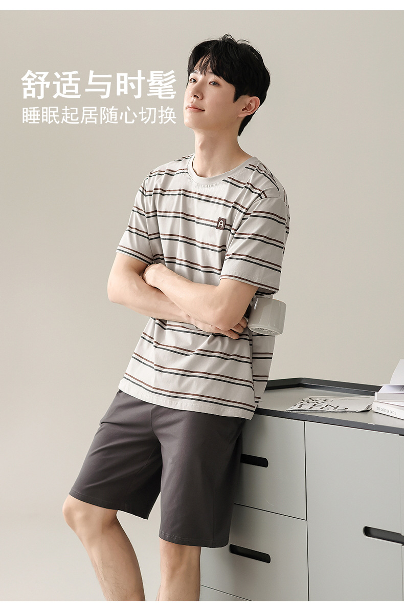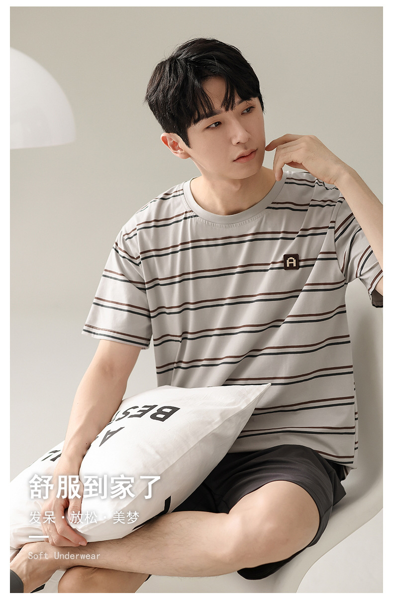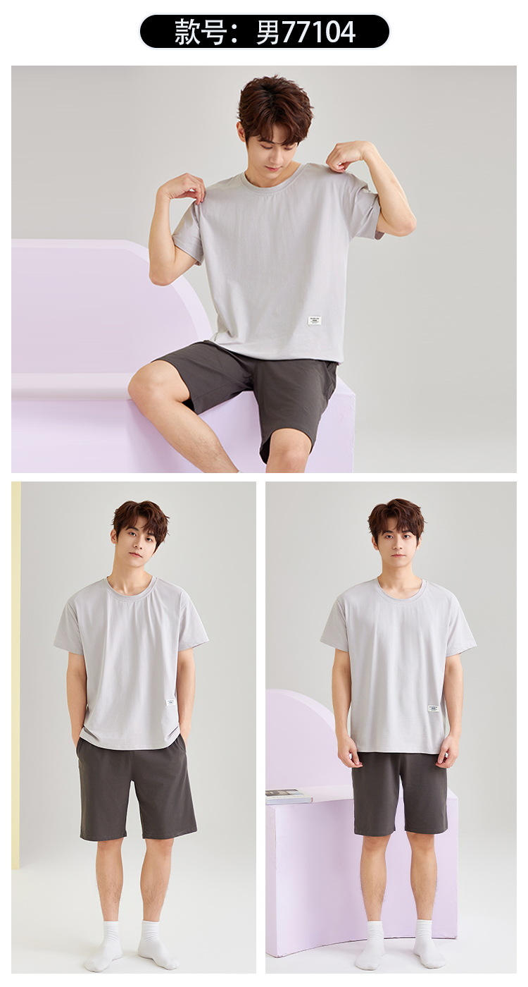 【简约,惬意的舒适】2024新款夏季短袖短裤纯棉睡衣男 运动宽松薄款 大码男士家居服套装-QQ