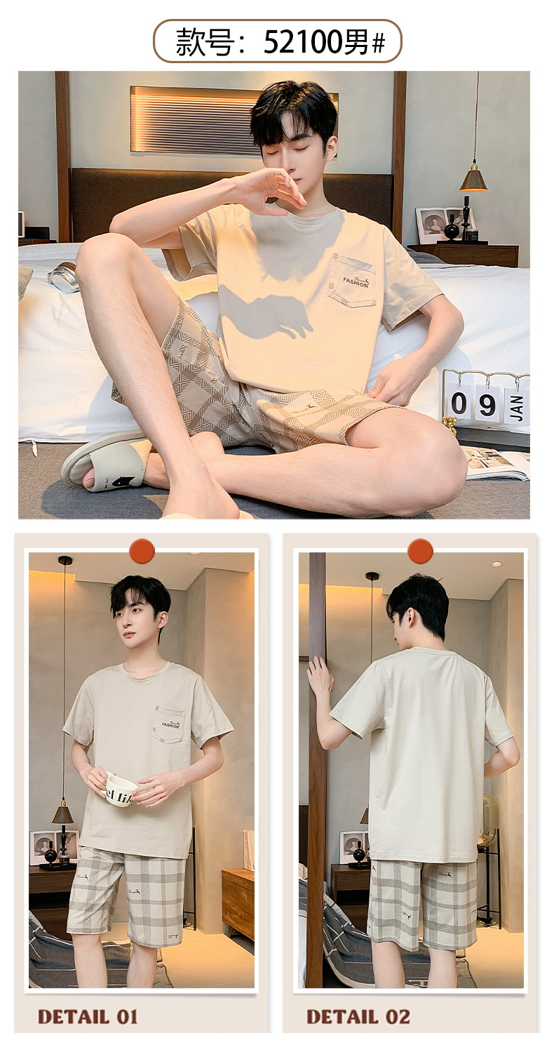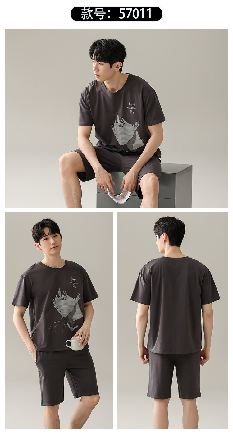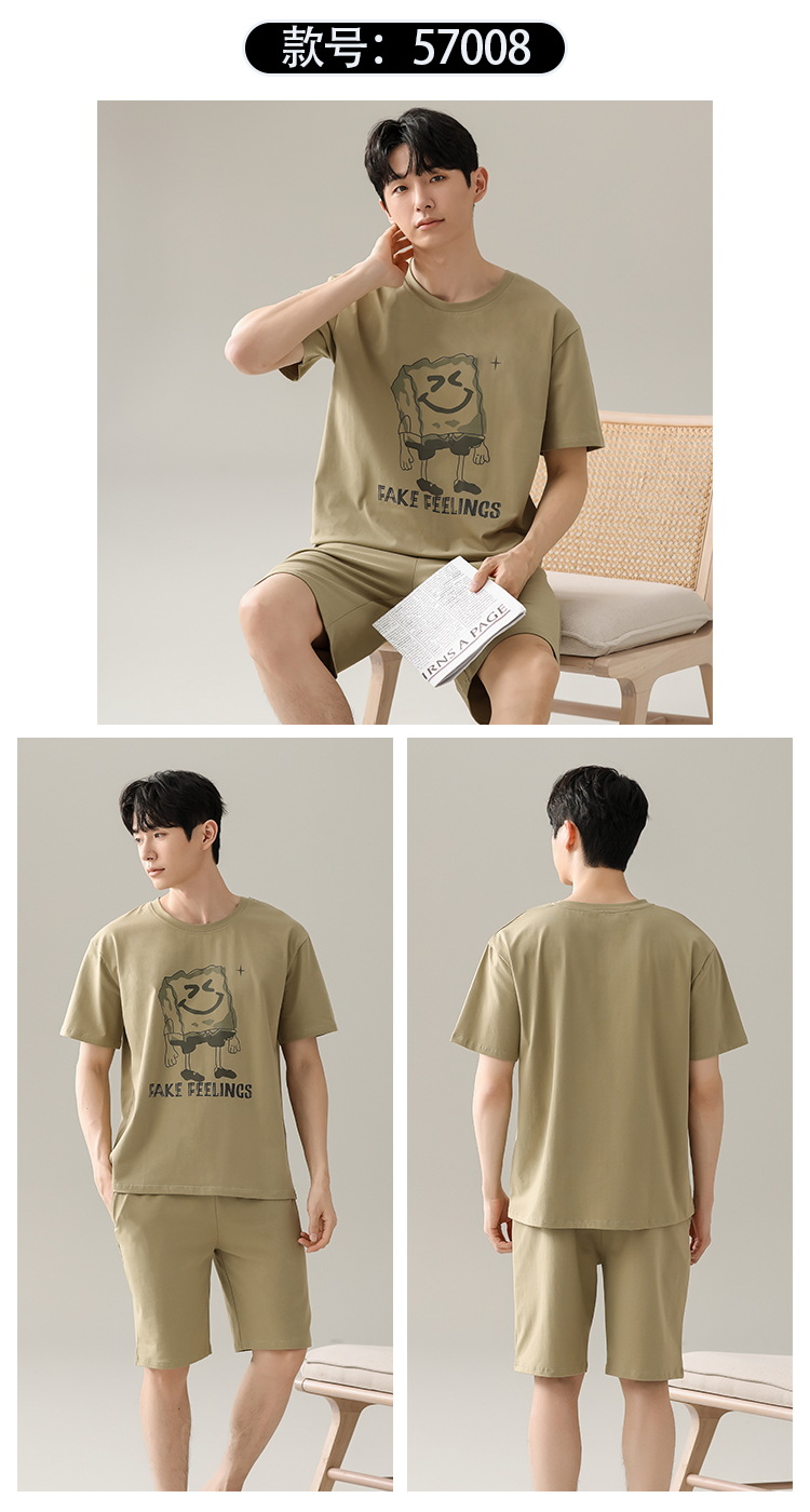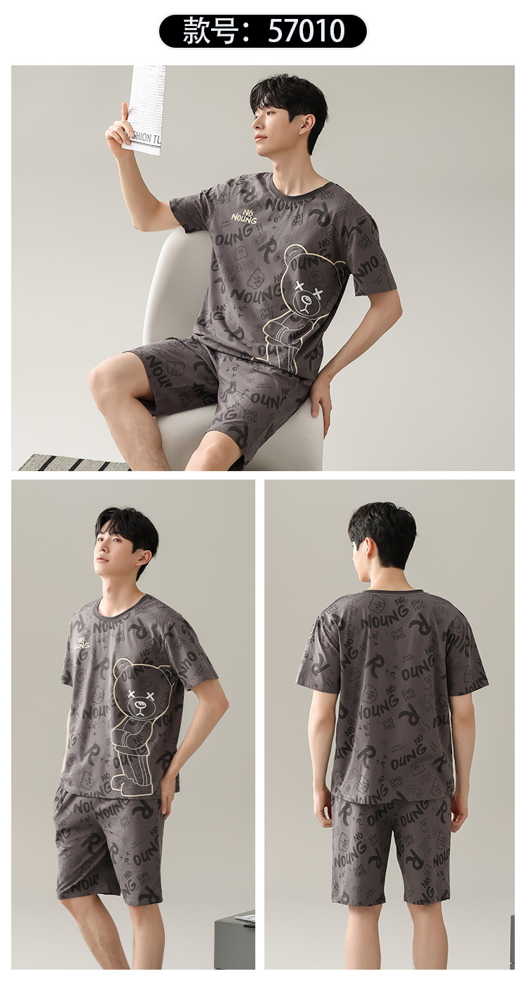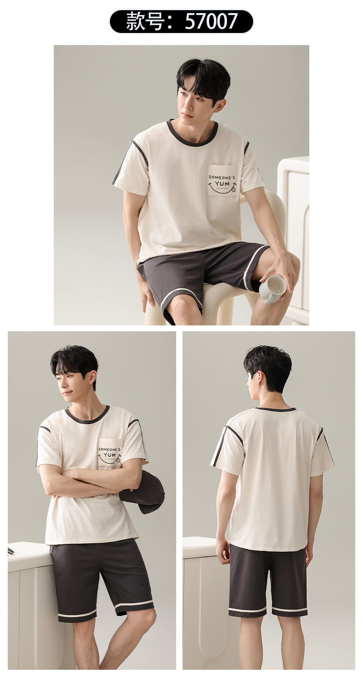 【简约,惬意的舒适】2024新款夏季短袖短裤纯棉睡衣男 运动宽松薄款 大码男士家居服套装-QQ