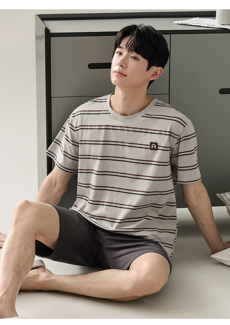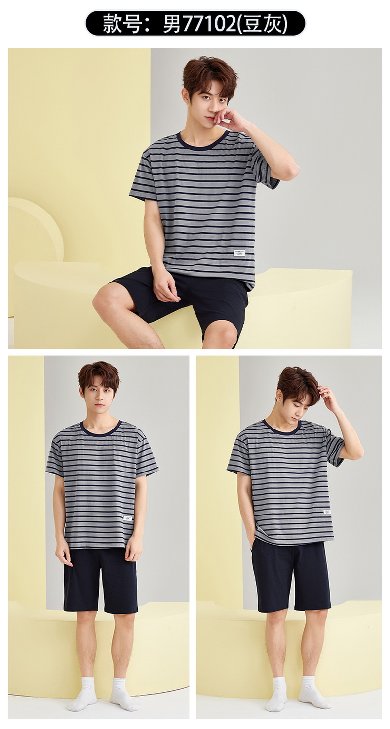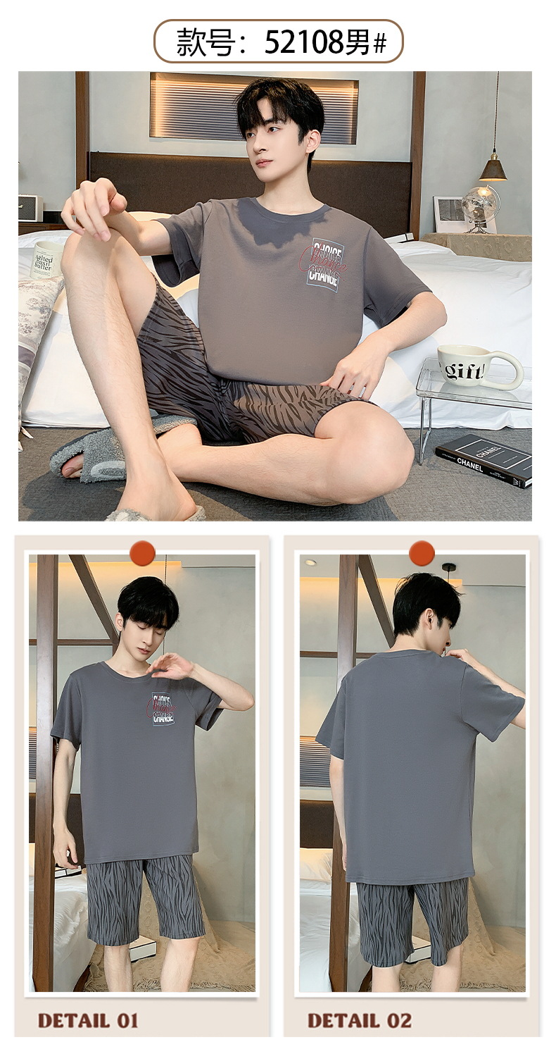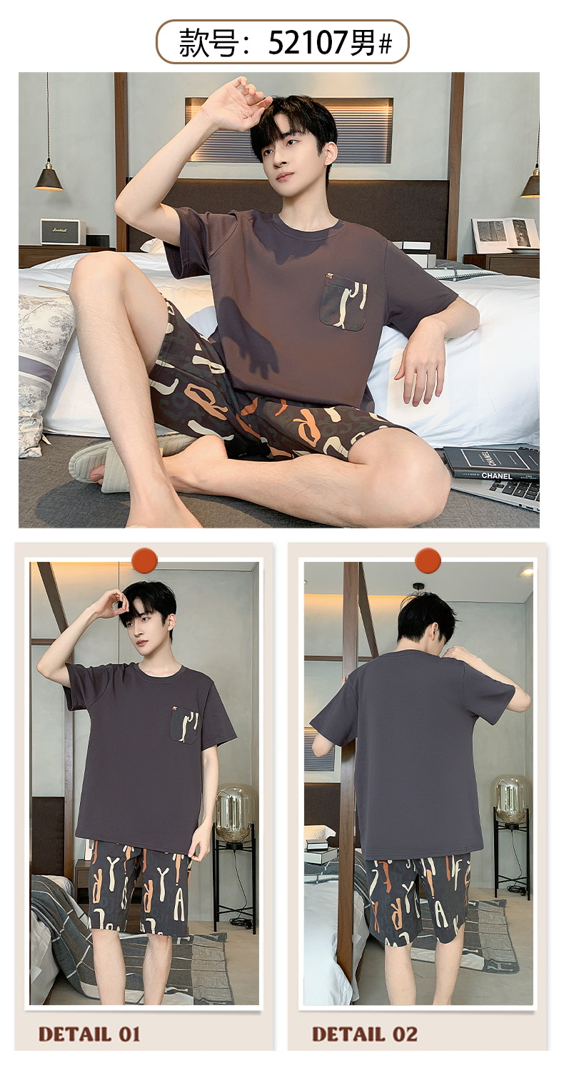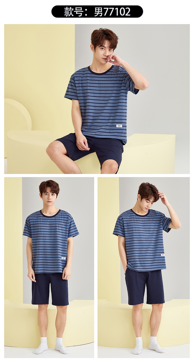 【简约,惬意的舒适】2024新款夏季短袖短裤纯棉睡衣男 运动宽松薄款 大码男士家居服套装-QQ