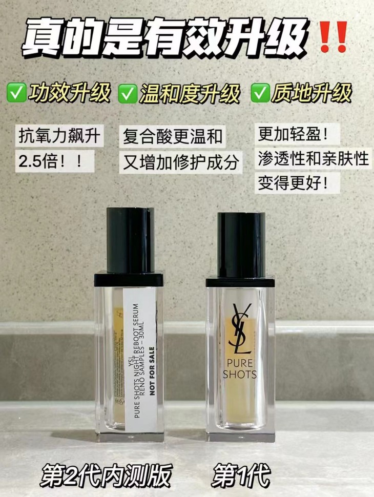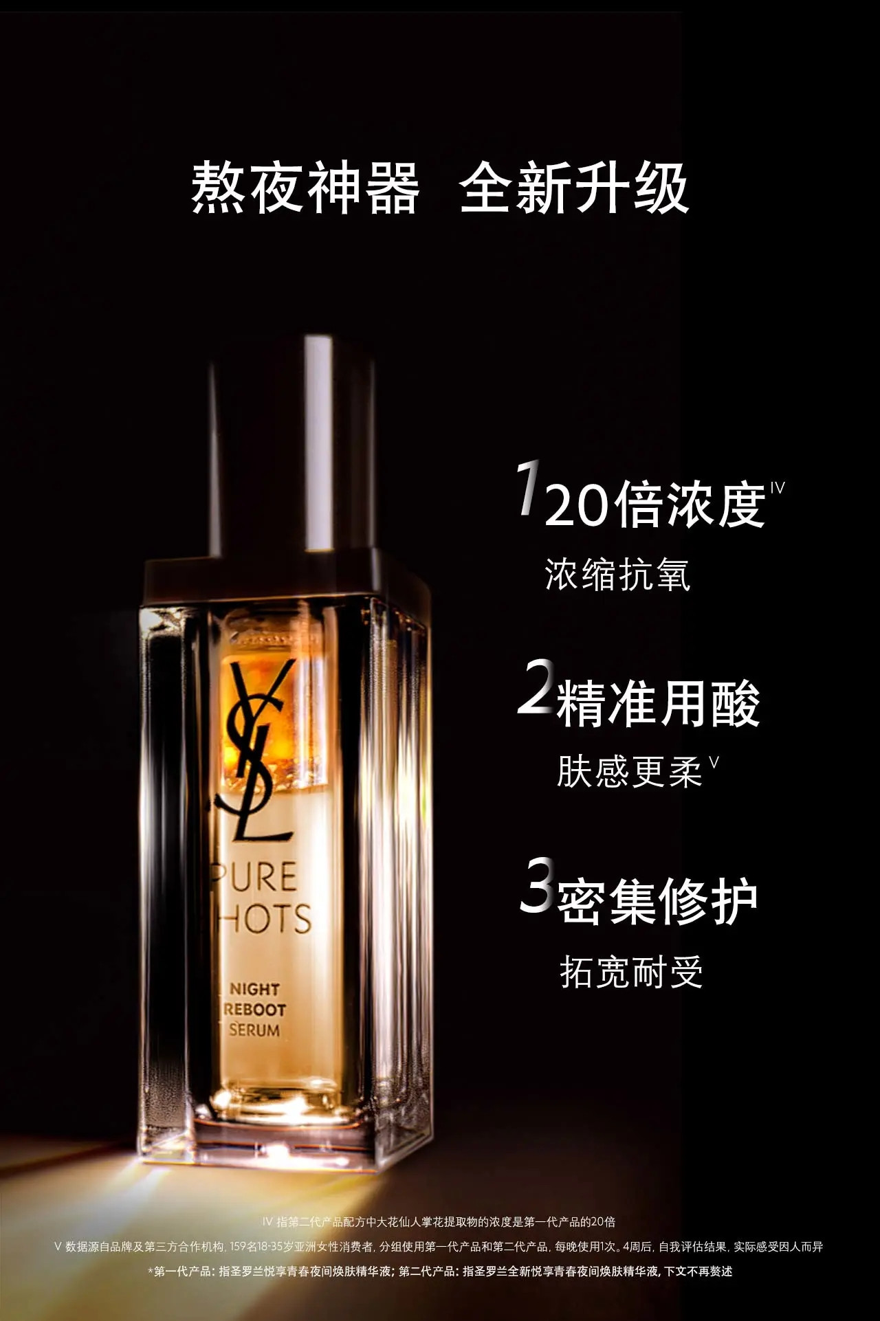 👑YSL 圣罗兰夜皇后精华(第二代) 👍熬夜神器,全新升级,细嫩透亮,一夜可见🎉 ✨【功效新升级】:去黄提亮更猛更快,整体抗氧力飙升了2.5倍✅ 💚【配方+肤感新升级】:精准用酸+ 密集修护 + 2:1的水油质地好吸收✅ 🎀更温柔更稳定更加耐受,油皮用也不会有负担,亲肤性upupup~ 💎熬夜蜡黄、皮肤粗糙的宝友赶紧冲,效果真的抗打! 💫有效:去黄提亮✔️,平滑嫩肤✔️,细致毛孔✔️