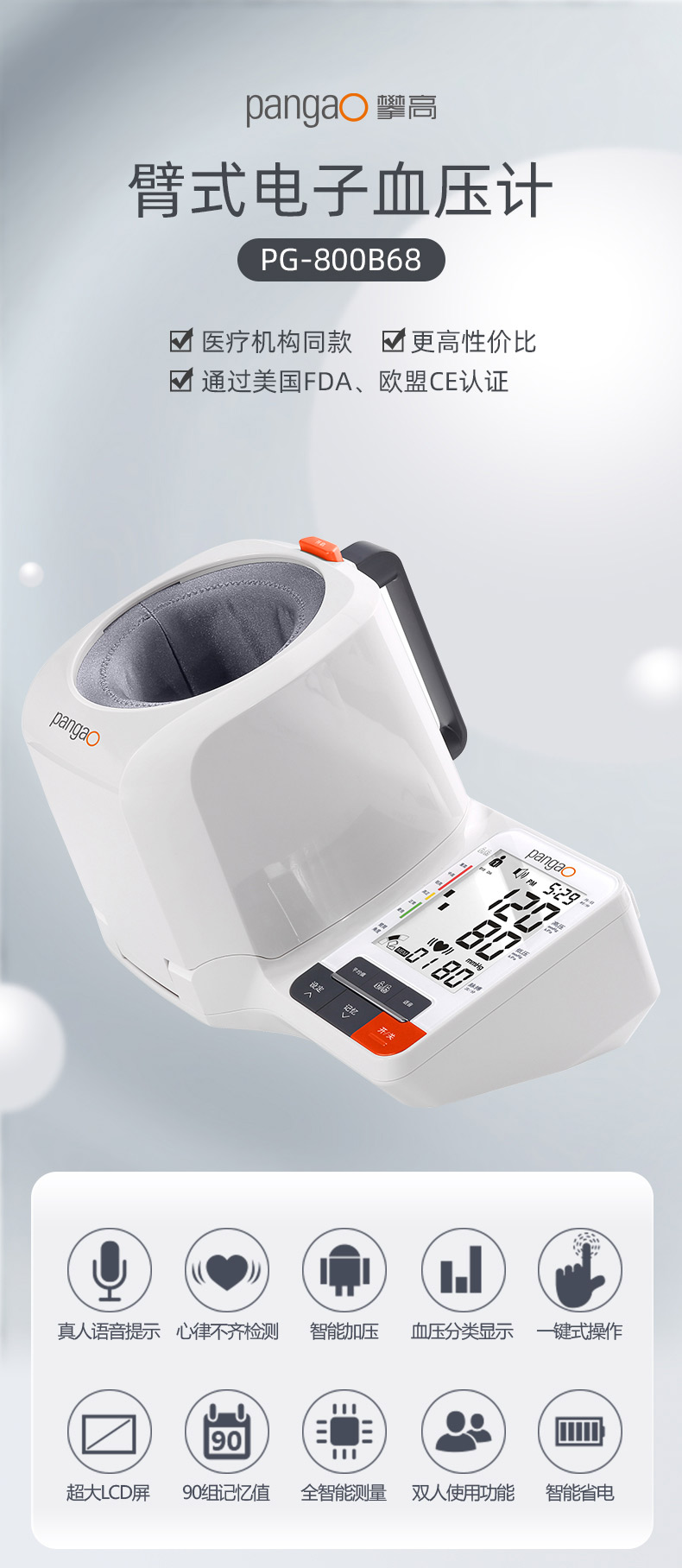 攀高台式手臂电子血压计高血压测量仪高精准家用测压仪老人PG-800B68
