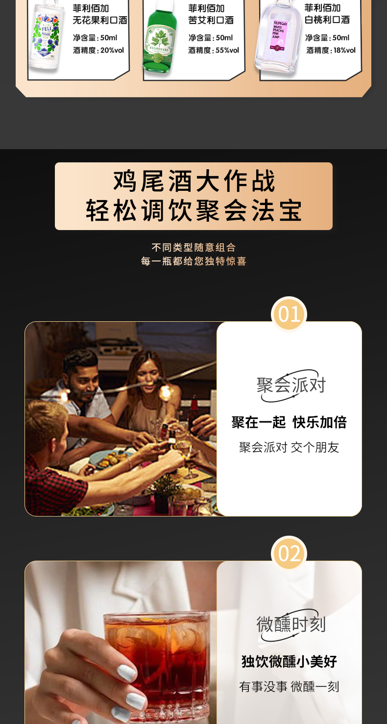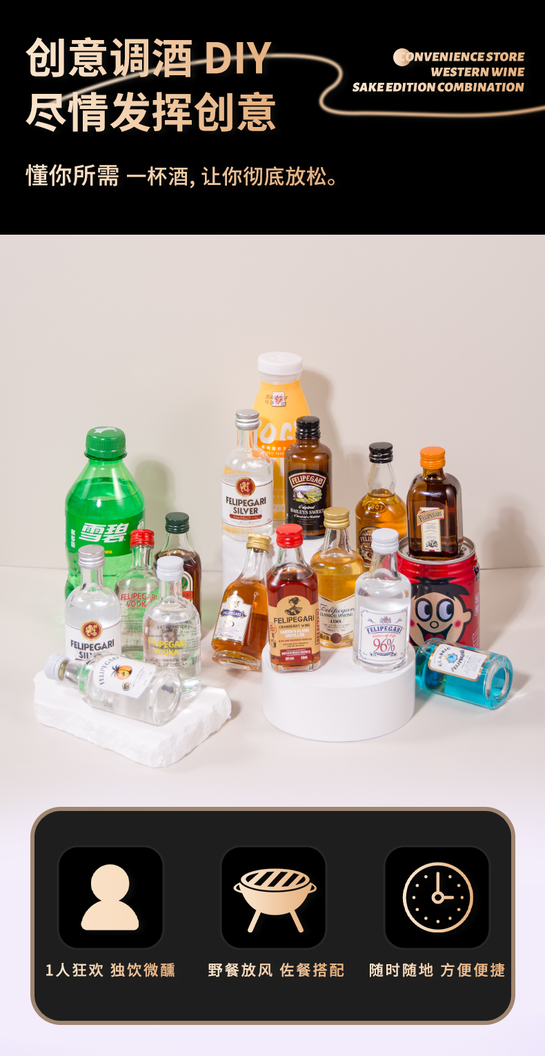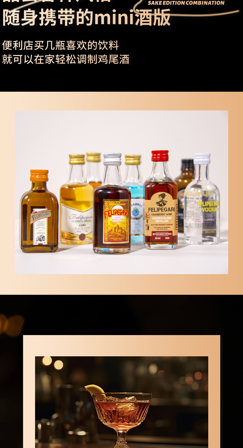 菲利佰加·白兰地威士忌伏特加网红洋酒小酒版8支组合套装