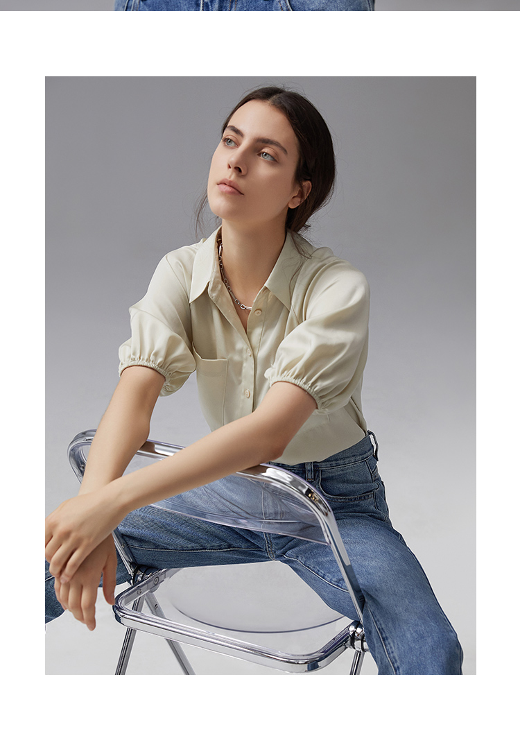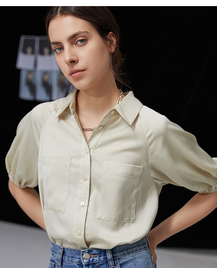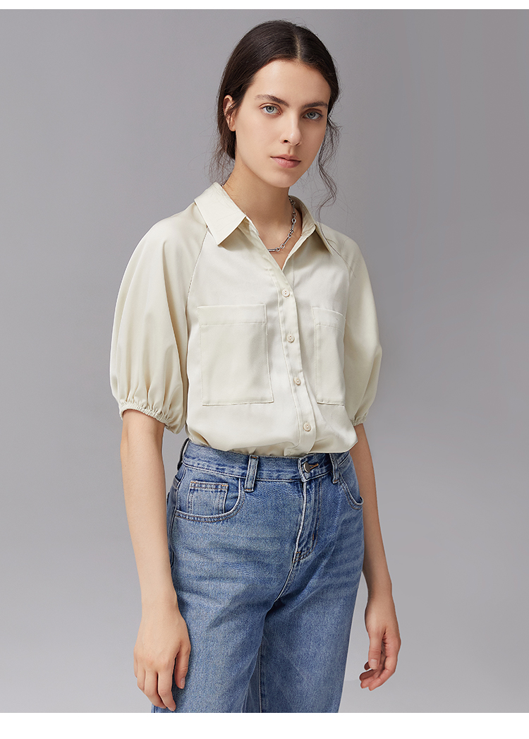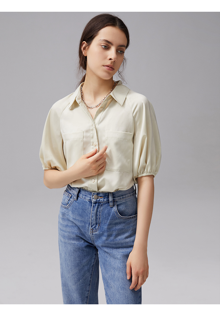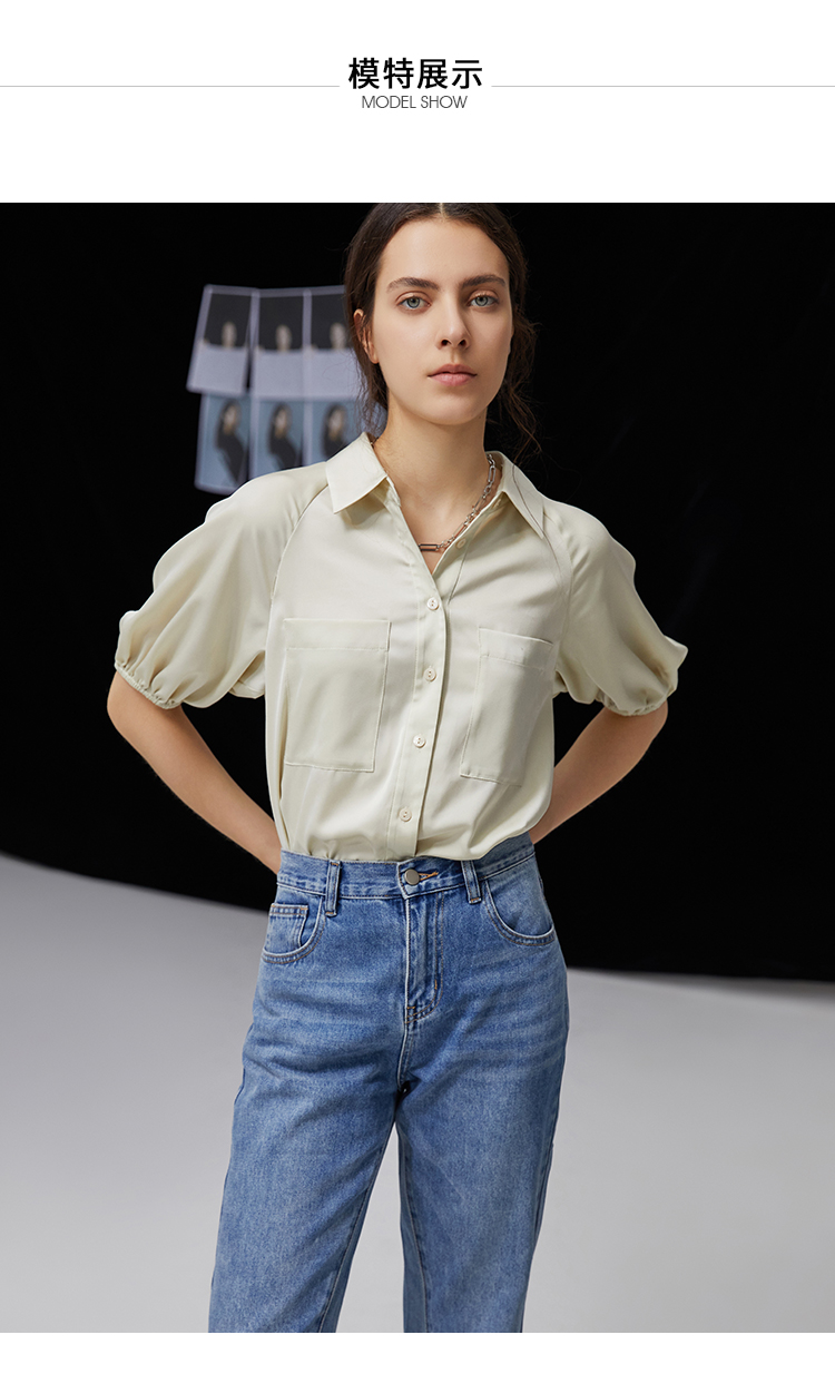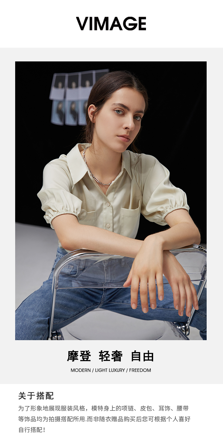 VIMAGE纬漫纪夏季新款通勤百搭时尚泡泡袖T恤衬衫上衣V1509133