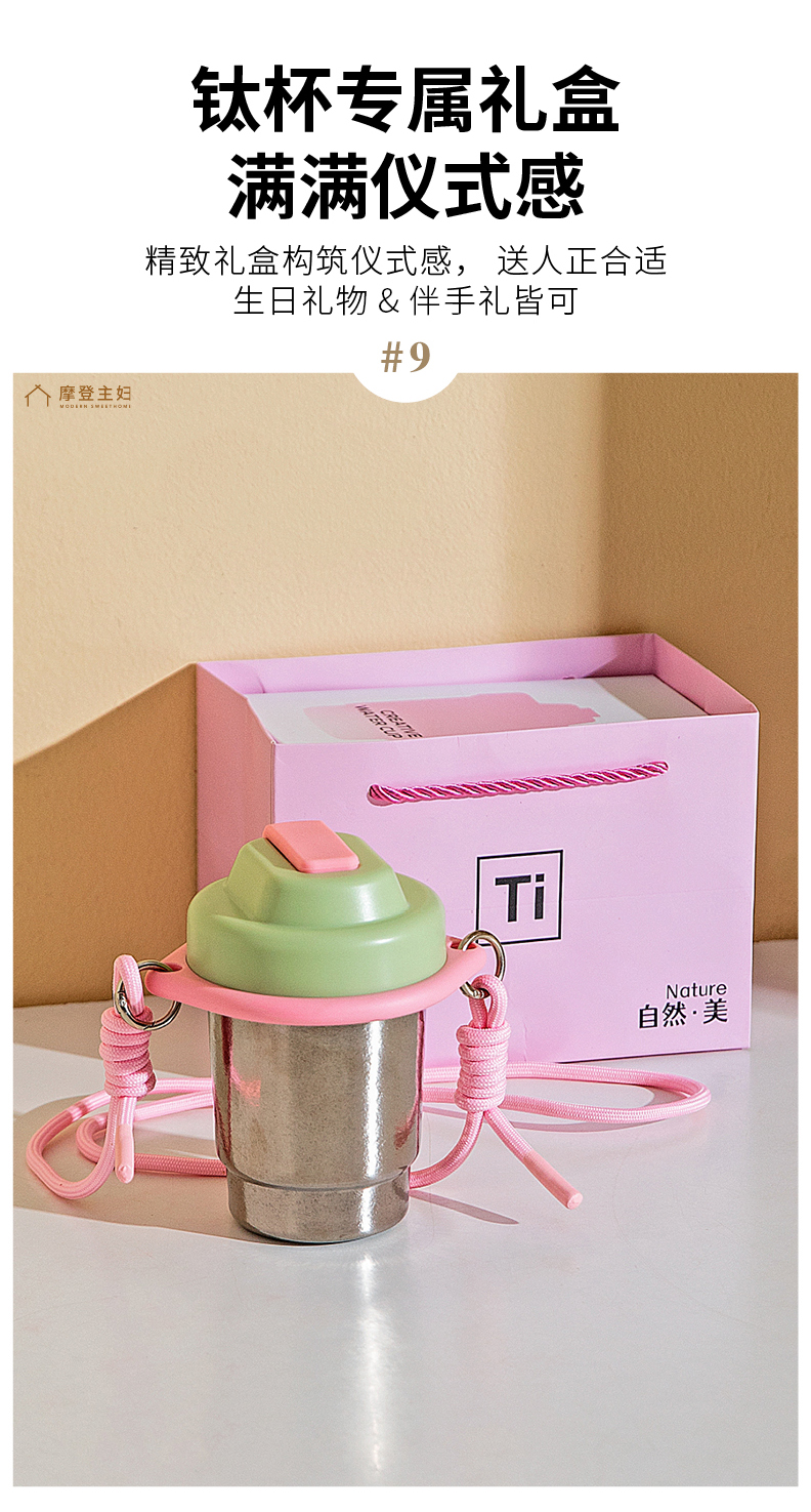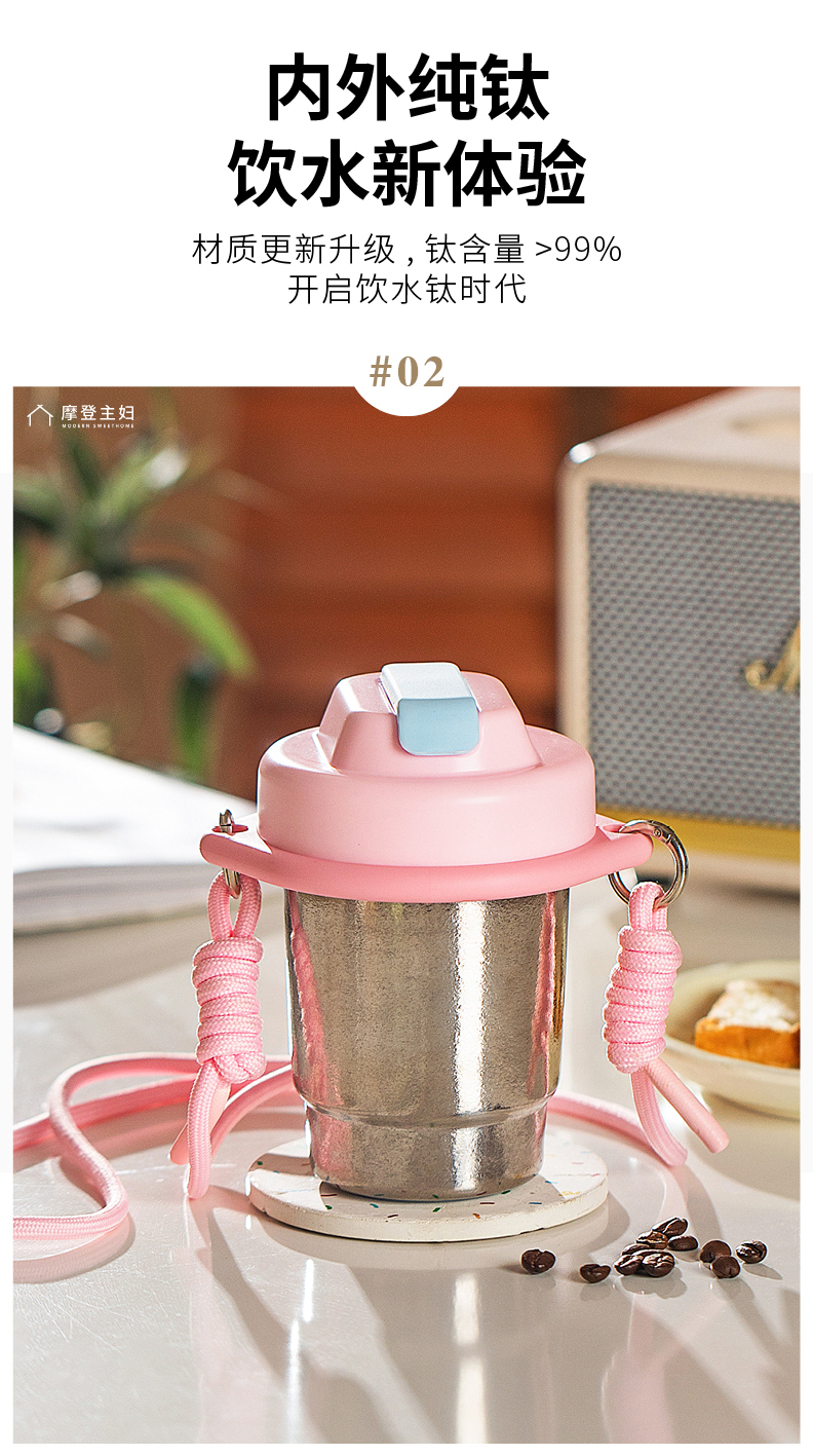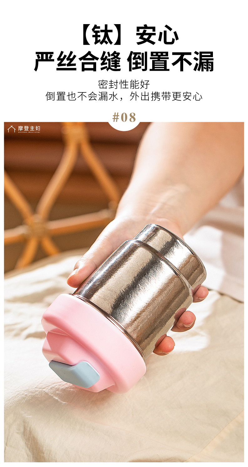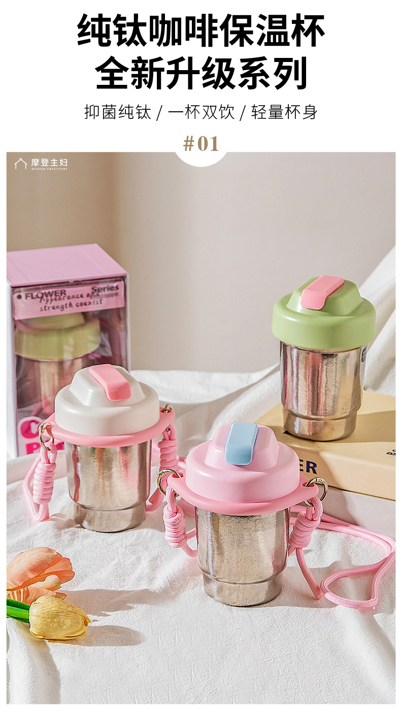 摩登主妇纯钛保温杯2025新款女生高颜值咖啡杯外出便携吸管水杯子