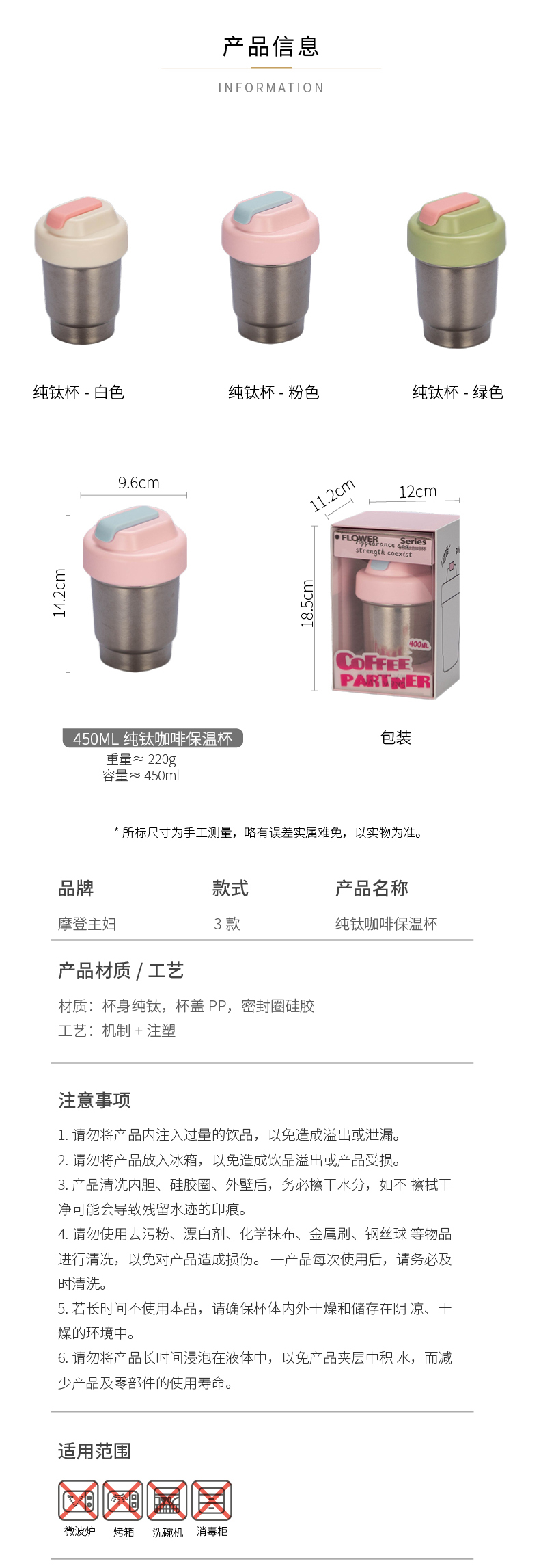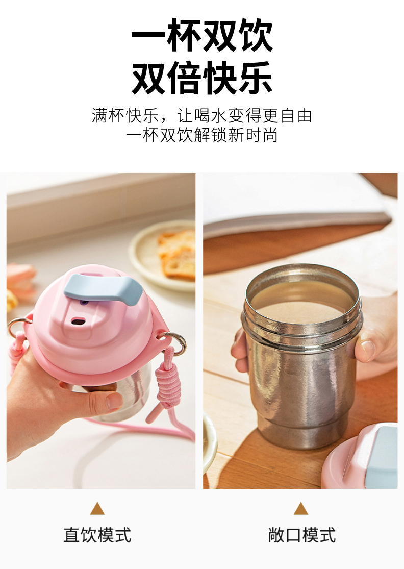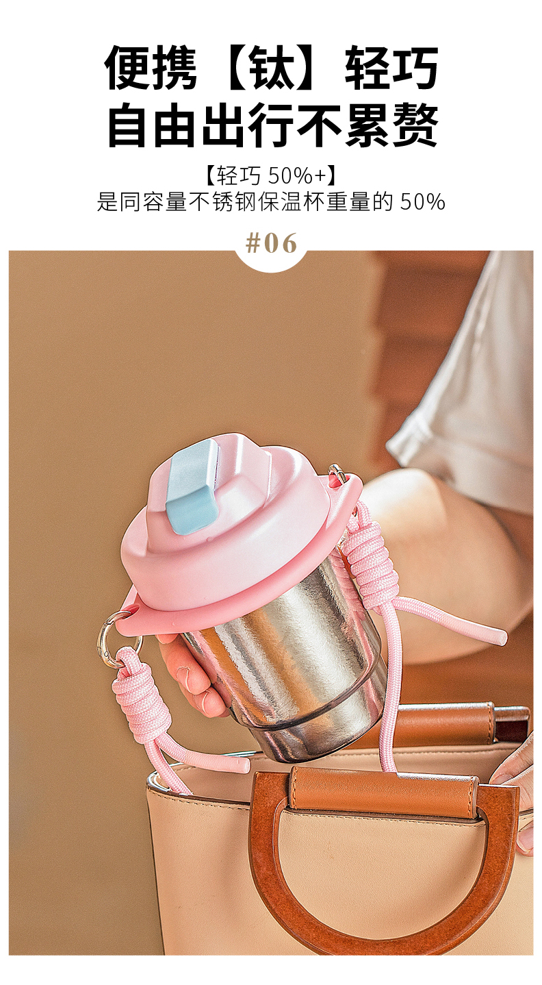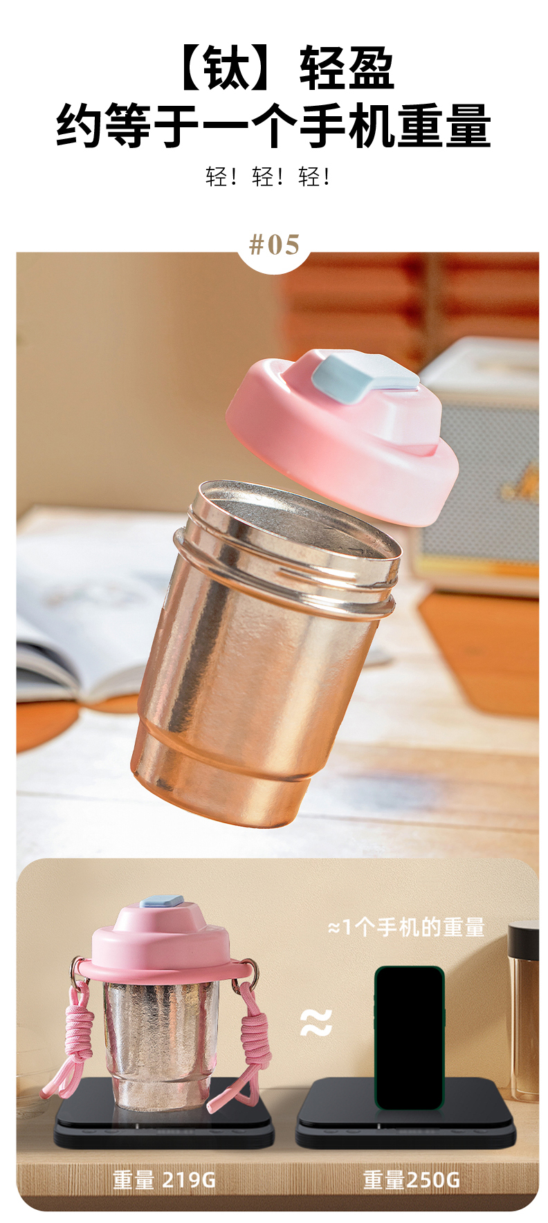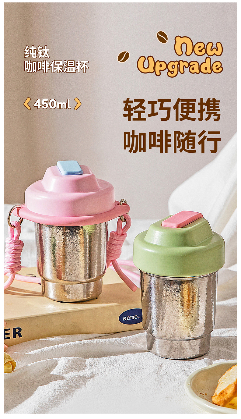 摩登主妇纯钛保温杯2025新款女生高颜值咖啡杯外出便携吸管水杯子