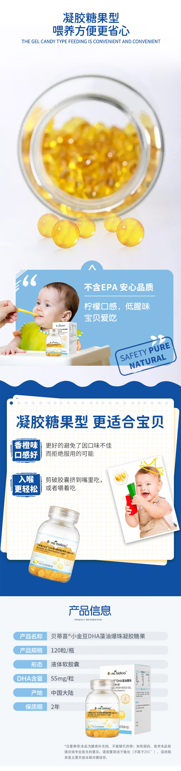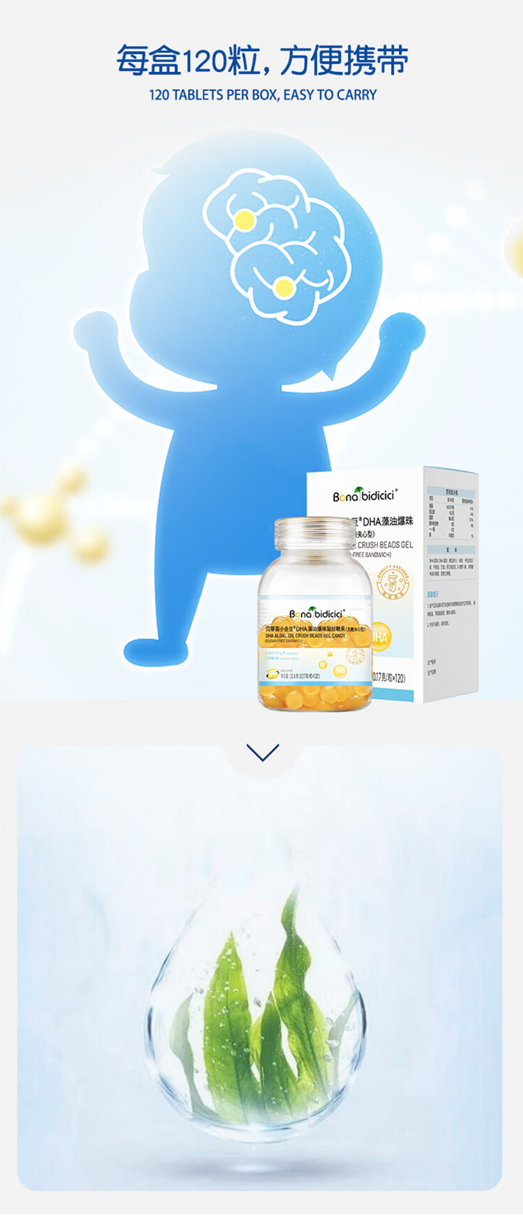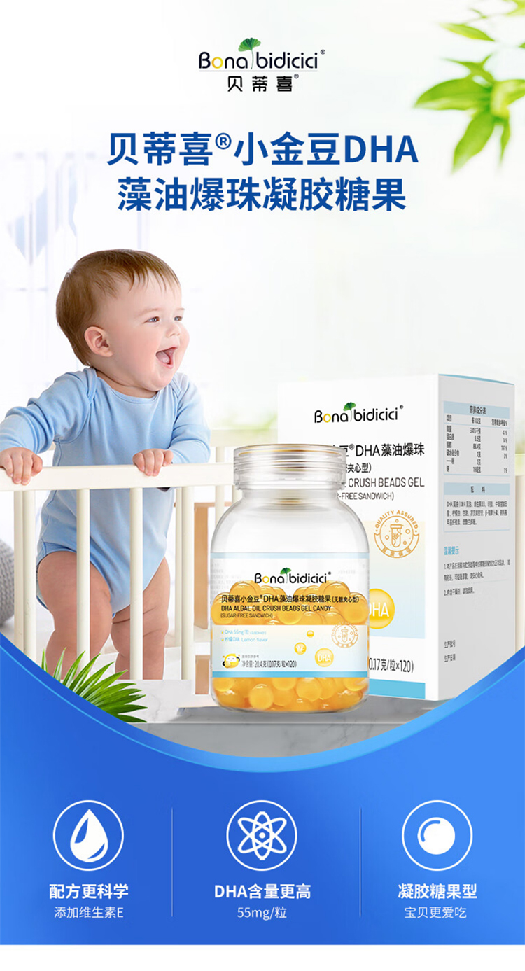 贝蒂喜小金豆儿童DHA藻油爆珠软胶囊120粒(效期至26年3月)