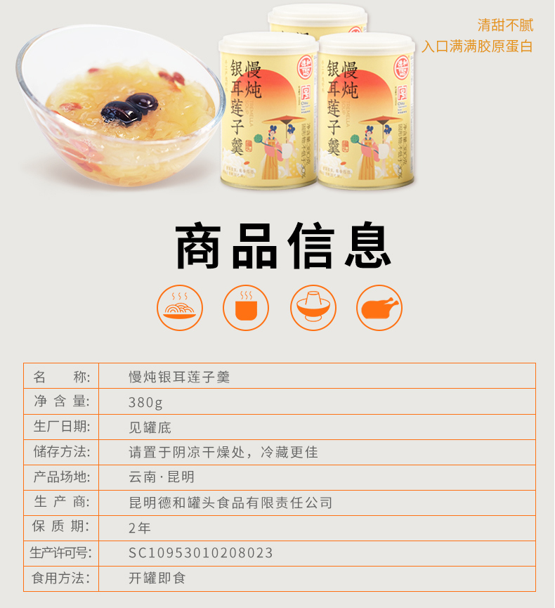 德和 慢炖银耳莲子羹 380g/罐 #润