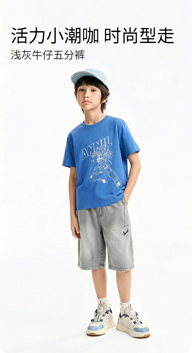 男童全腰牛仔中裤夏季新款安奈儿童装EB626746