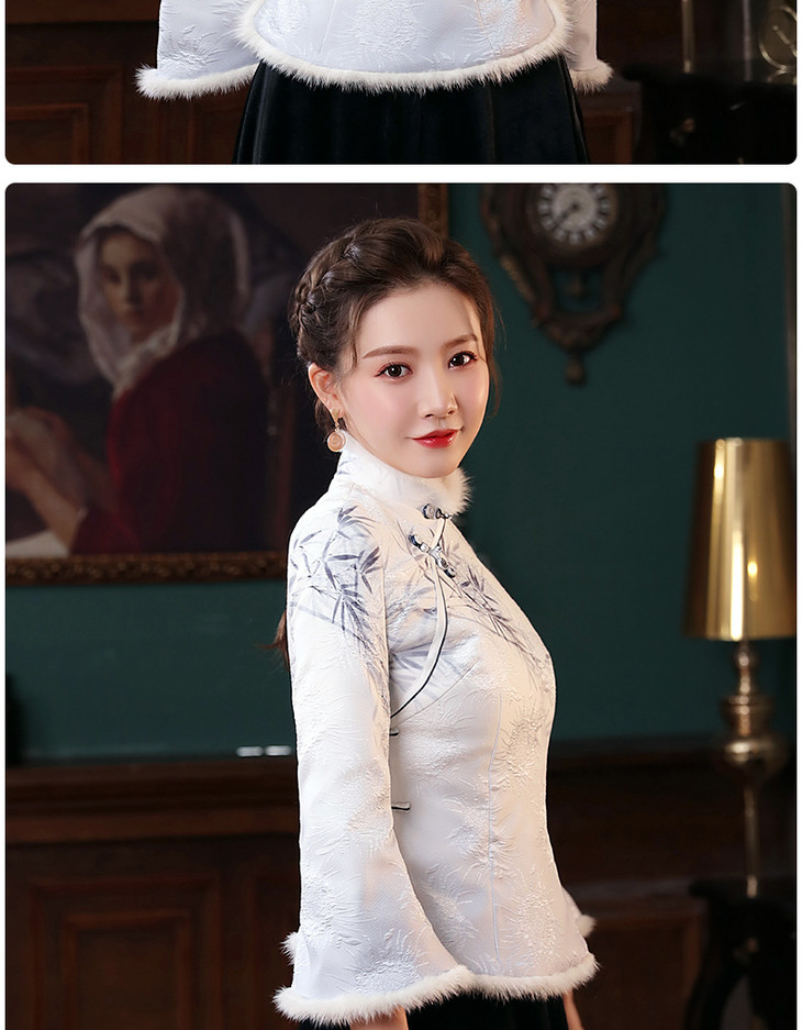【朵竹】复古改良,水貂毛定位提花夹棉旗袍上衣XGT-T2447
