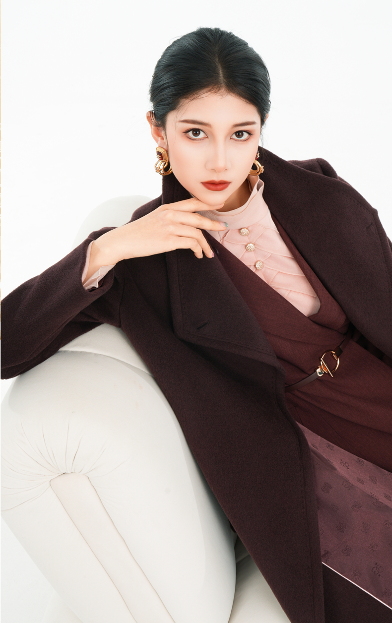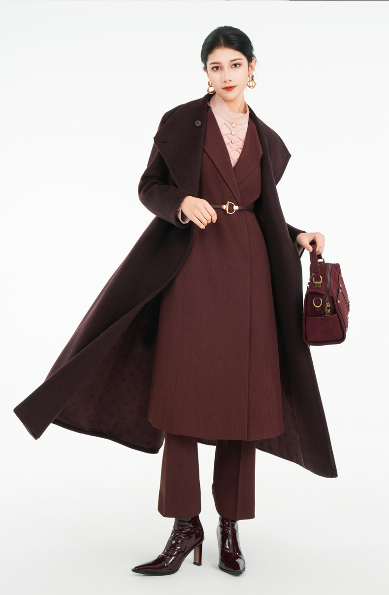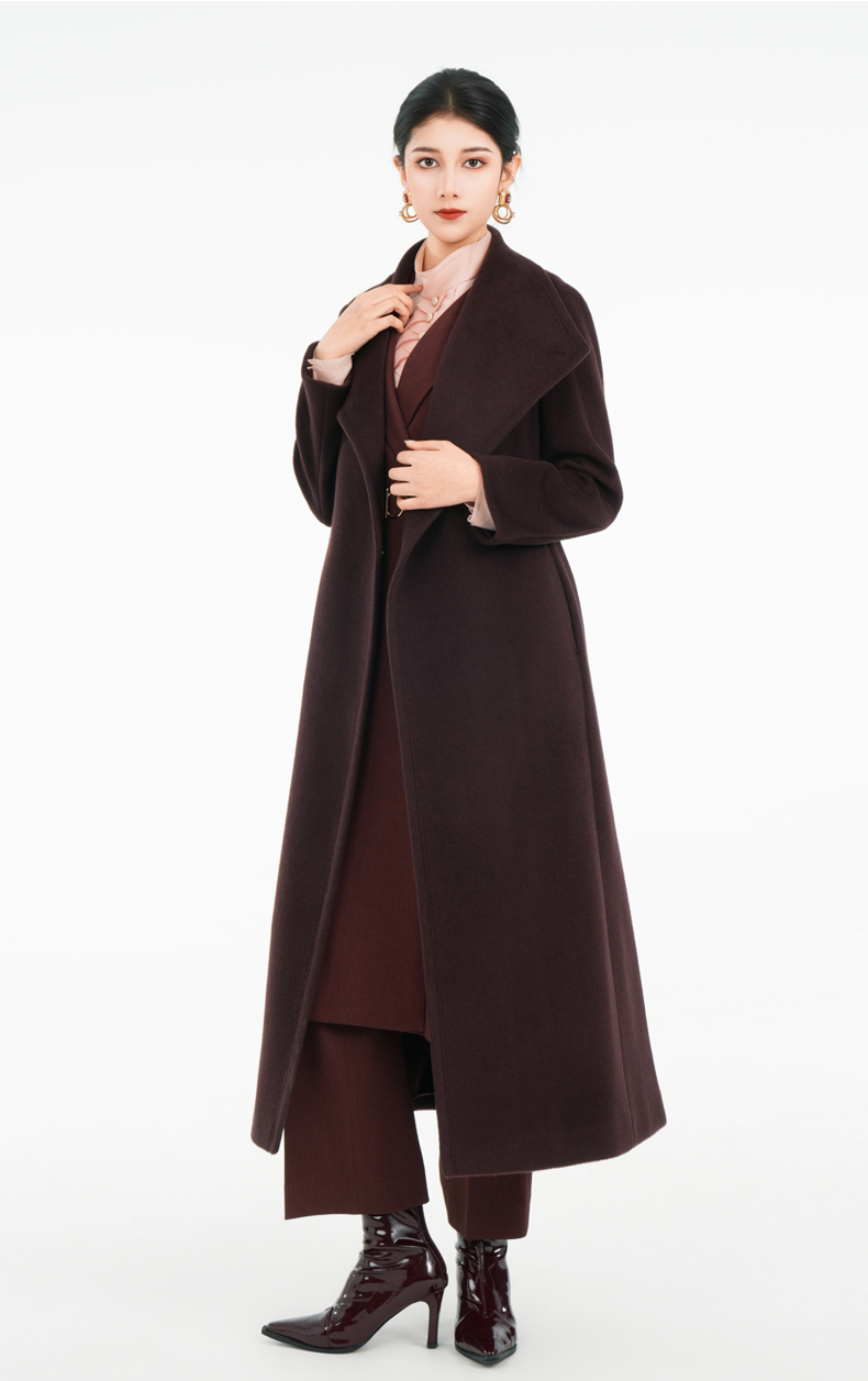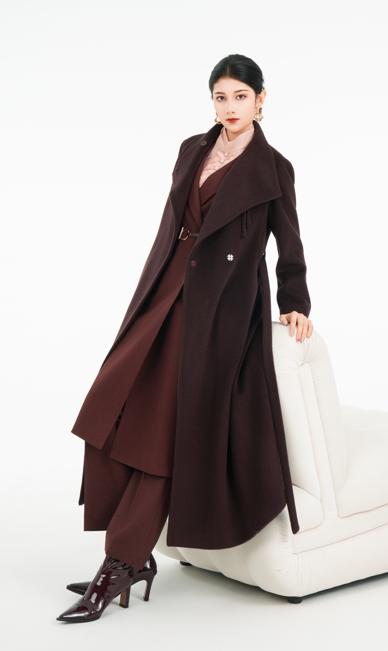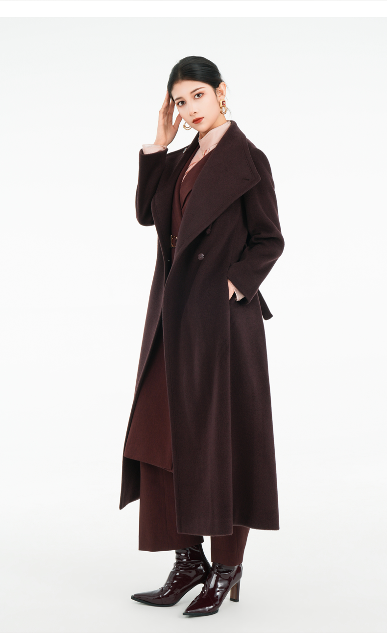 乔万尼新品2025冬100%绵羊毛大气长款复古电影感大翻领系带羊毛呢大衣ED4A710