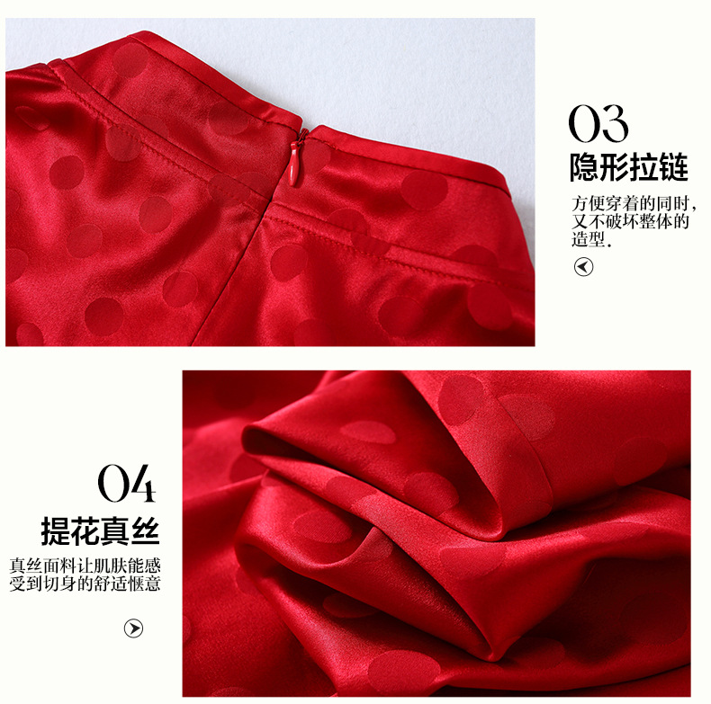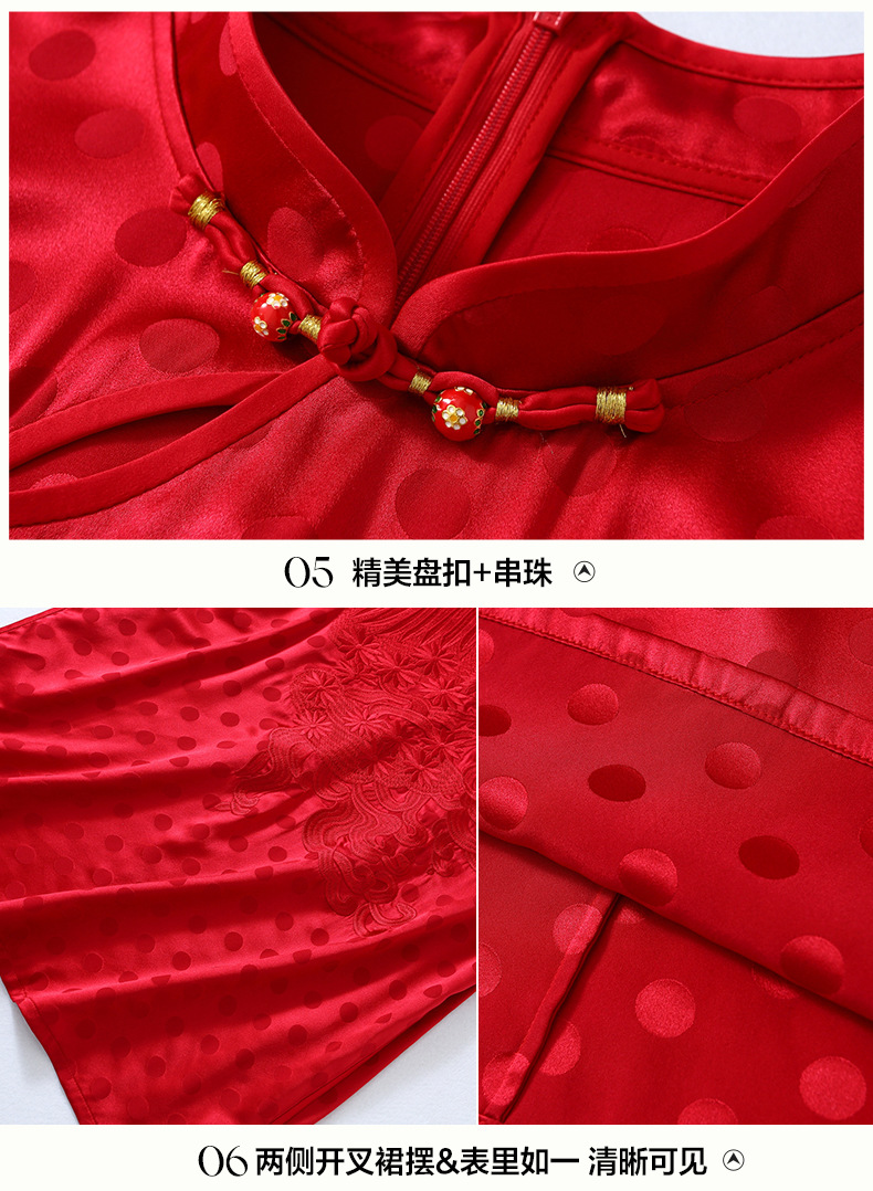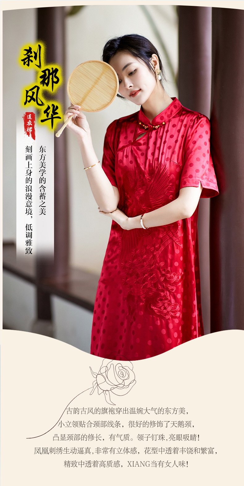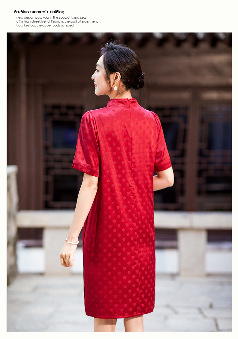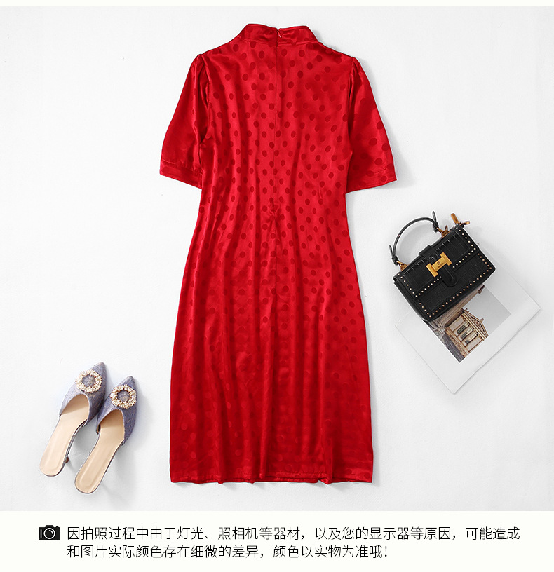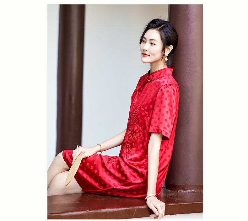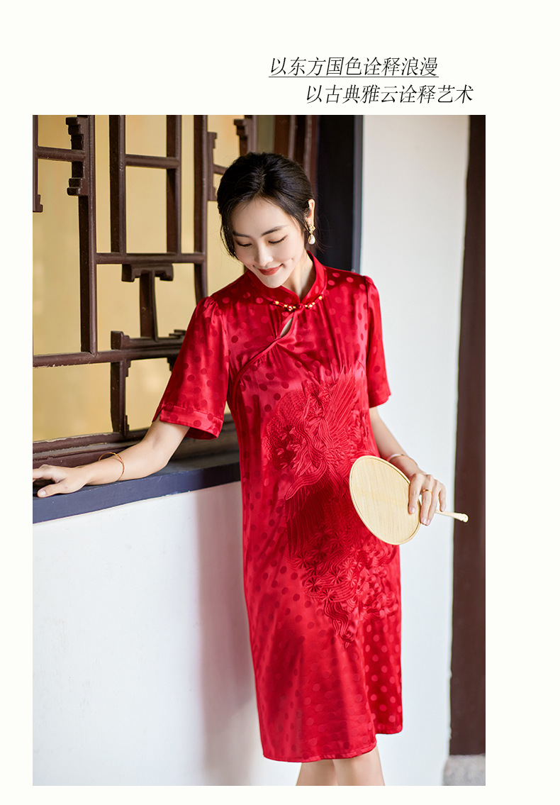 丁摩 夏季新品女装国风旗袍波点提花凤凰刺绣A字版双乔真丝连衣裙5ZF-75214