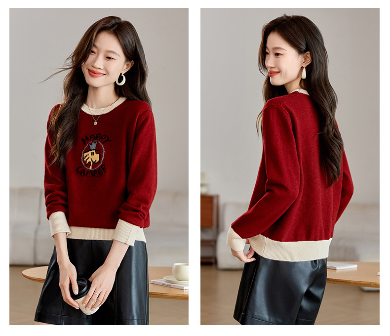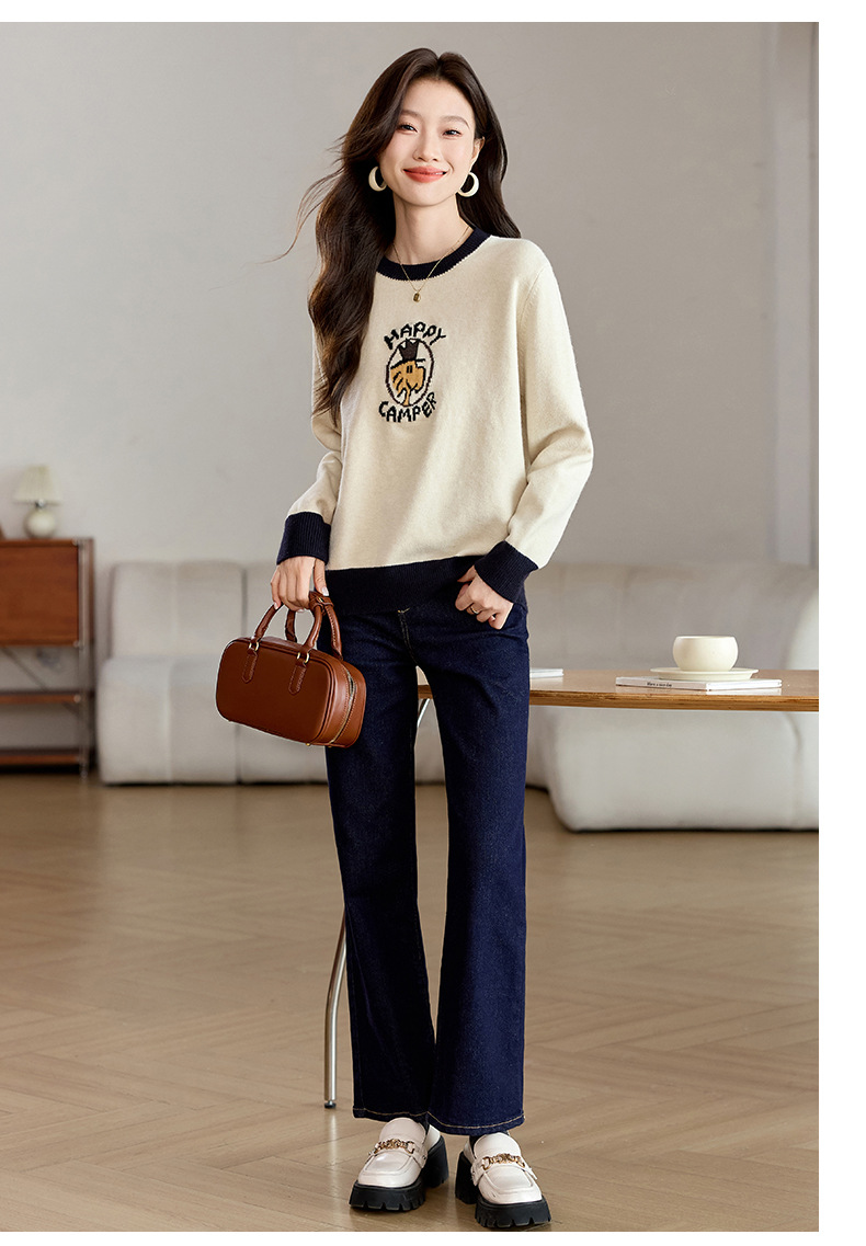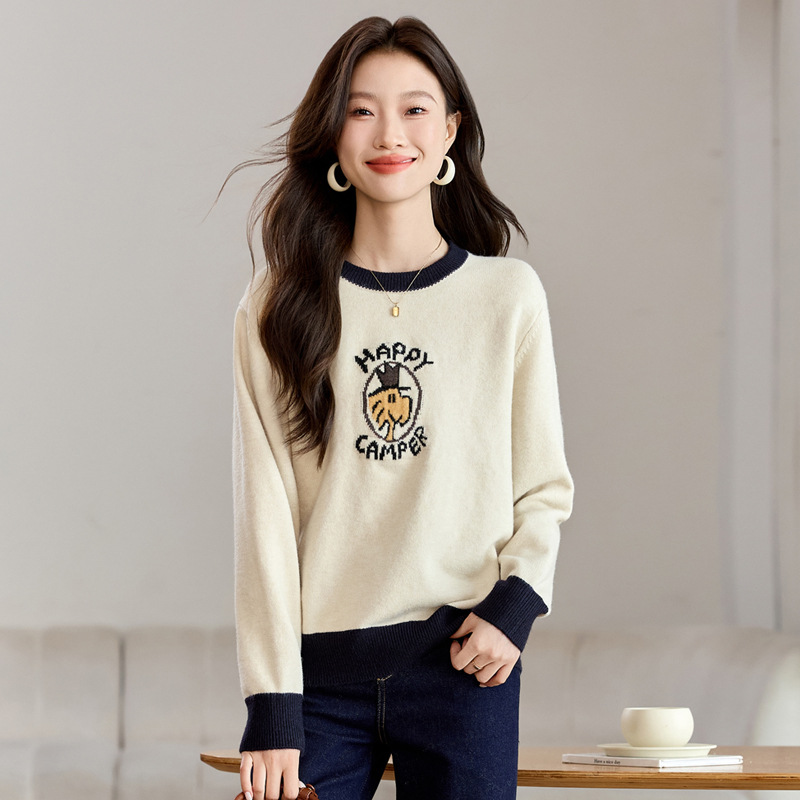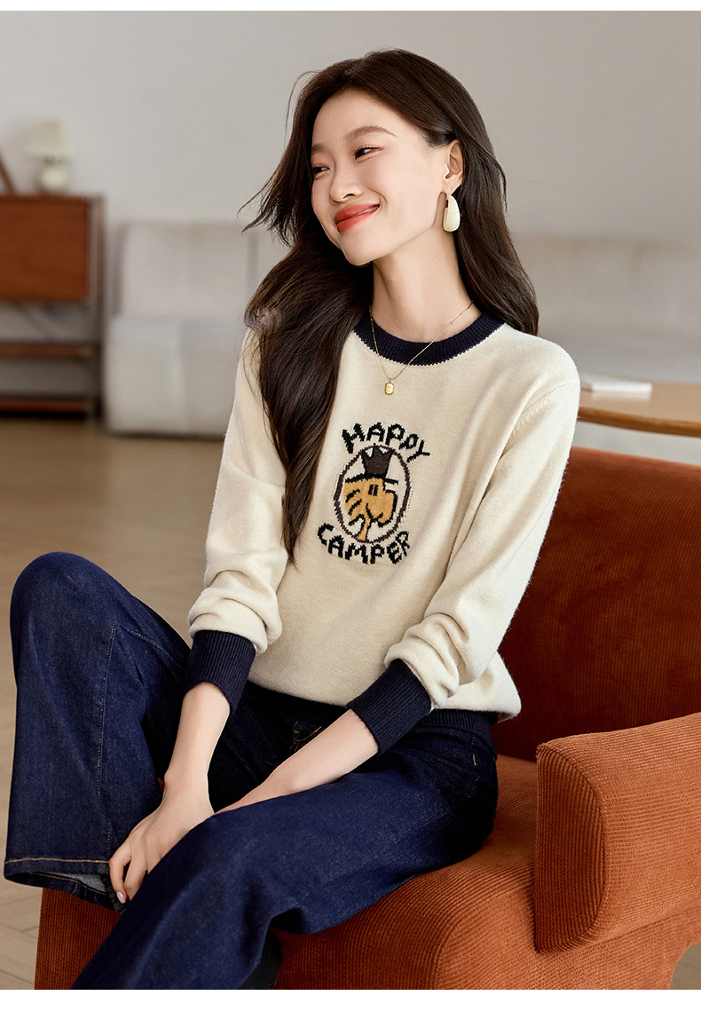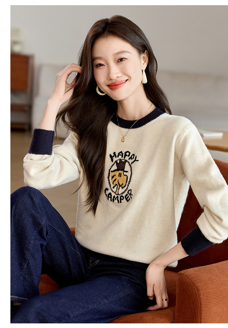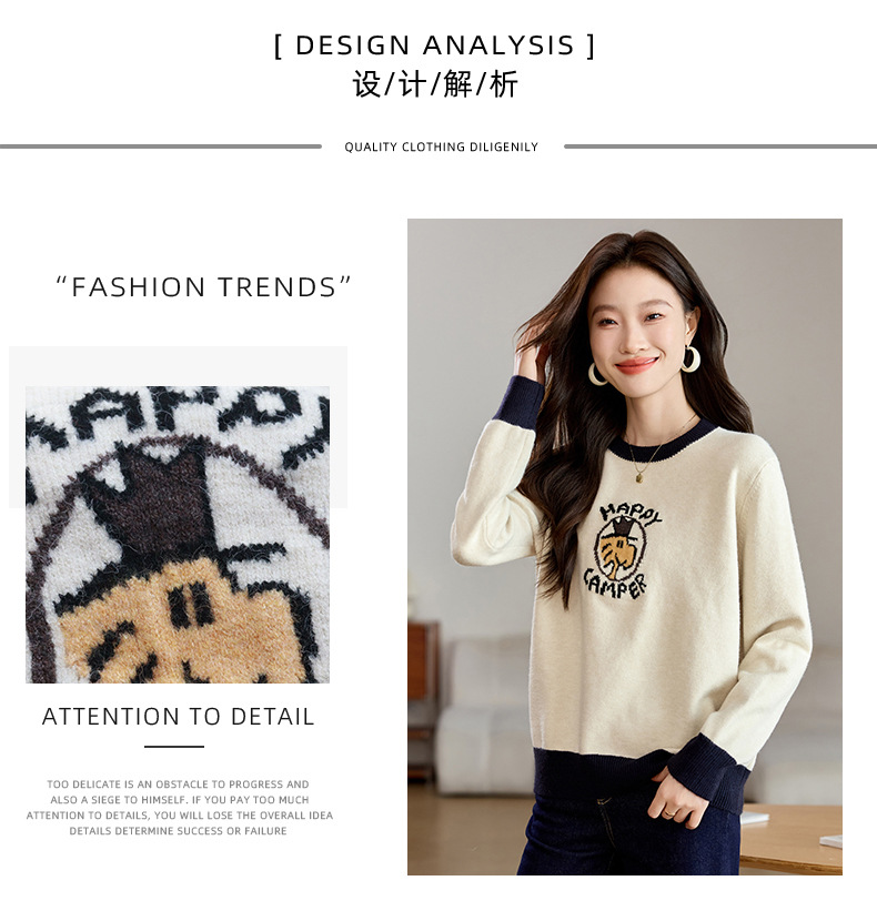 圆领卡通毛衣慵懒风,宽松加厚针织衫CC-QL-W8520