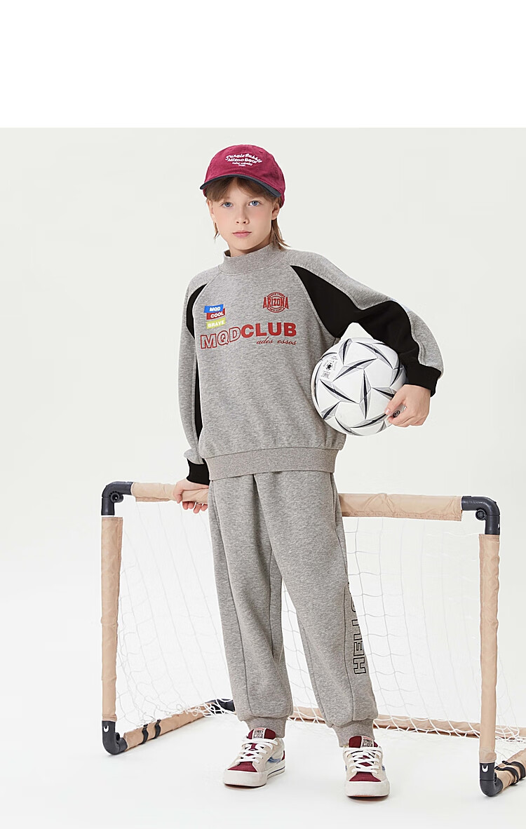 【MQD】【上衣裤】童装男大童冬潮酷休闲运动加绒卫衣套装