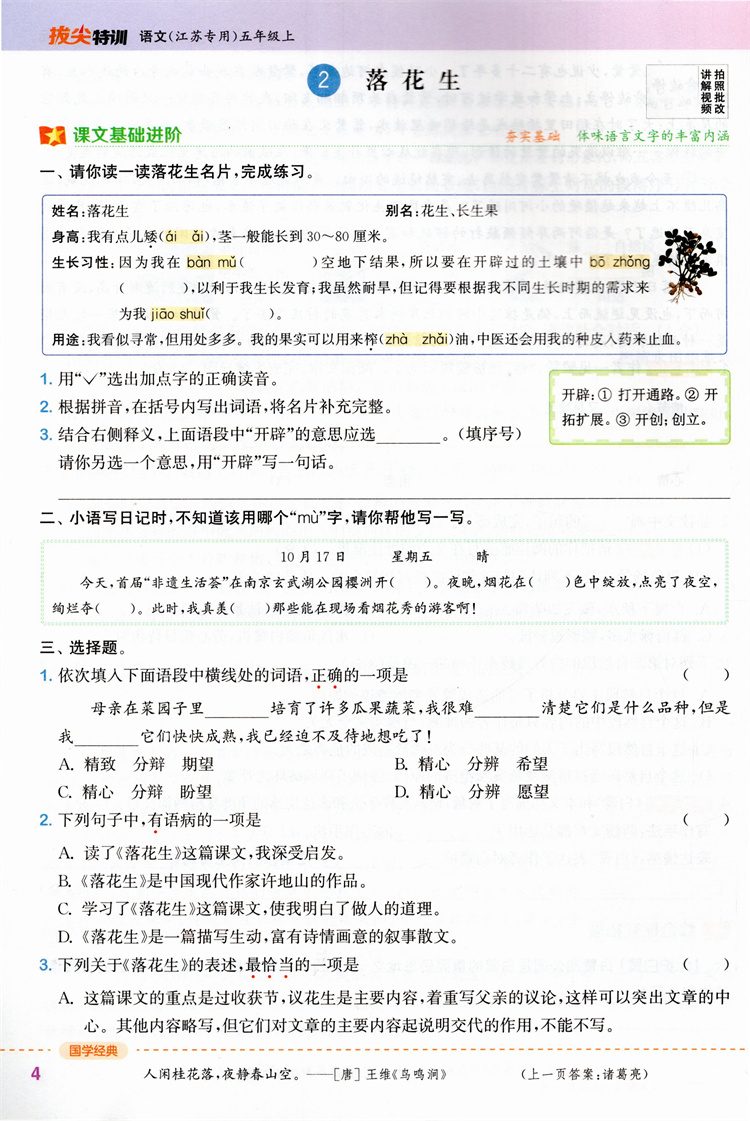 2025秋 拔尖特训 语文 人教版 部编版 五年级上 5上 同步提优训练专项练习一课一练 同步教辅 必刷题 通成学典天天练教辅