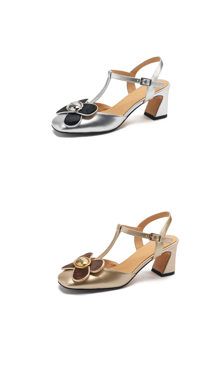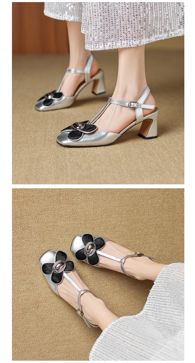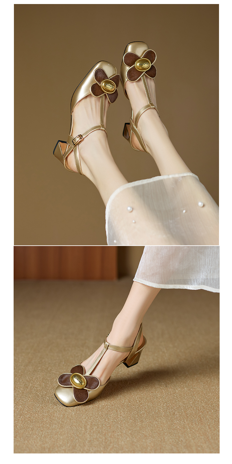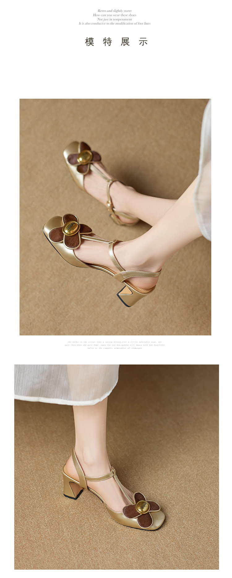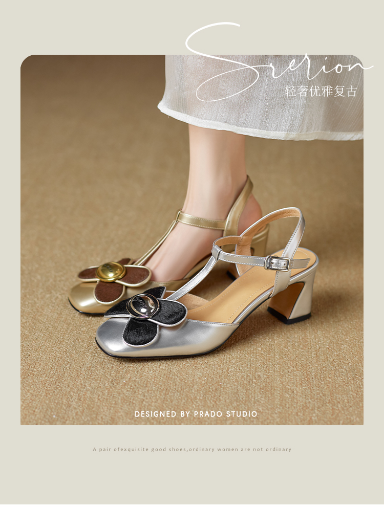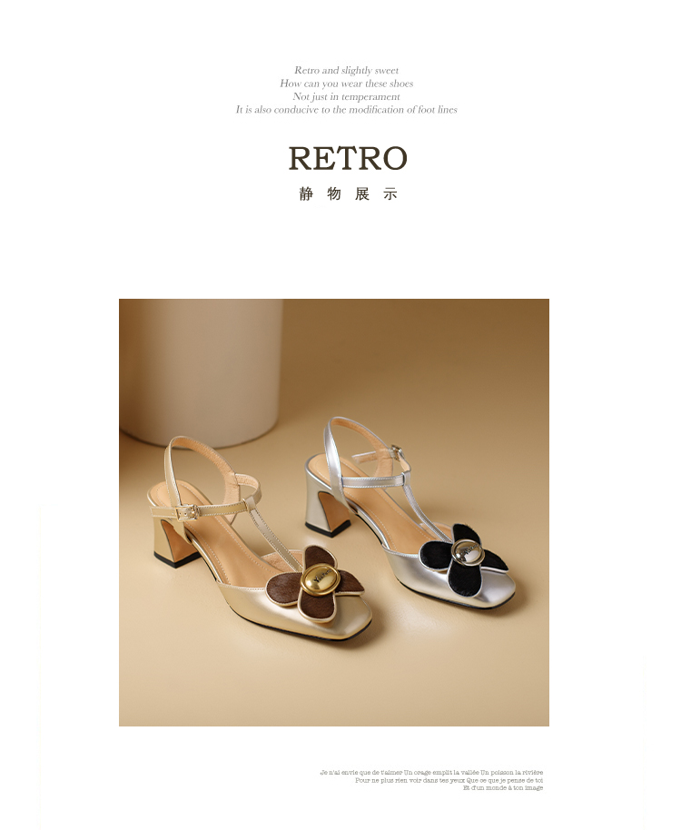 【预售5天】时尚百搭浅口,法式花朵中跟方头玛丽珍凉鞋FH&L12
