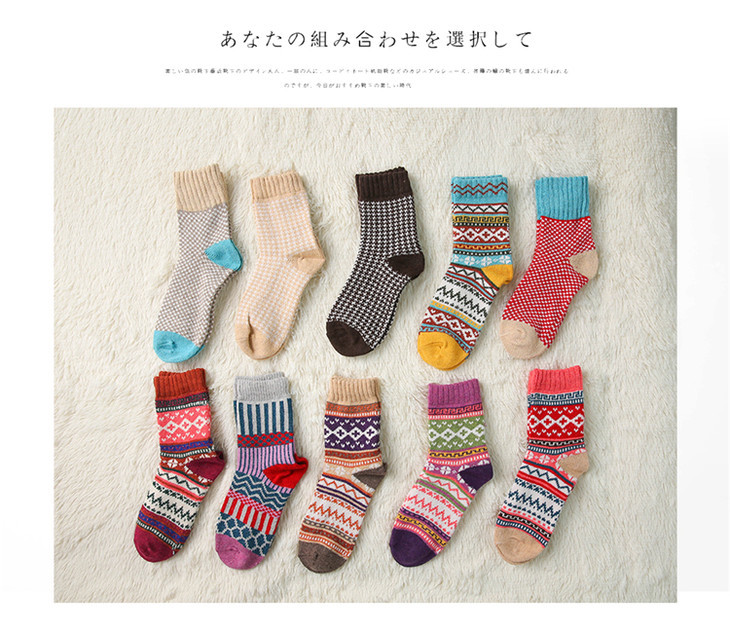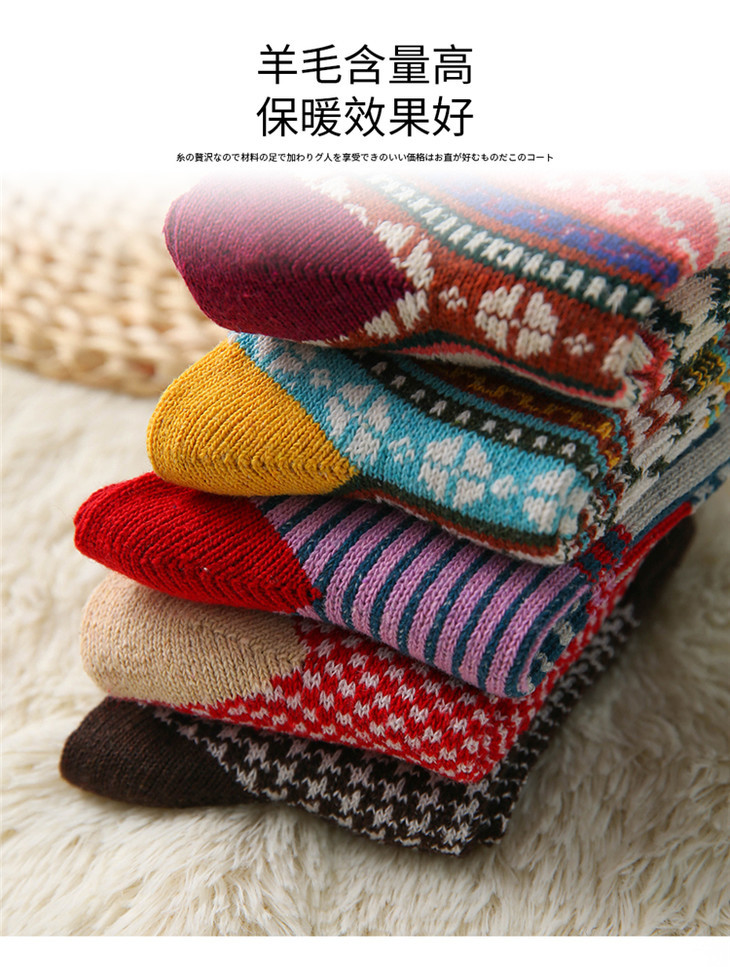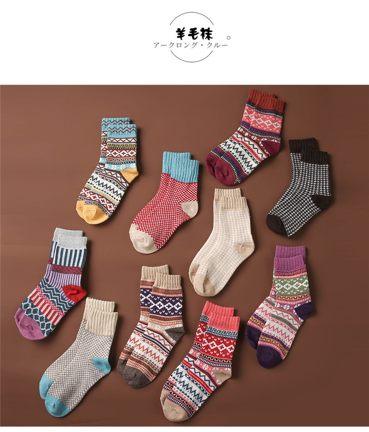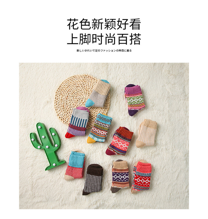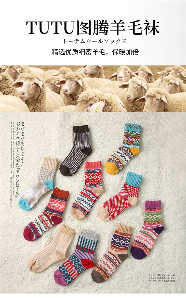 【十双装寒冬不冻脚】火到爆仓!民族复古风加厚保暖情侣中筒图腾羊毛袜