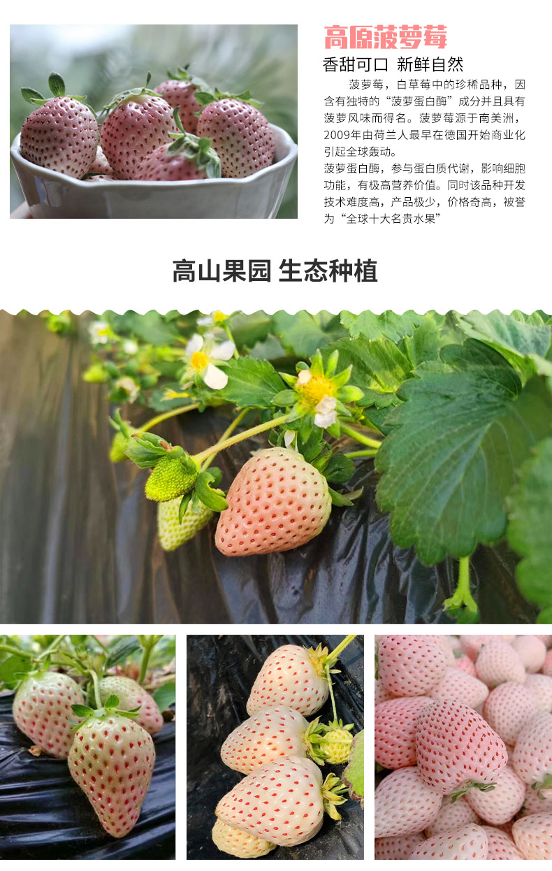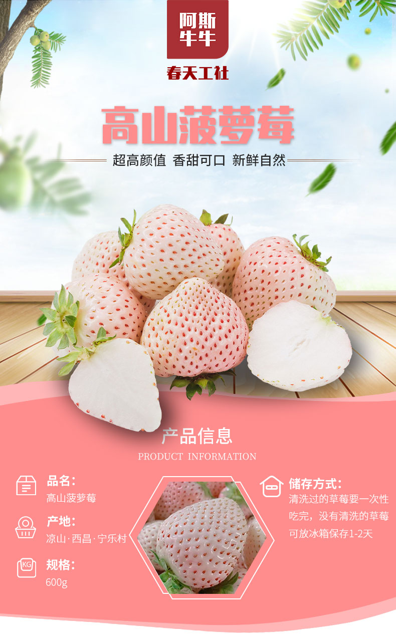 【品质精选】高原菠萝莓白草莓600g(±30g)礼盒装顺丰空运