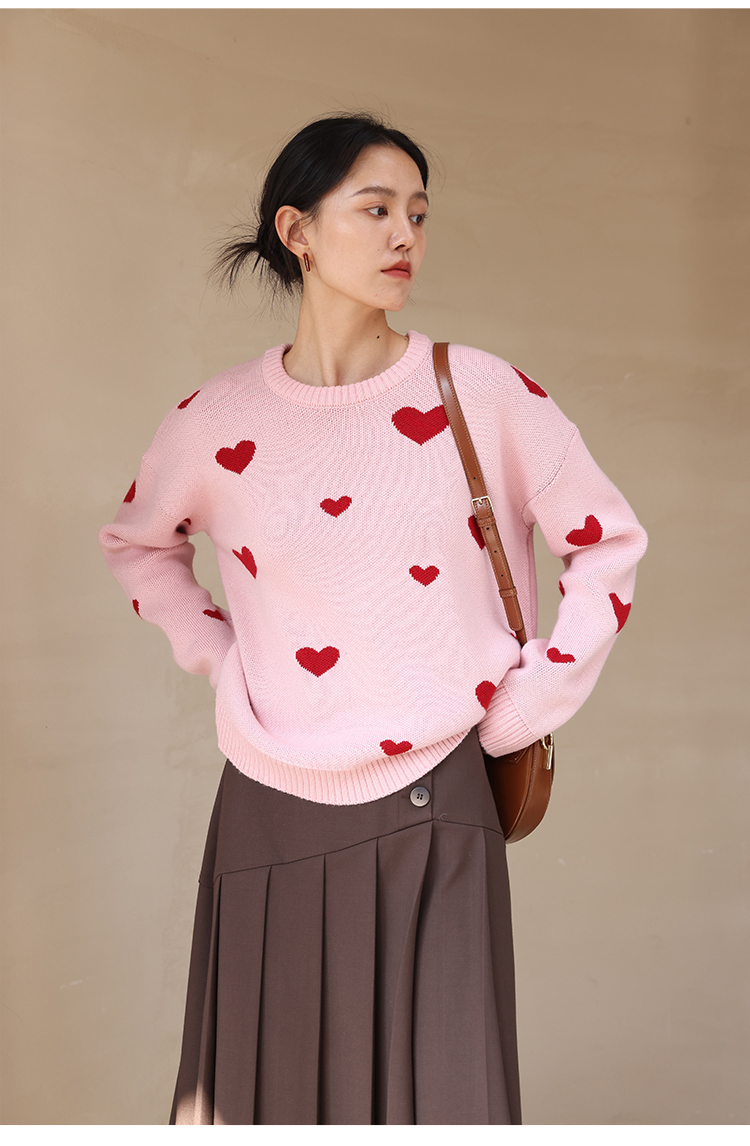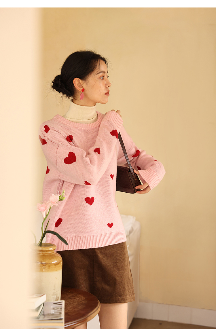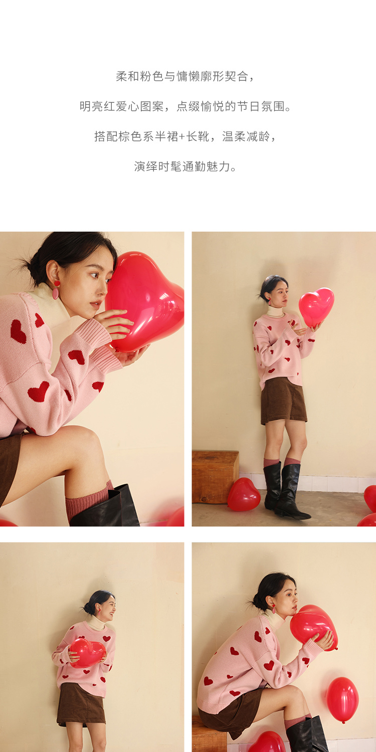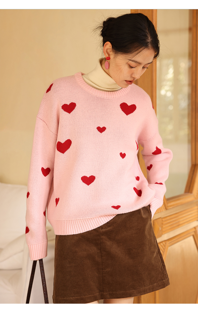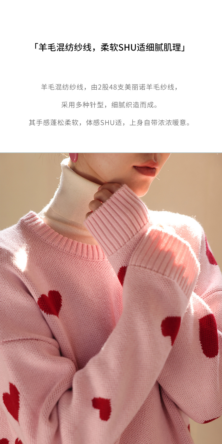 HeyDress原创爱心毛衣女冬季法式宽松慵懒感羊毛针织衫圆领上衣