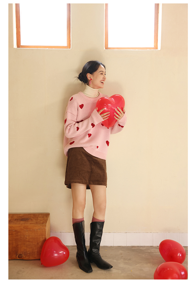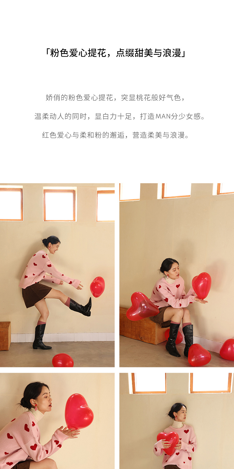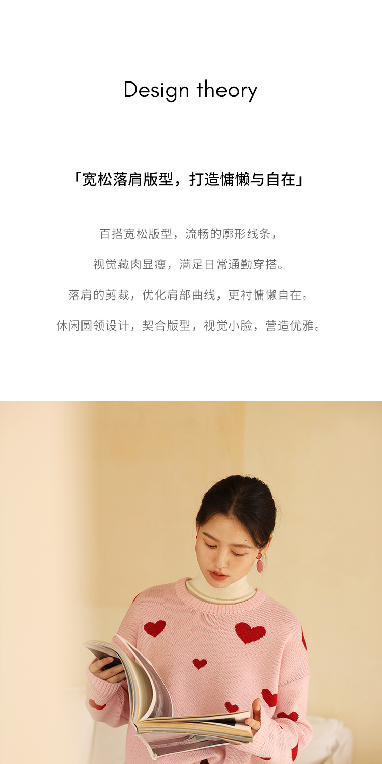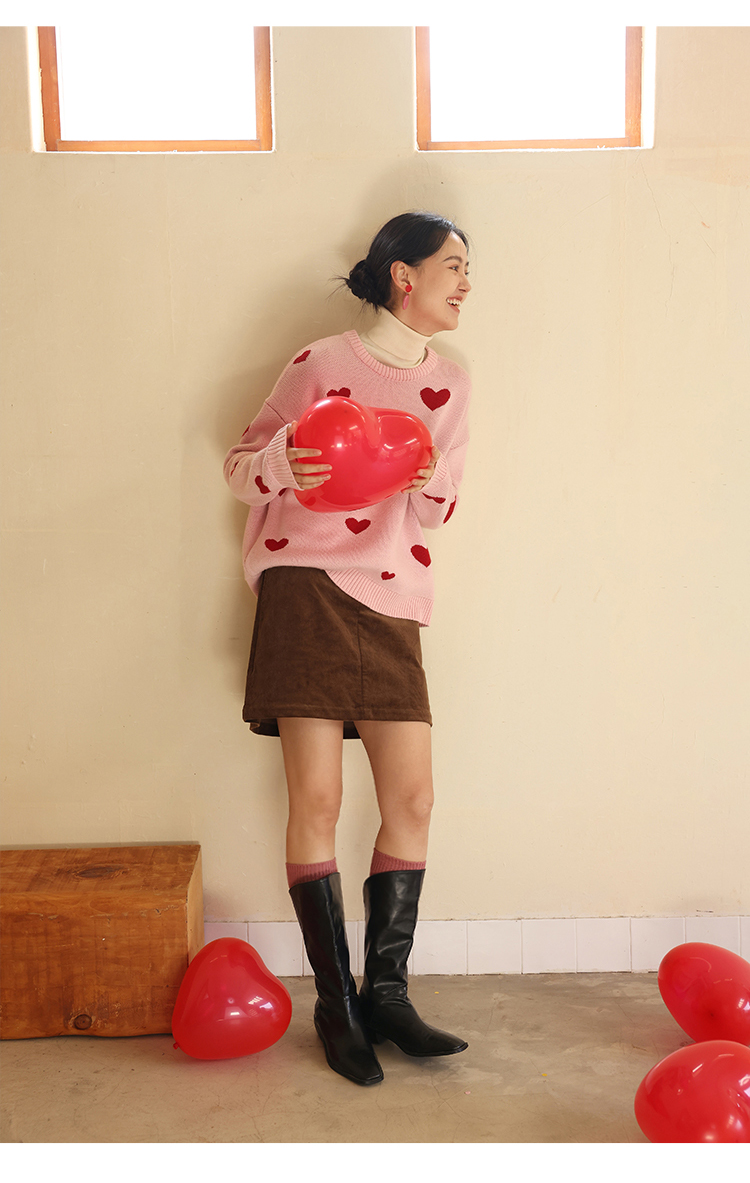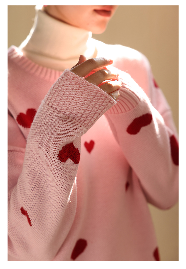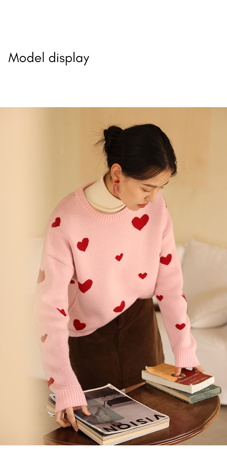 HeyDress原创爱心毛衣女冬季法式宽松慵懒感羊毛针织衫圆领上衣