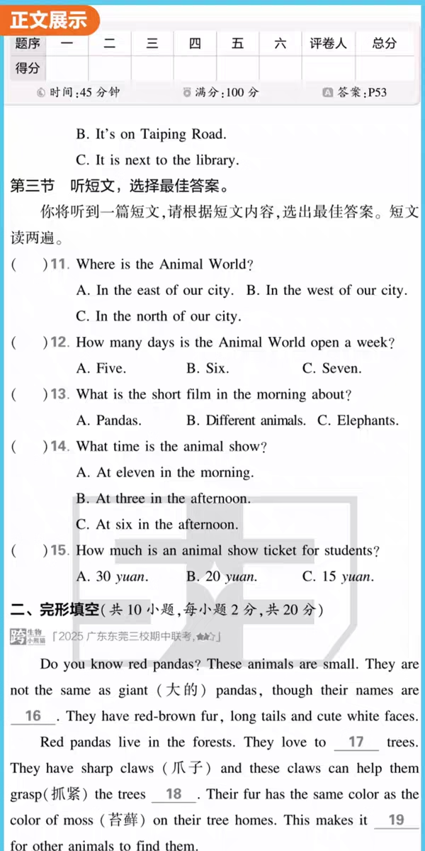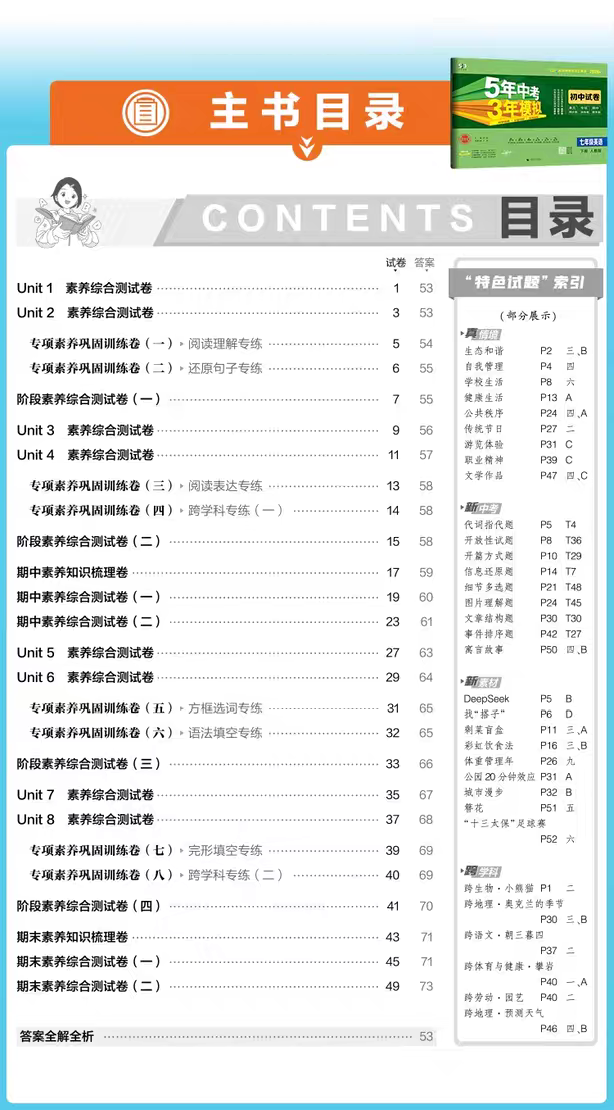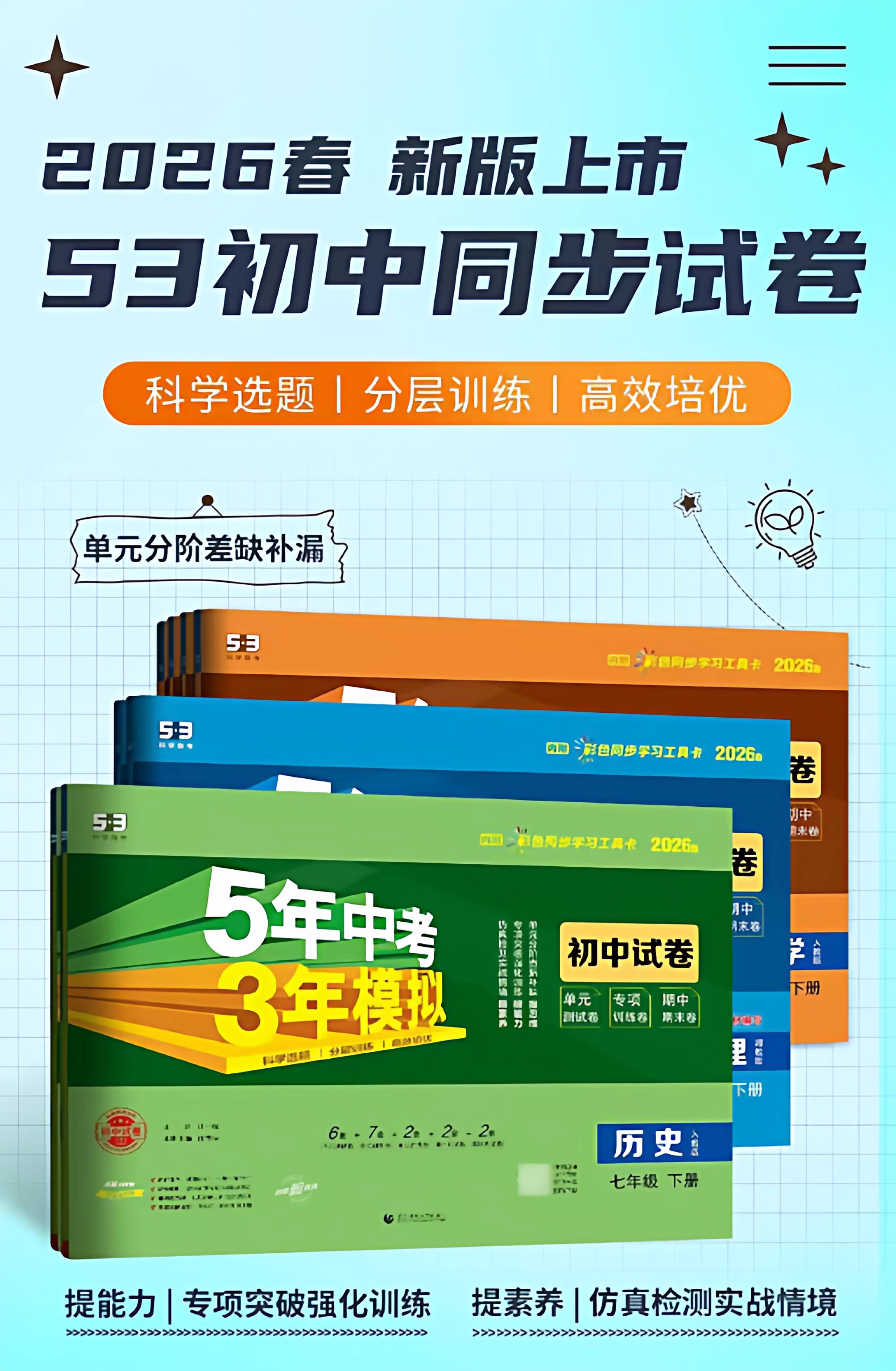 26版 五年中考三年模拟卷 7-9年级 语数英科社 六折优惠