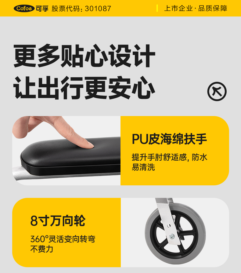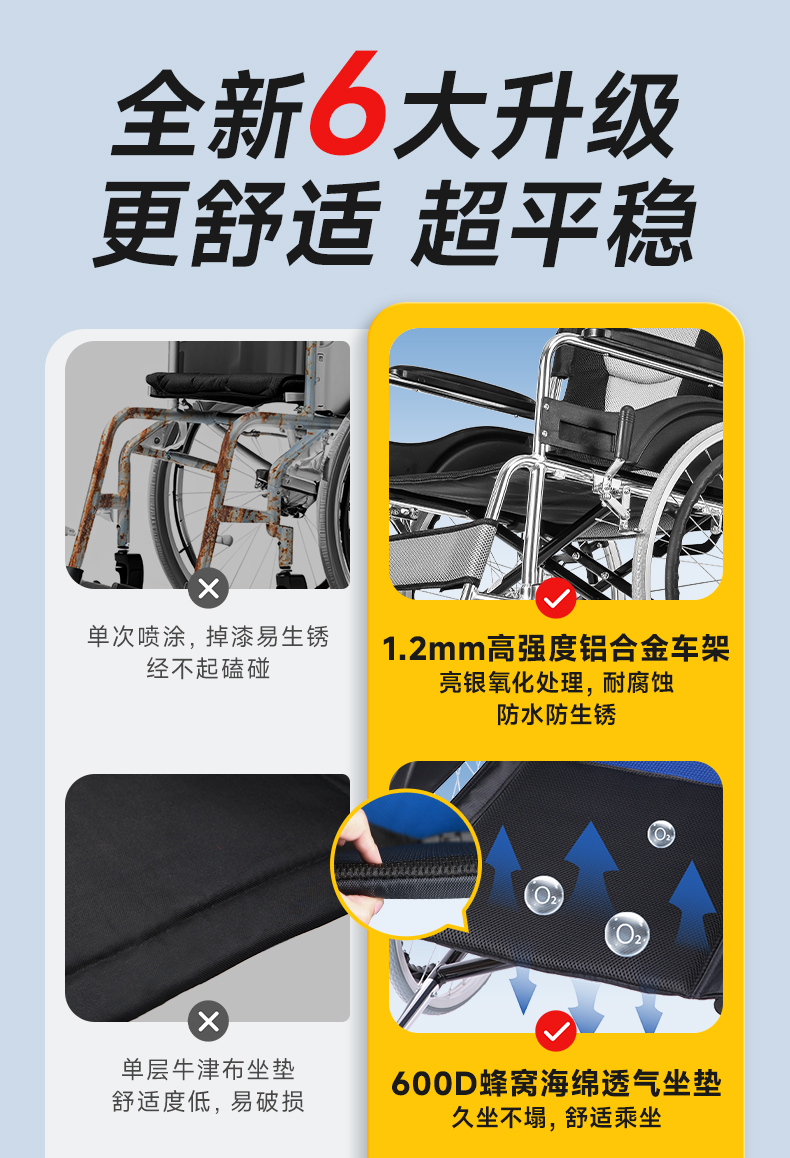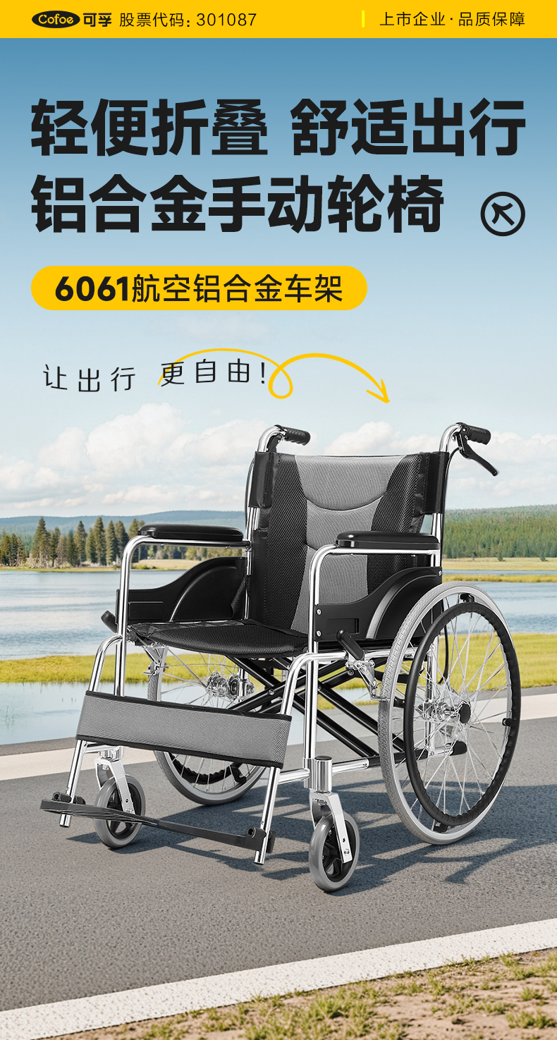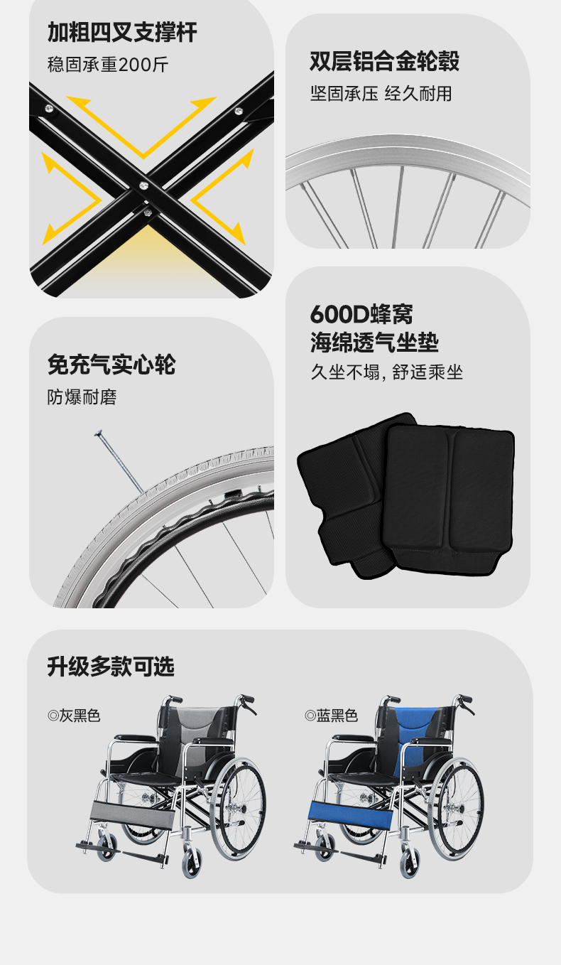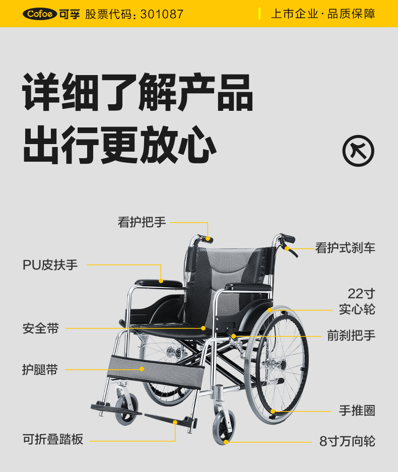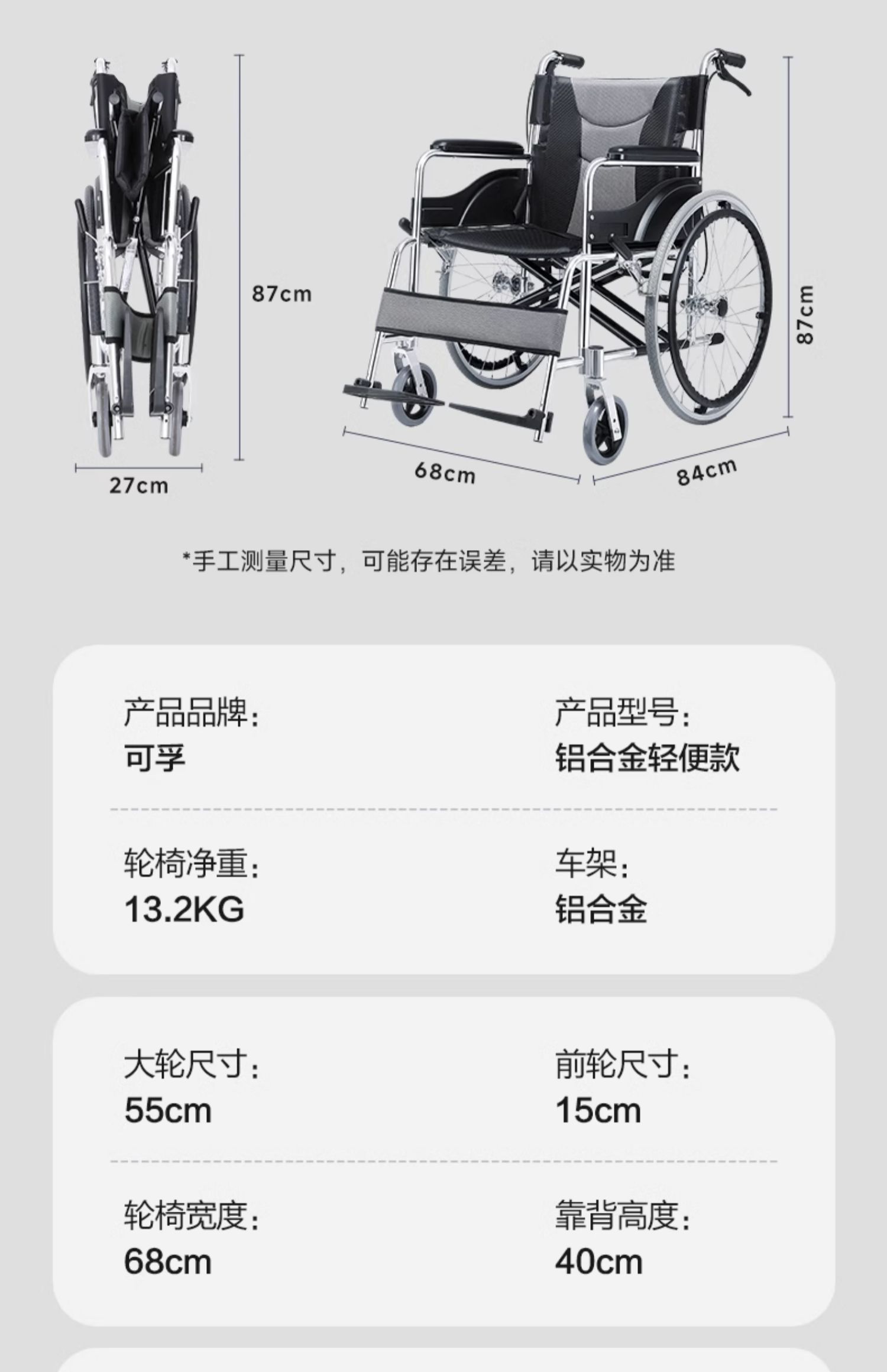 可孚轮椅折叠轻便老人老年专用手推车瘫痪残疾骨折代步带坐便小型